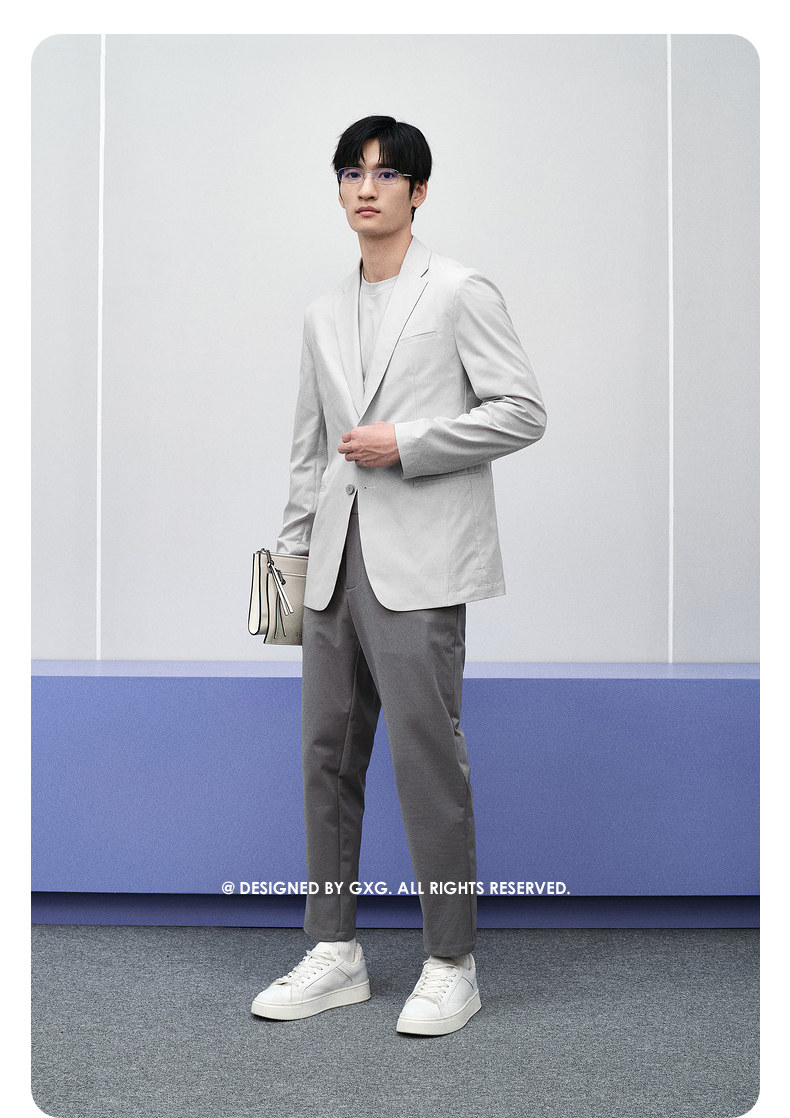 GXG男装 零压系列浅灰平驳领西装 24春季热卖西服 GFX10101471