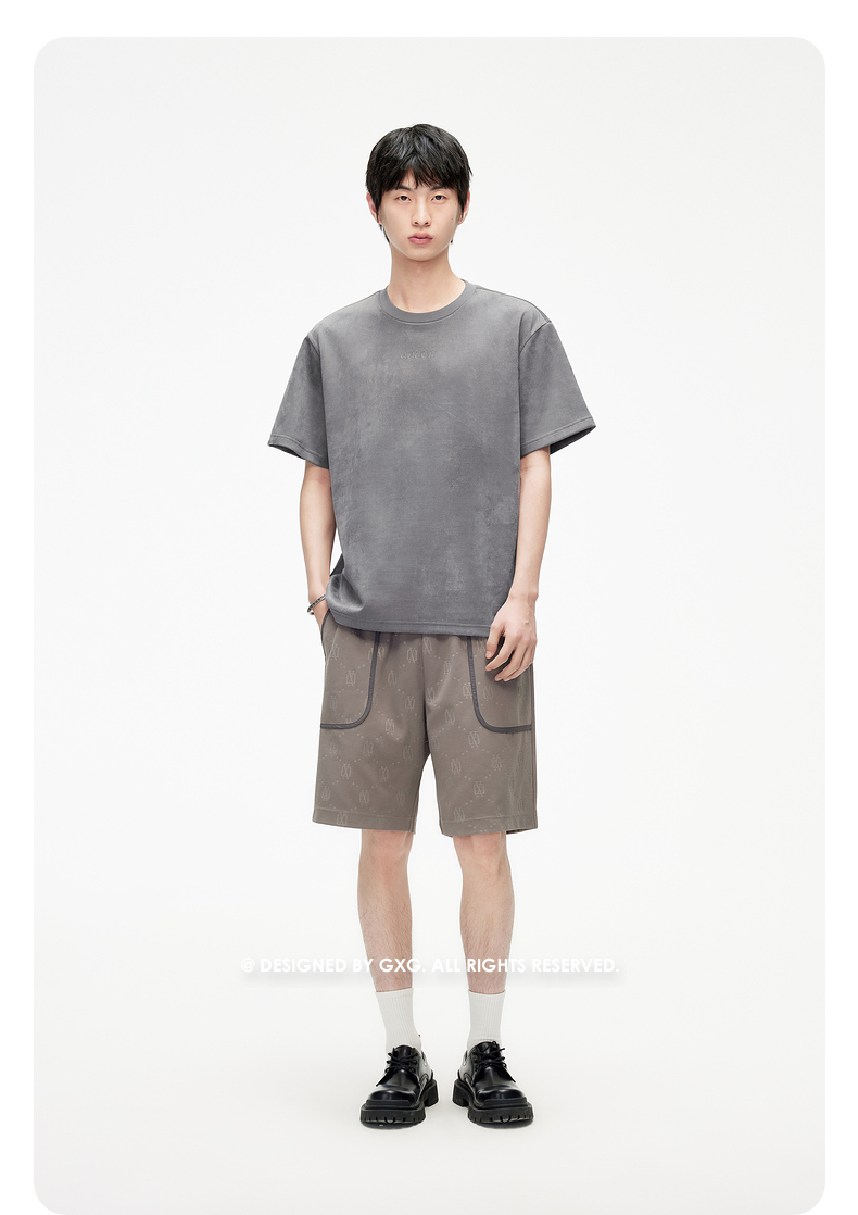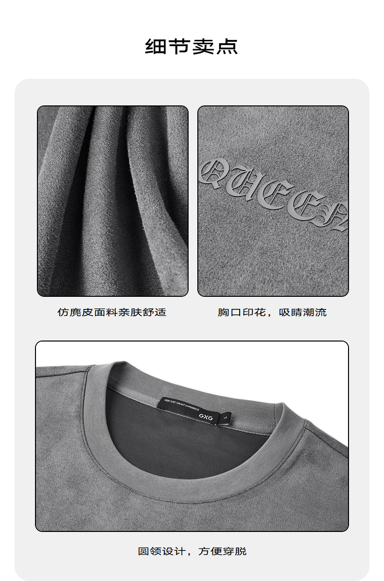 GXG男装 麂皮短袖男夏季热卖字母T恤#G24D442500