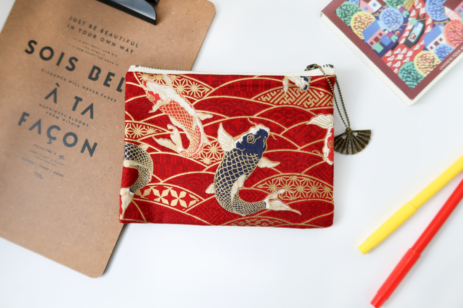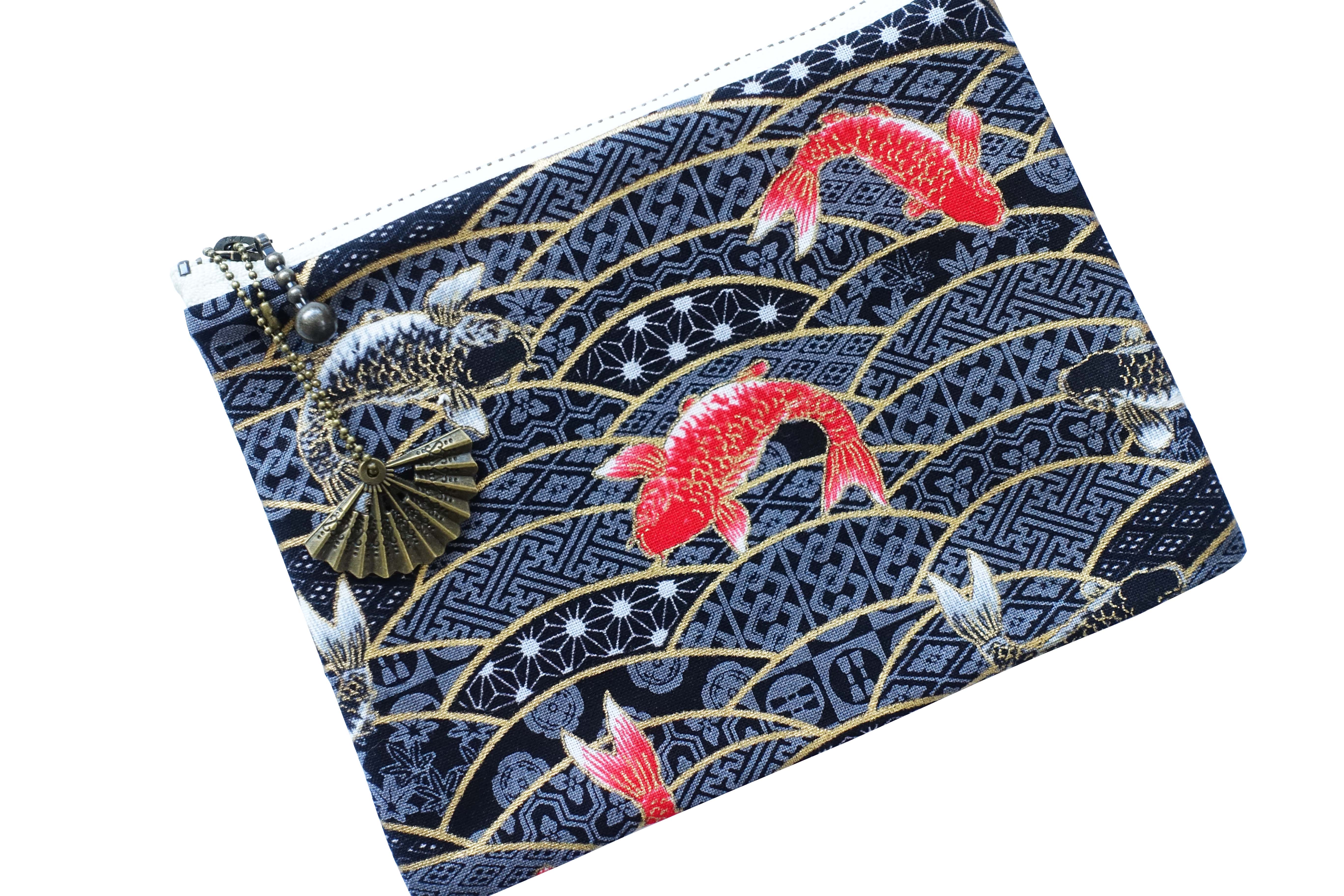 HUJI祤集Komon收纳包风の花经典烫金鲤鱼