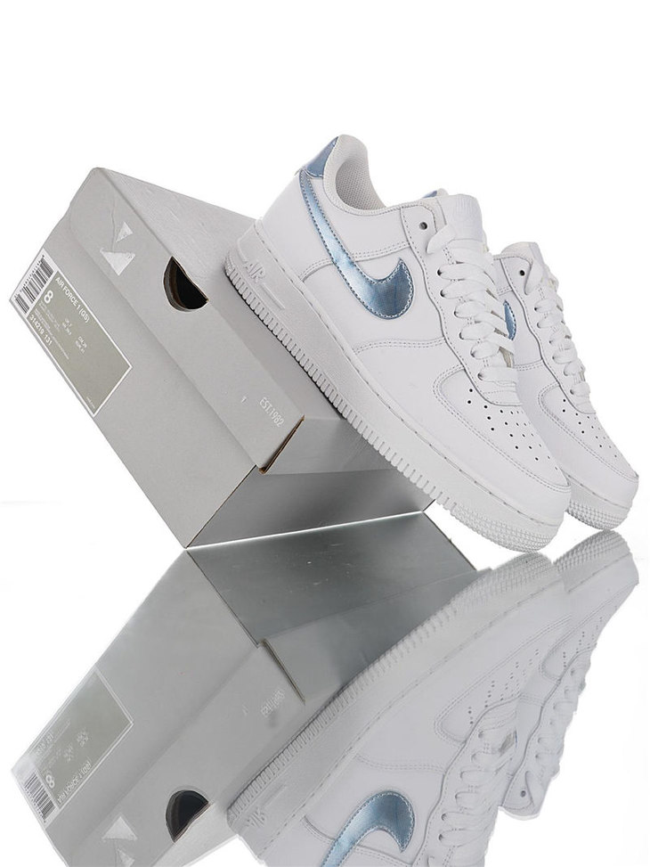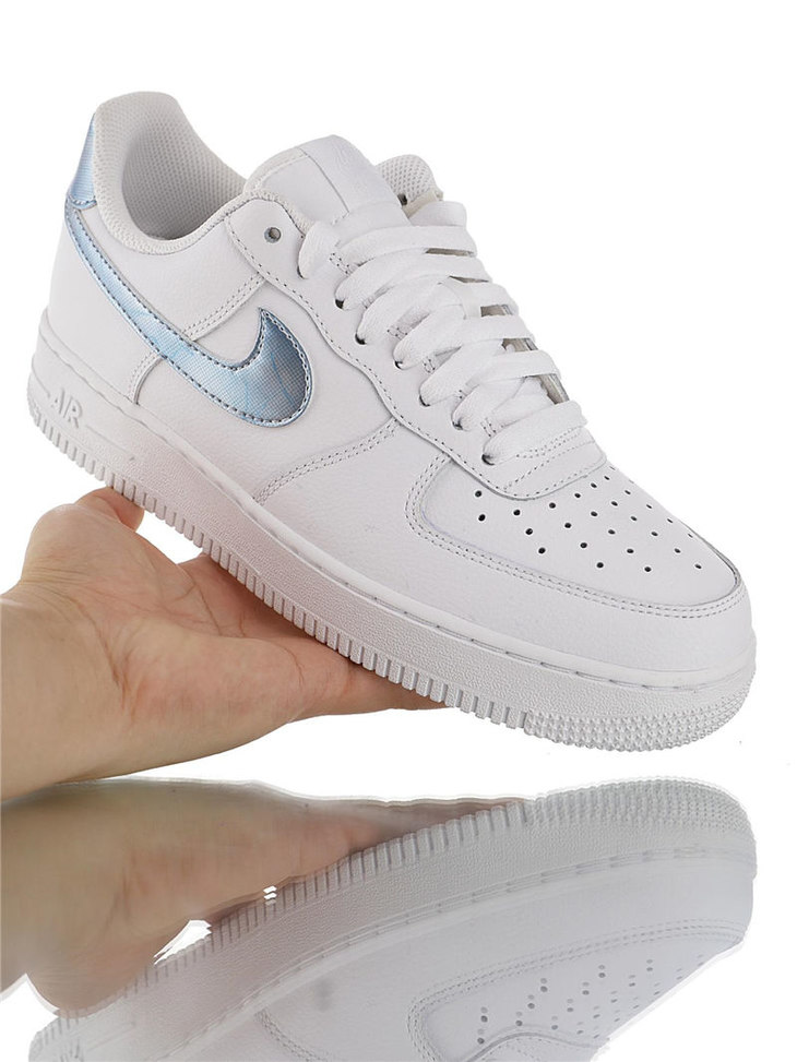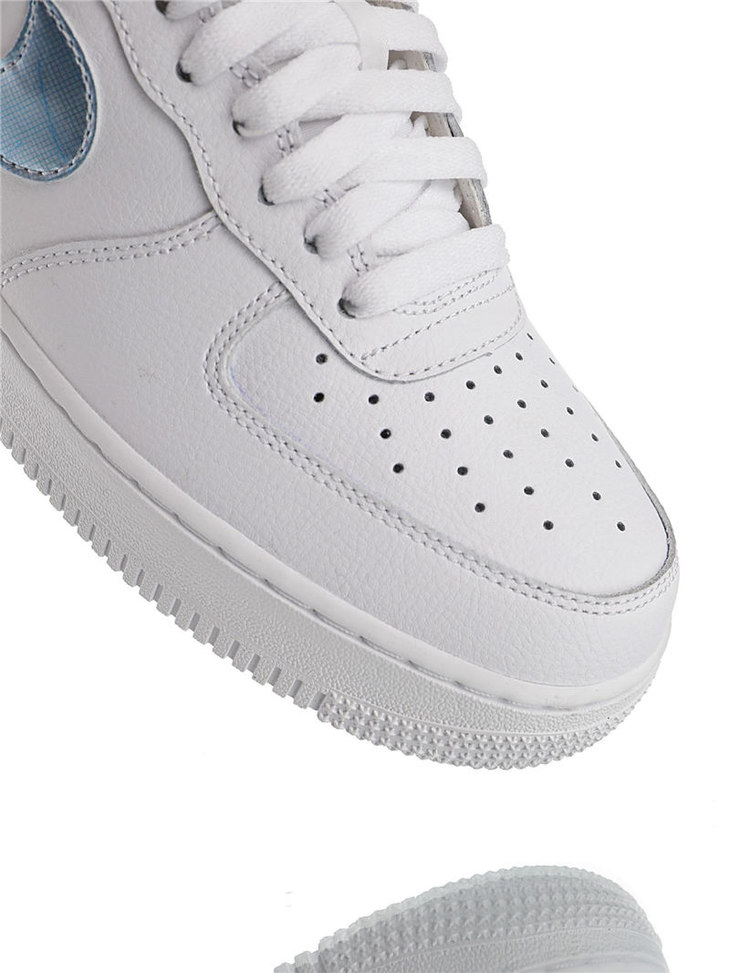 耐克Nike Air Force 1 Low '07 正确无色差皮革材质钩子 采用硬质头层牛皮革 内置全掌air sole气垫 空军一号经典低帮休闲运动板鞋 白皮雾霾蓝钩