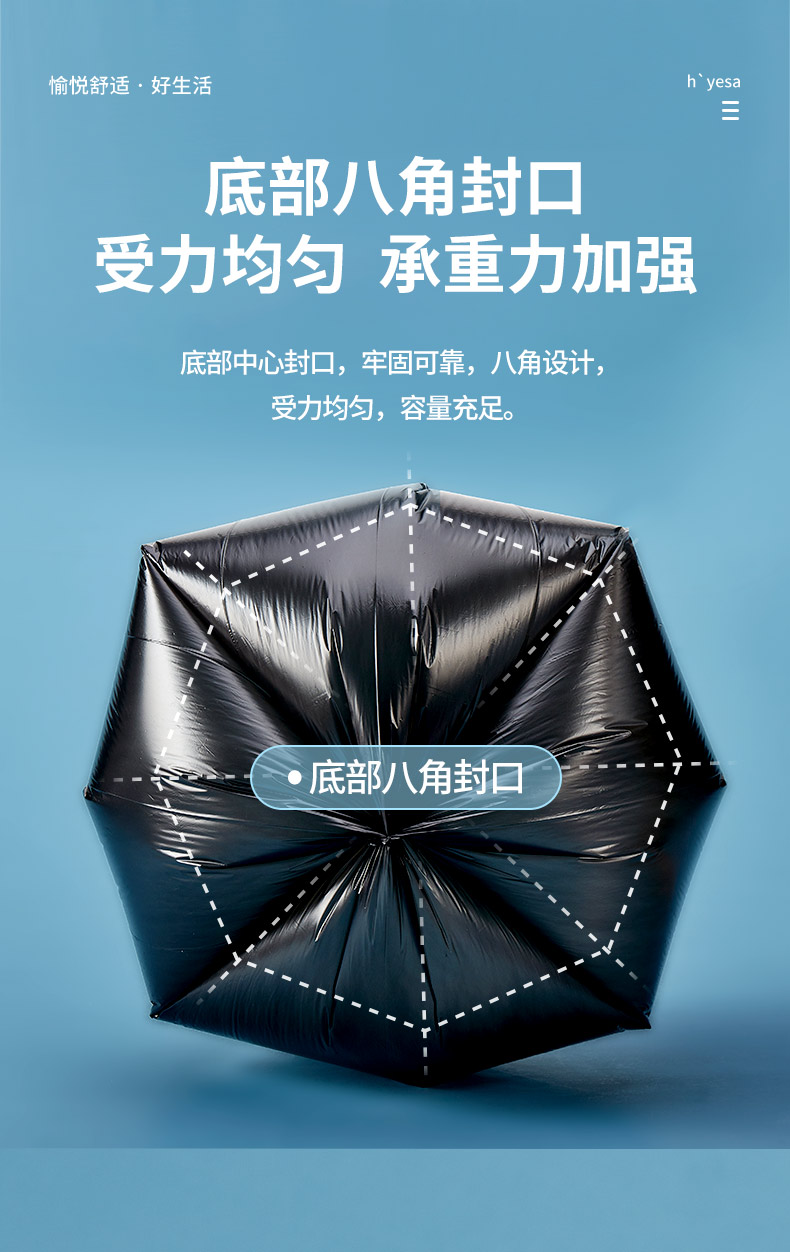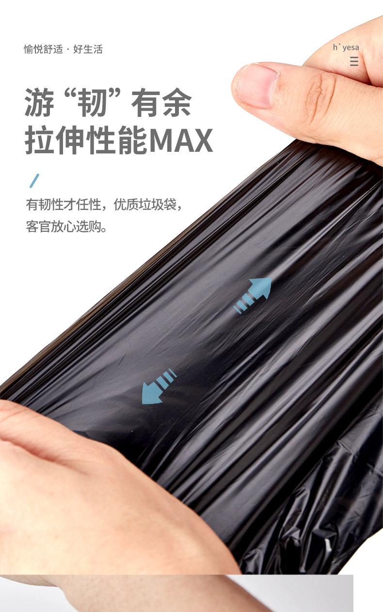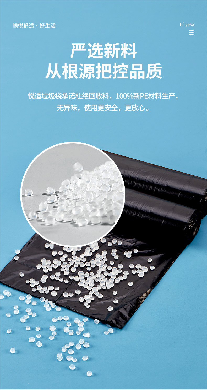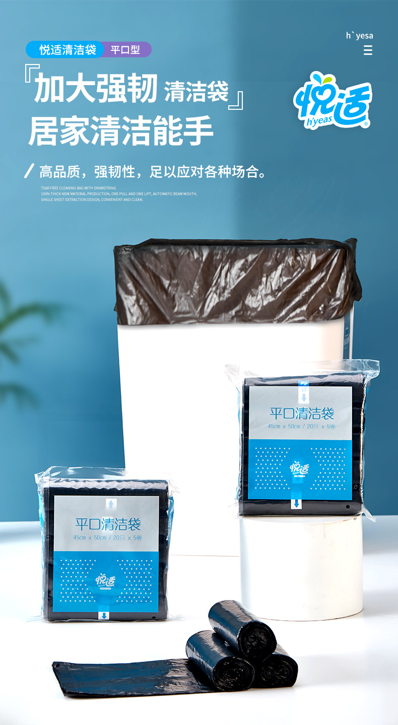悦适家用垃圾袋黑色平口加厚厨房卫生间清洁袋一次性无味PE塑料袋 5卷 32袋