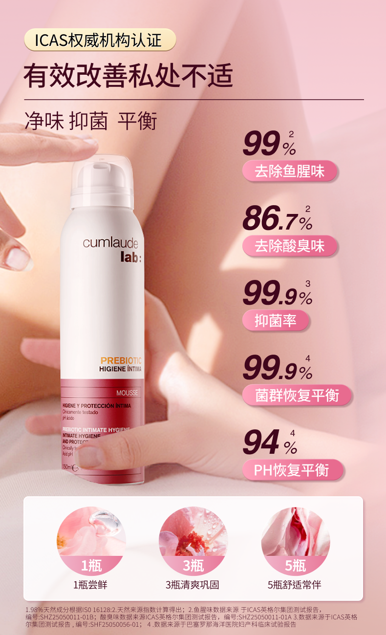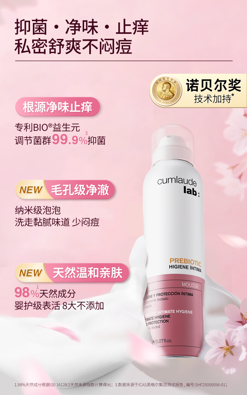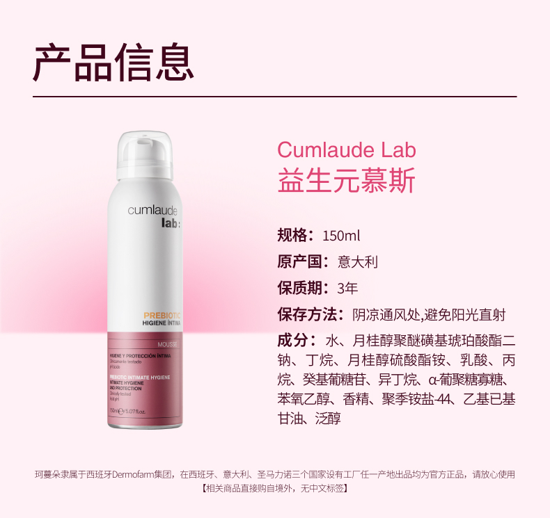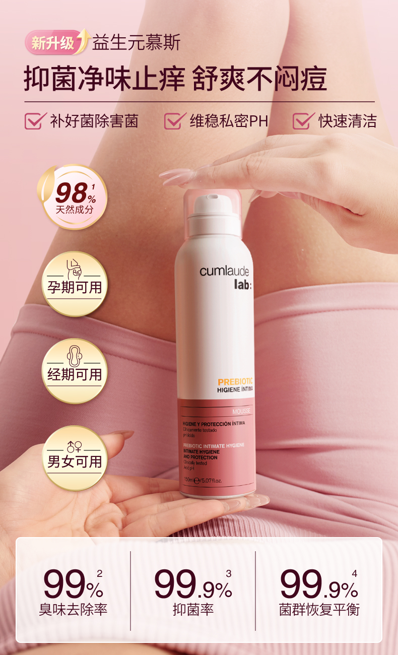 保税直发 cumlaude 珂蔓朵 益生元女性护理慕斯 150mLx1/x2/x3