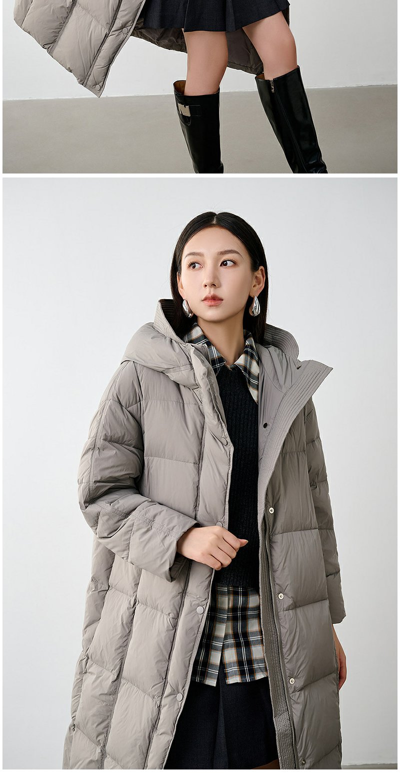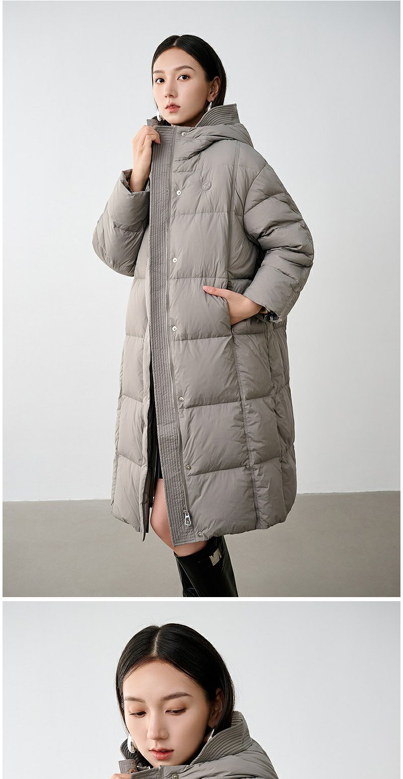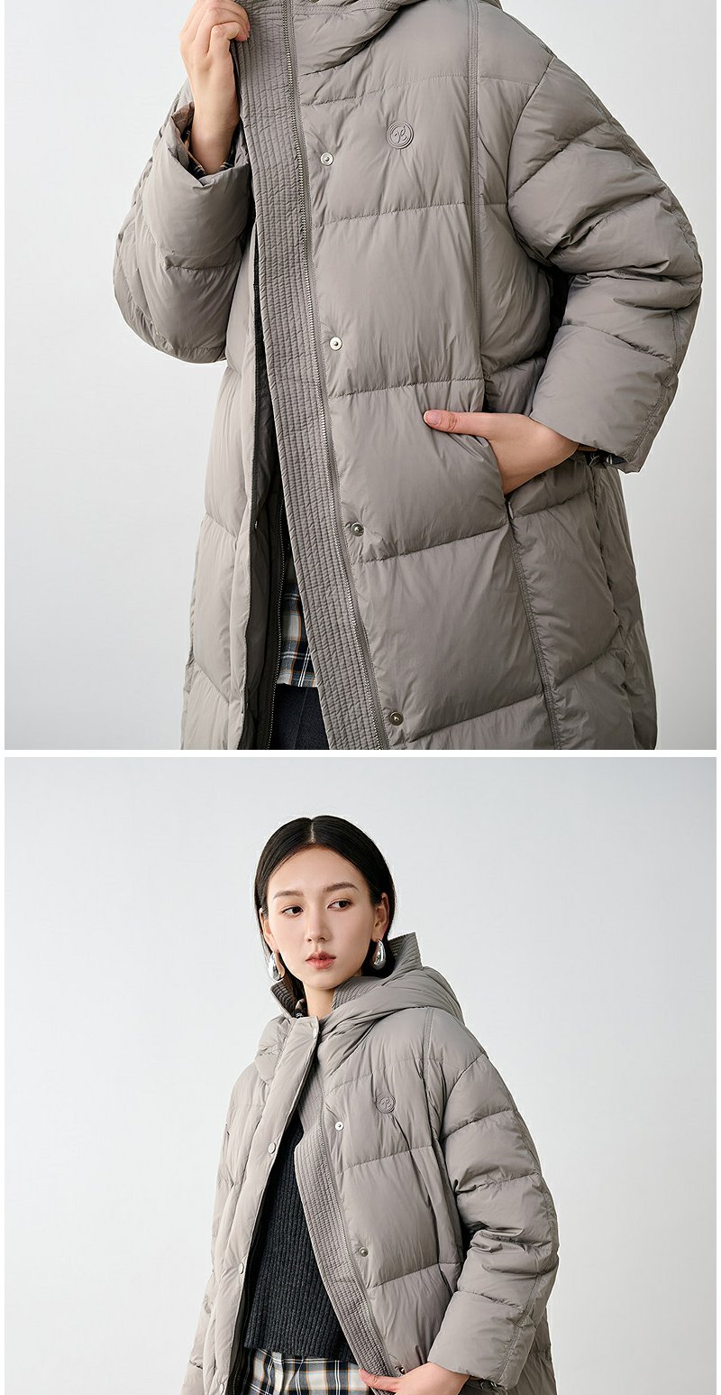 NEELLY纳俪商场同款冬新款时尚通勤过膝长款羽绒服女连帽保暖外套N25104L04587