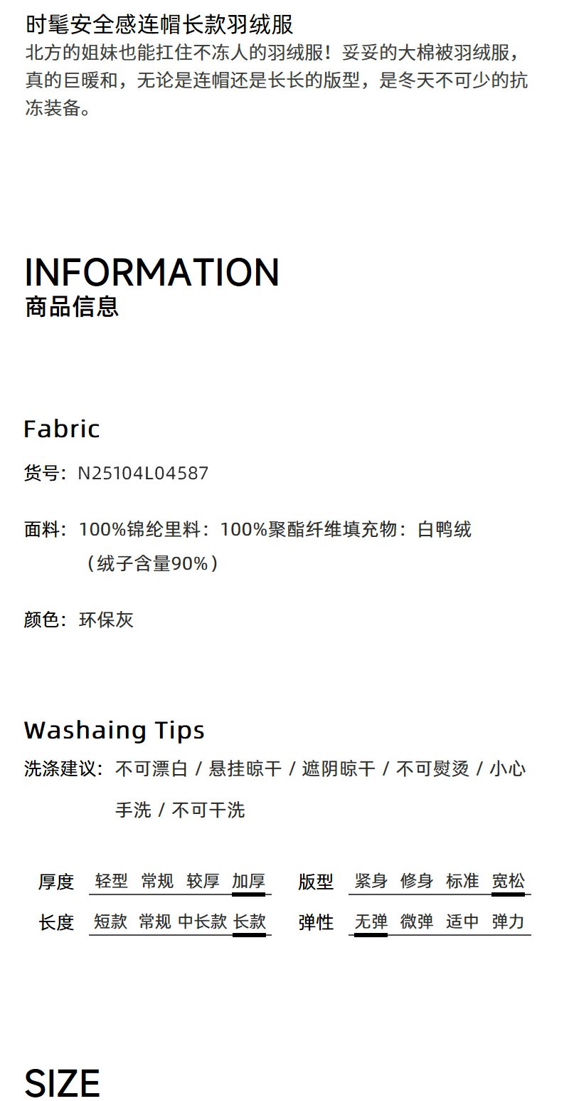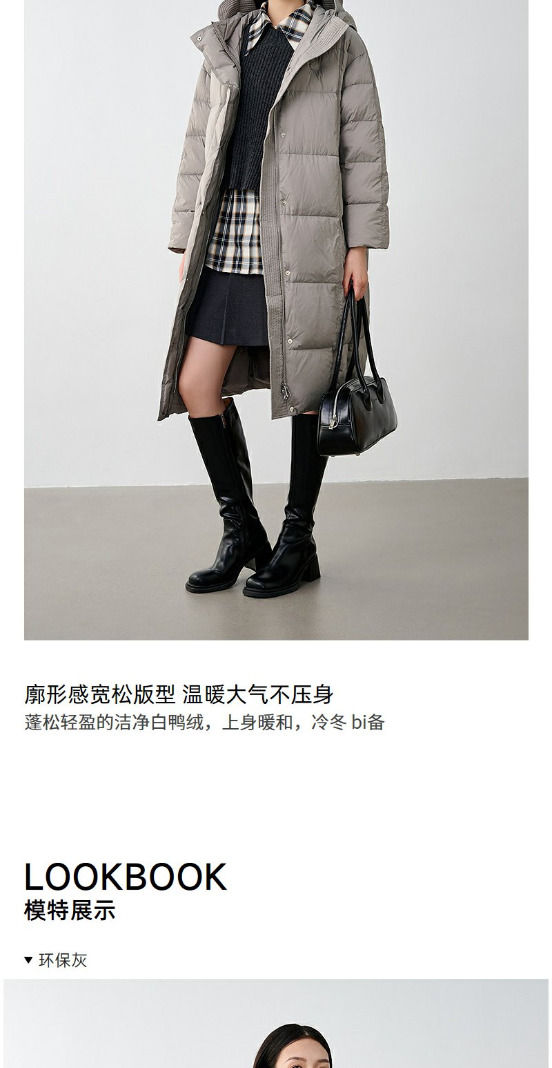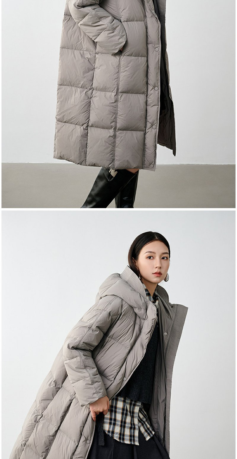 NEELLY纳俪商场同款冬新款时尚通勤过膝长款羽绒服女连帽保暖外套N25104L04587