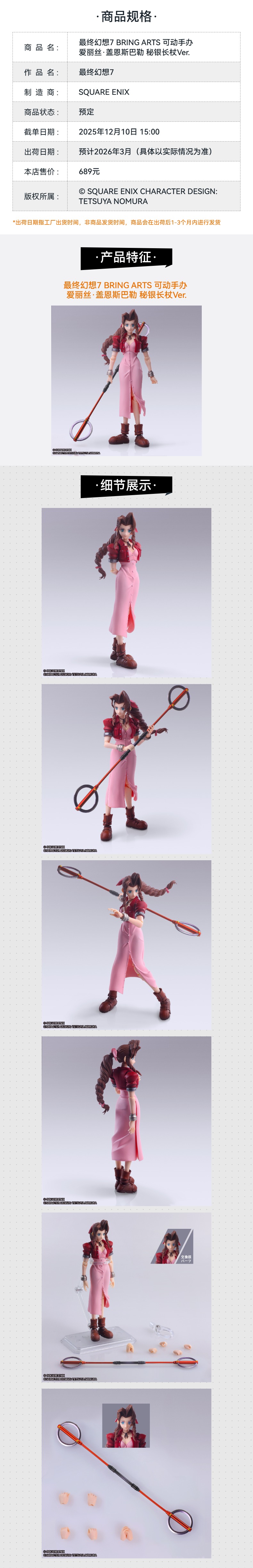 【GSC预售定金】最终幻想7 BRING ARTS 可动手办 爱丽丝·盖恩斯巴勒 秘银长杖Ver.