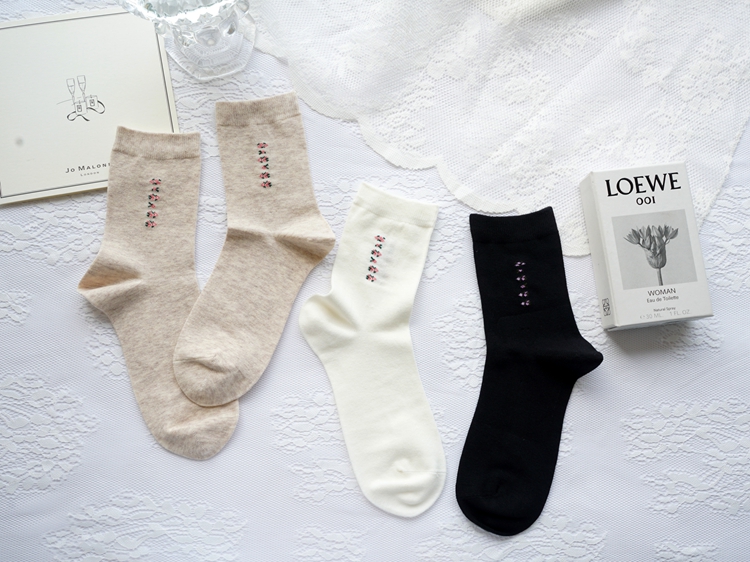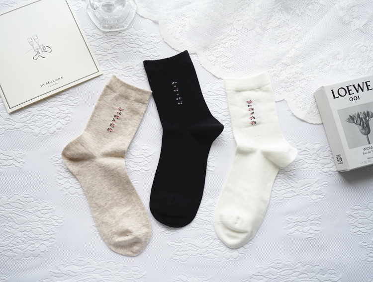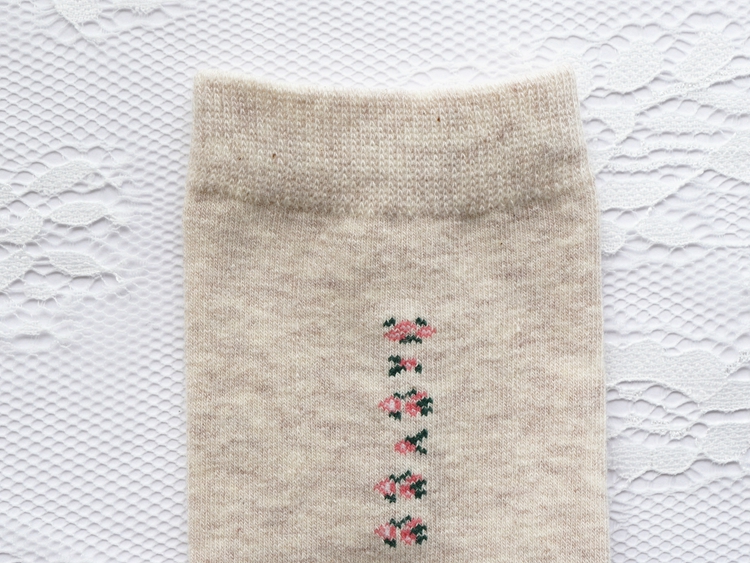 提花女袜精梳棉中筒短袜子抗菌透气舒适33784