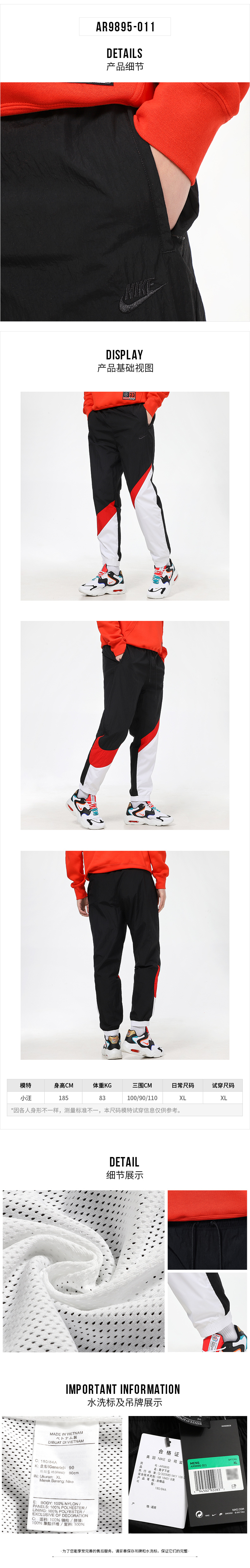 NIKE男装 2022春季新款运动休闲训练健身裤子耐磨透气收脚长裤 AR9895