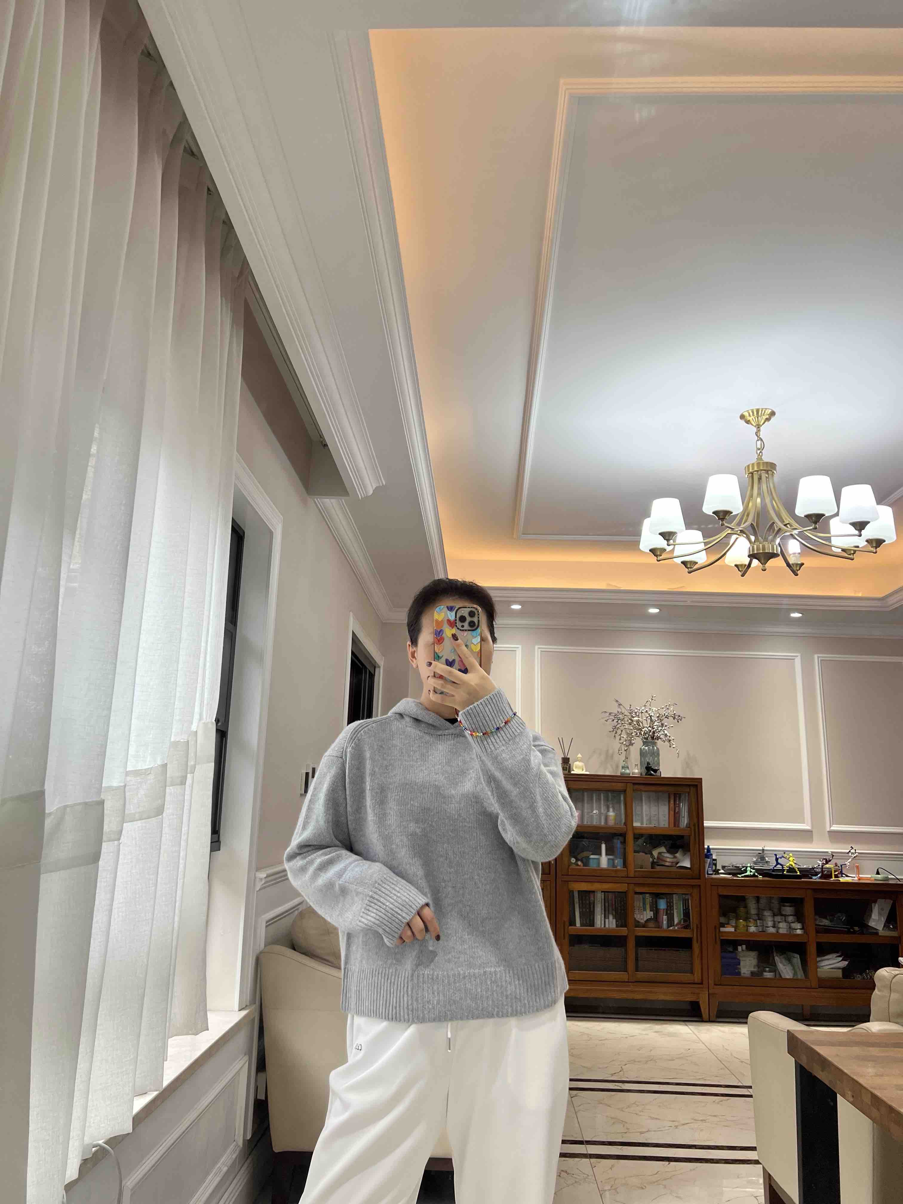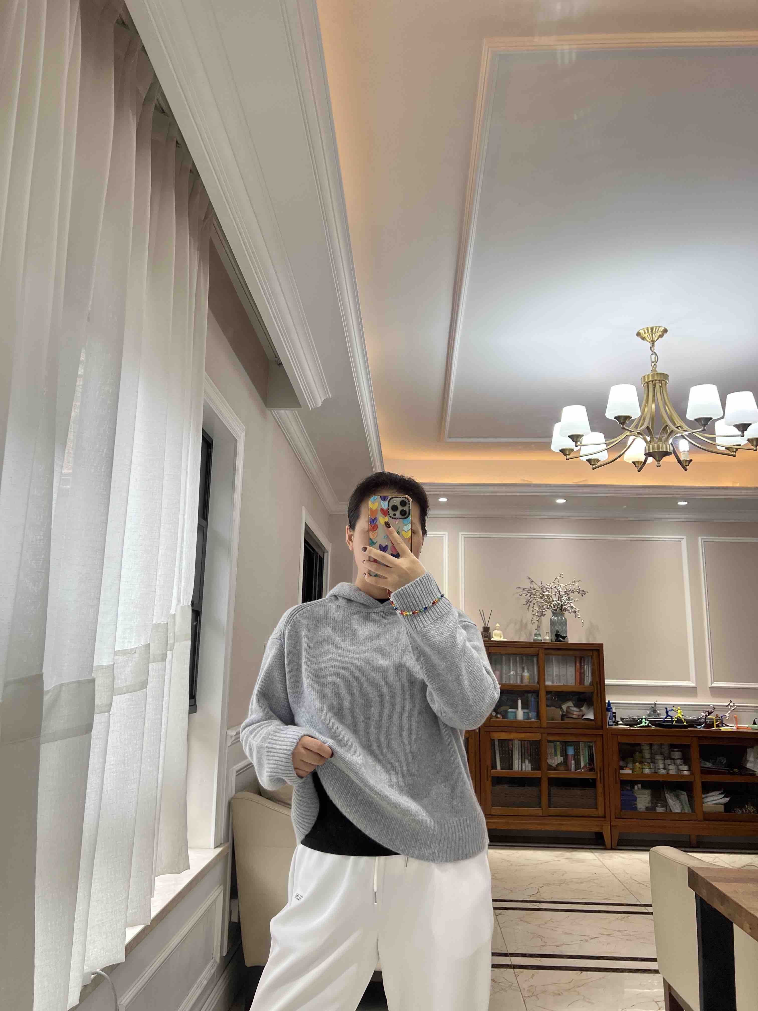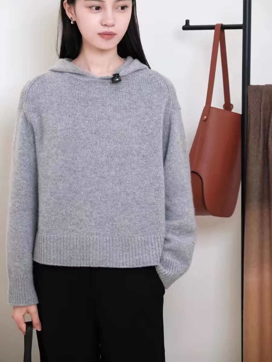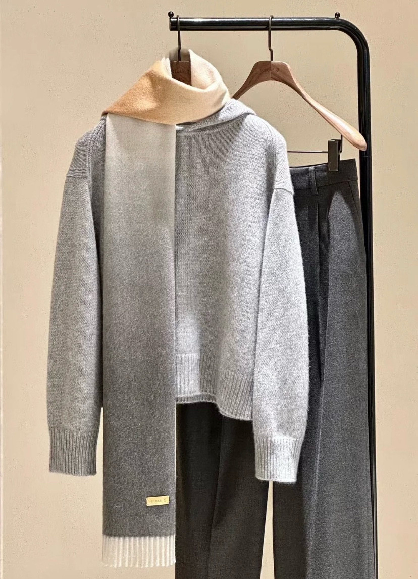 羊绒帽衫,知性灰色,中性知性,柔和温和,再配上牛仔裤,舒适休闲的代名词,休闲、利落大方~