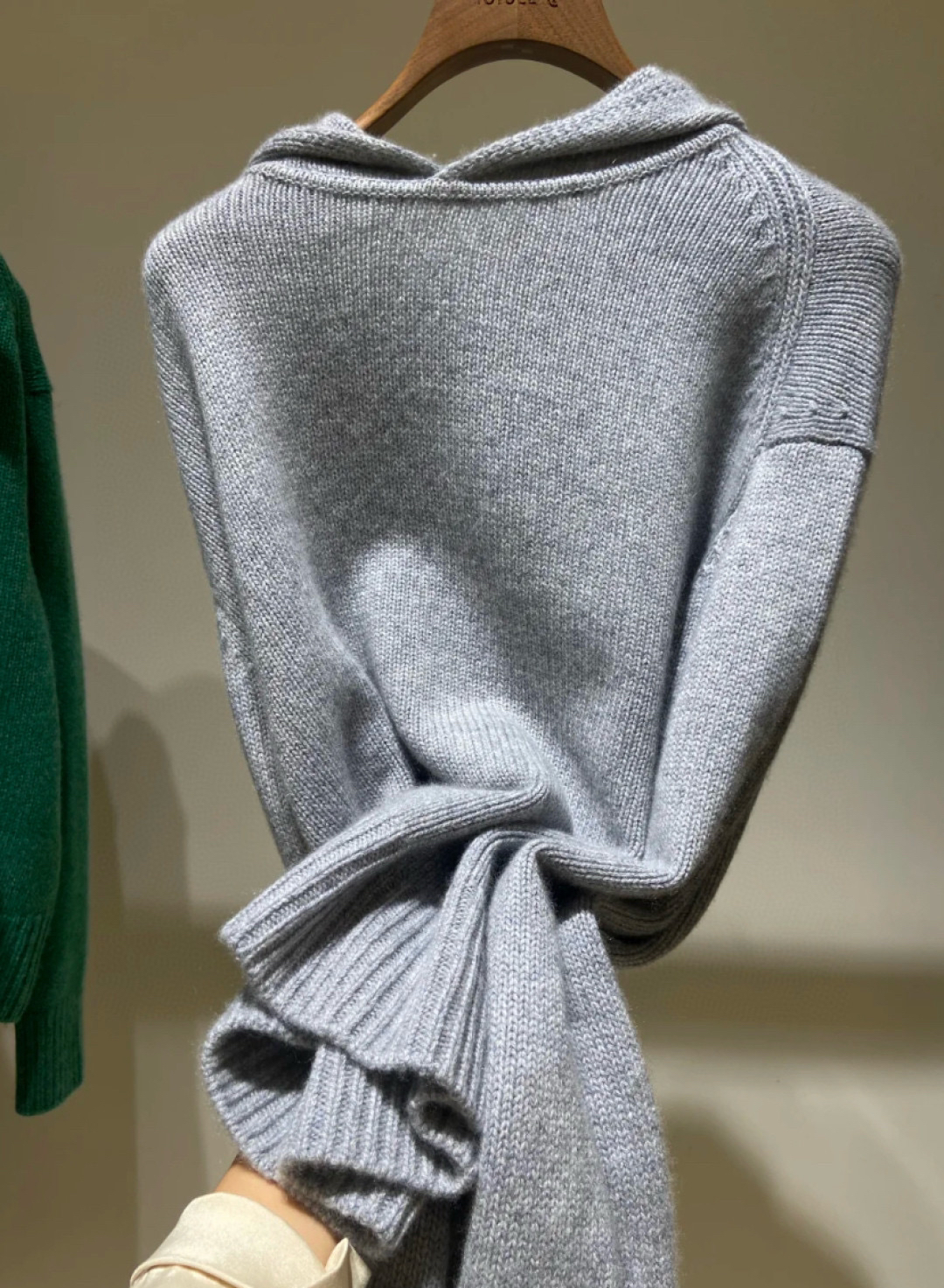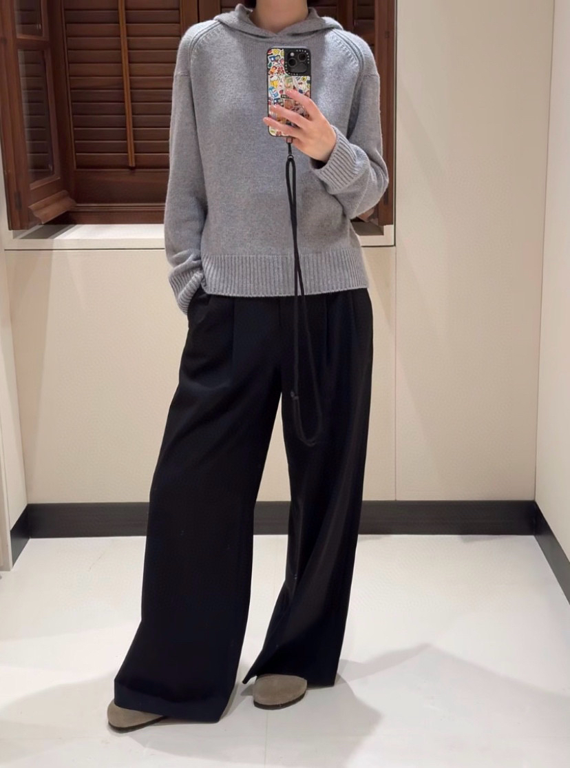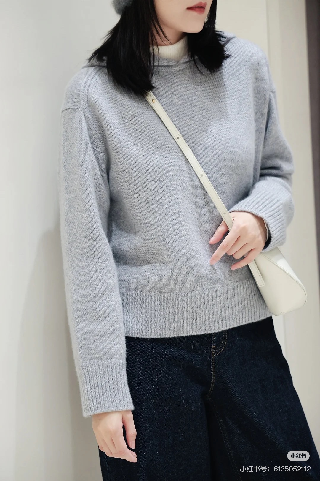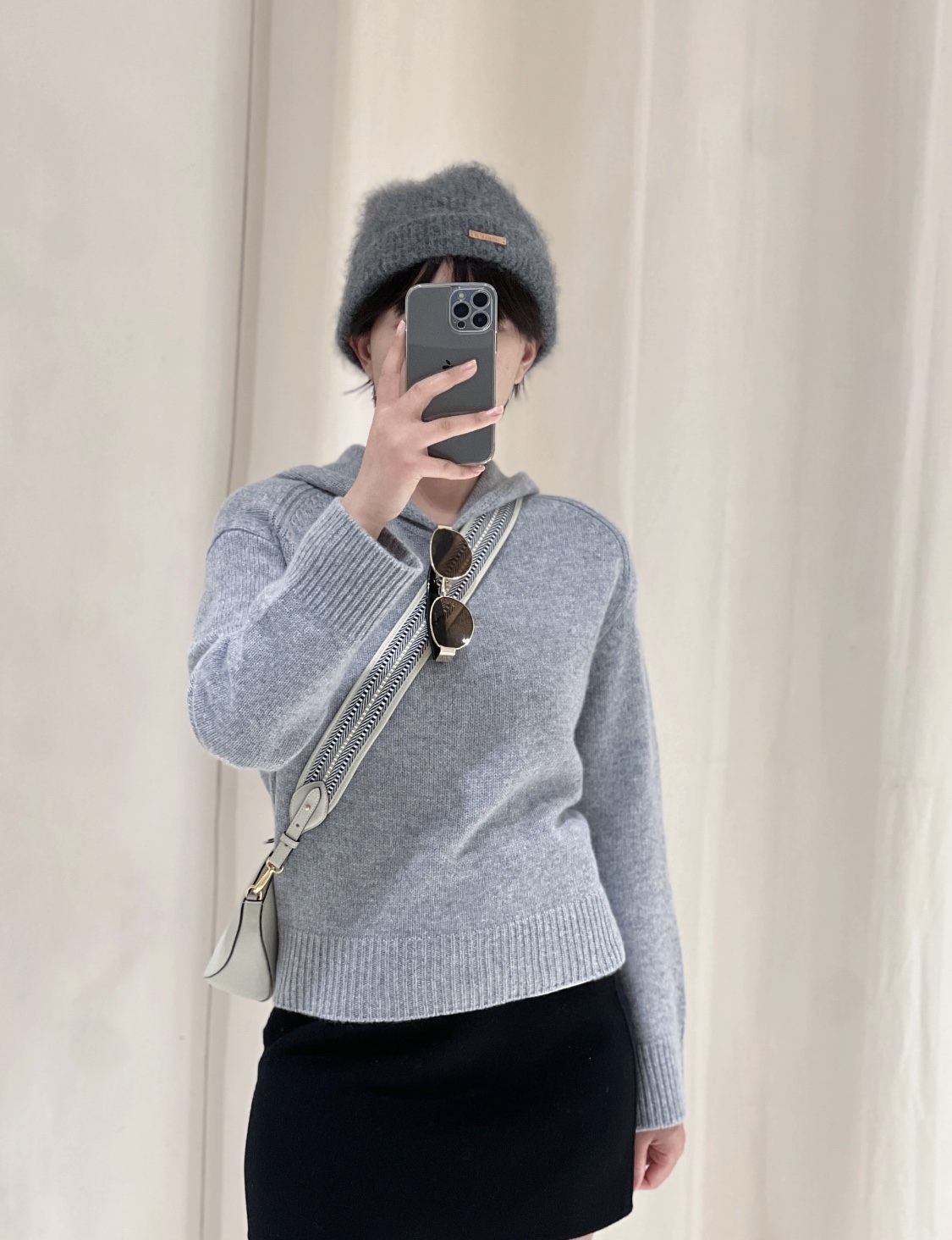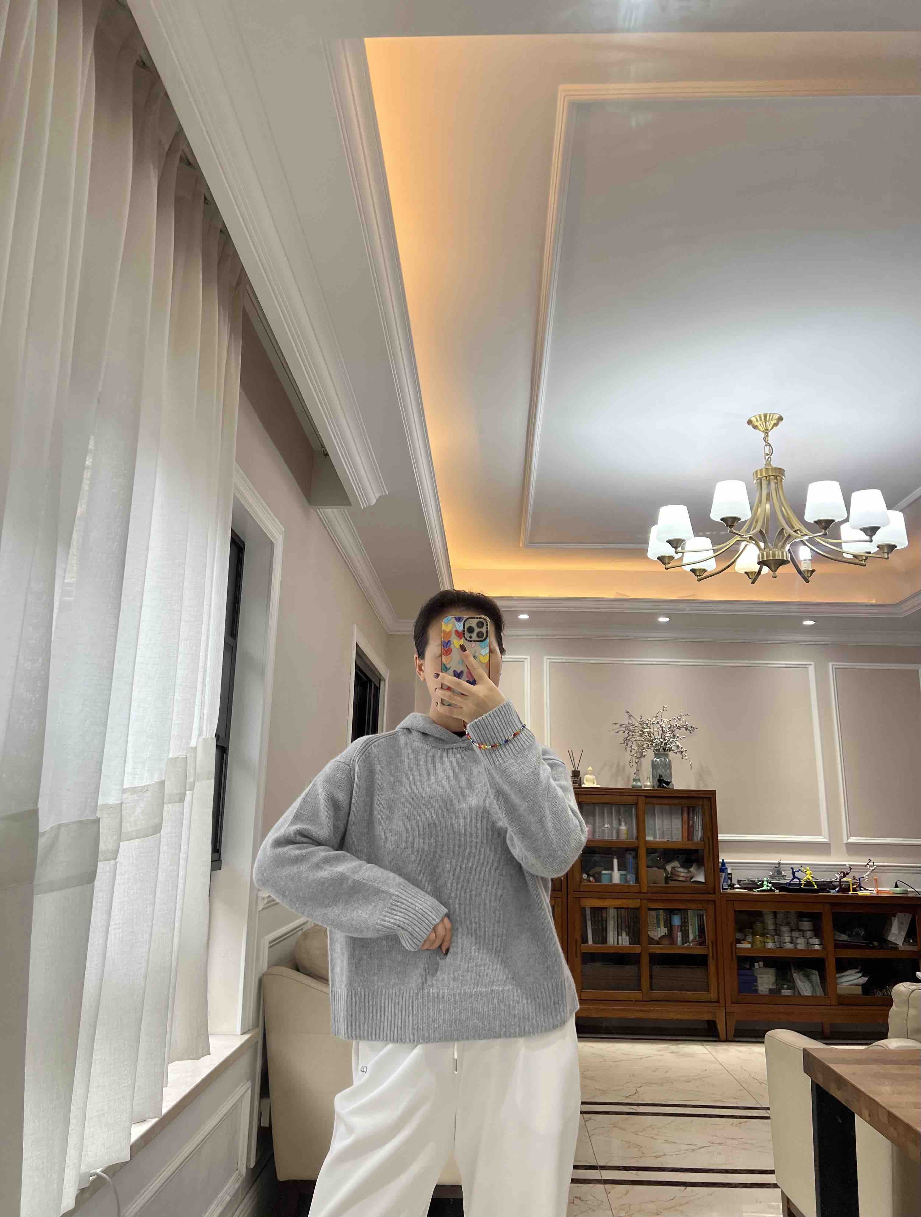 羊绒帽衫,知性灰色,中性知性,柔和温和,再配上牛仔裤,舒适休闲的代名词,休闲、利落大方~