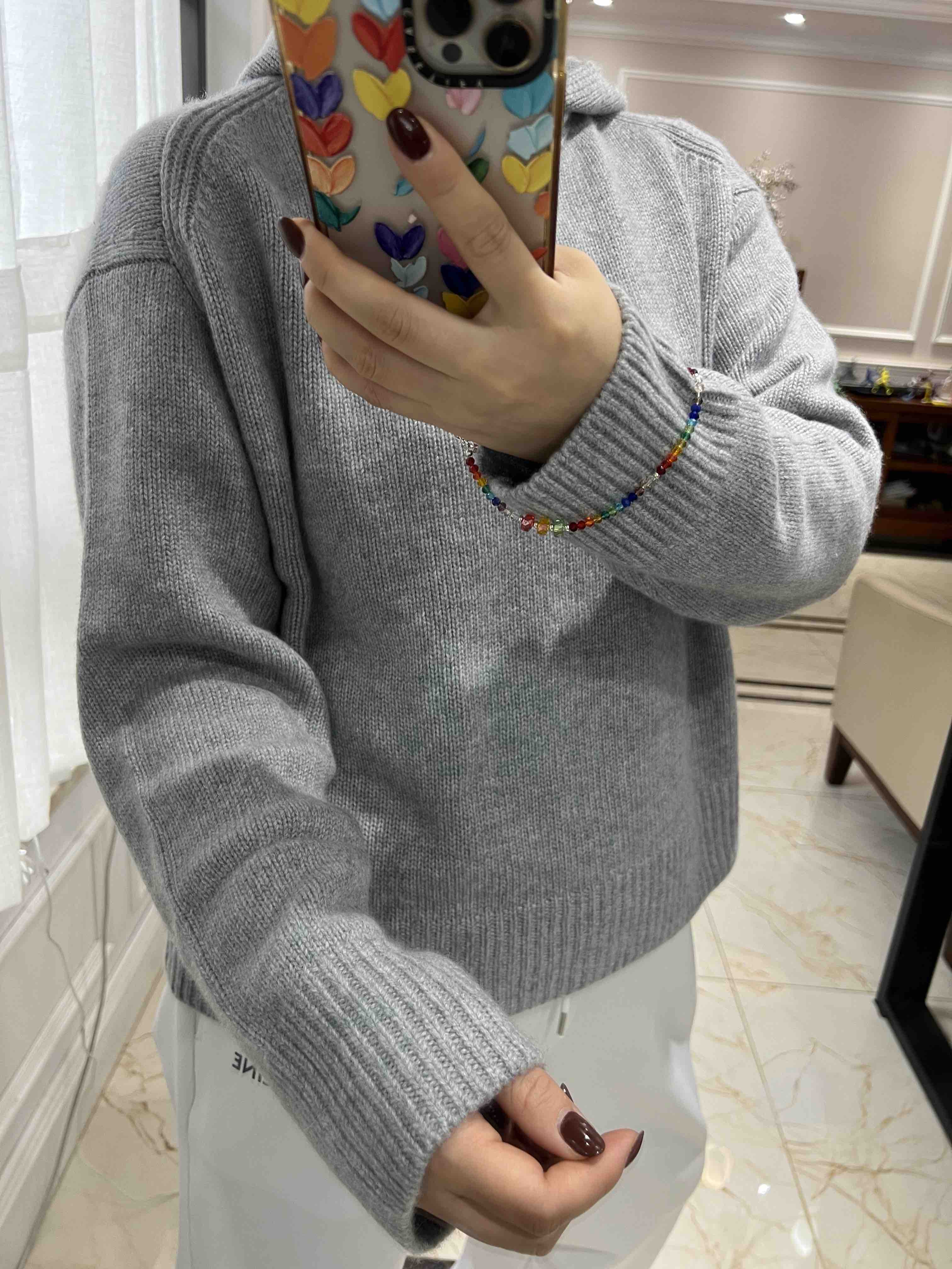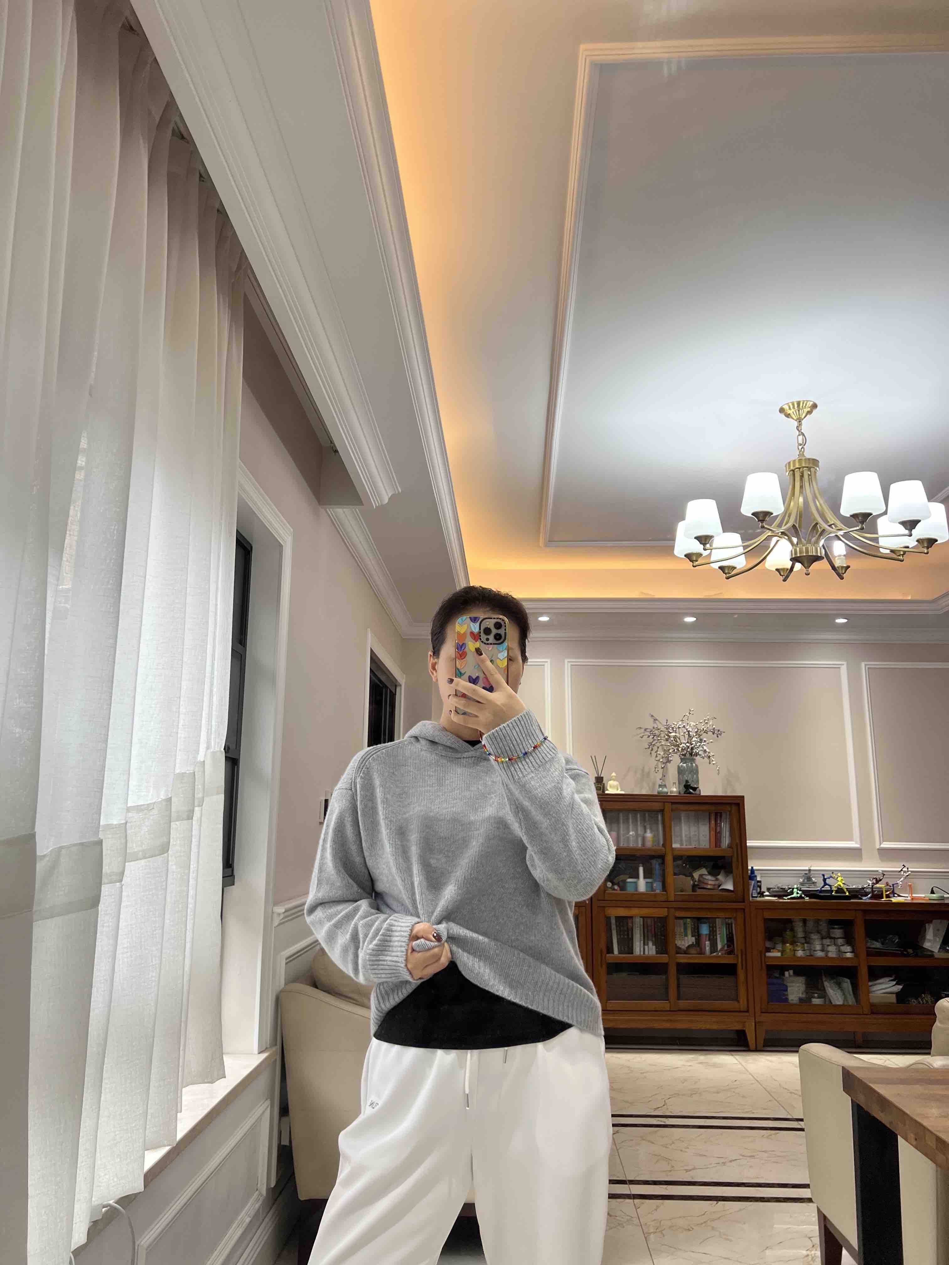917-1 亏清 纯圆正 小禾重磅 康宝莱 灰色夹花羊绒 连帽针织衫 卫衣款针织
