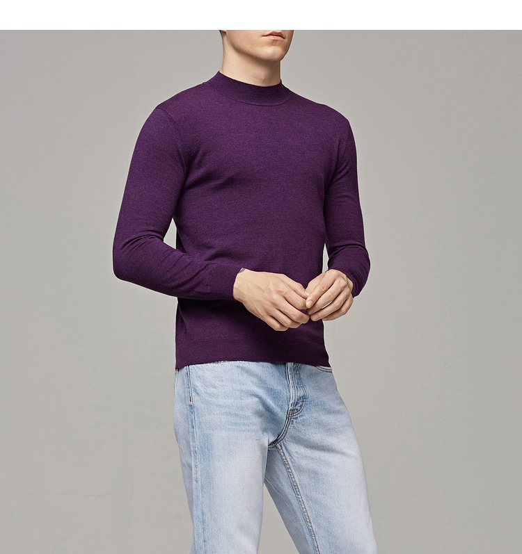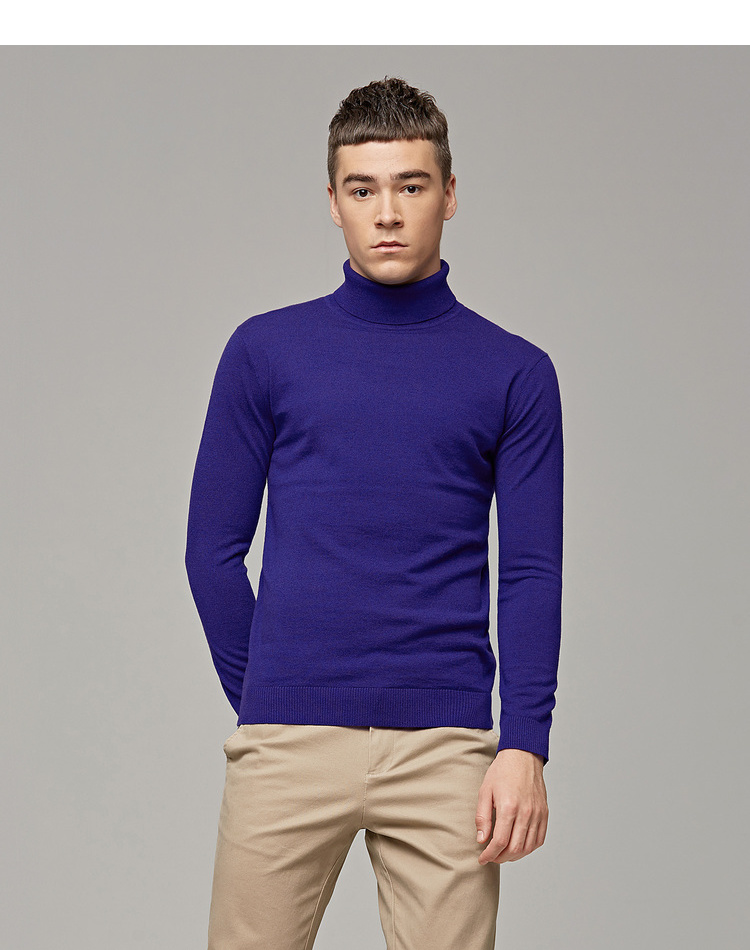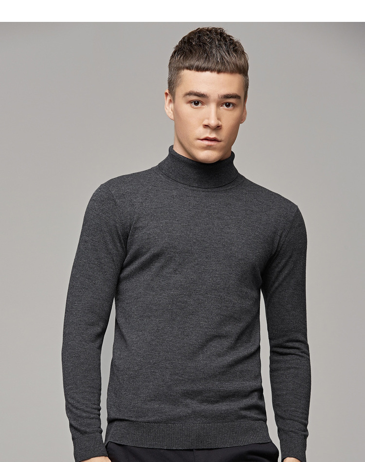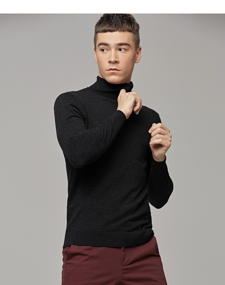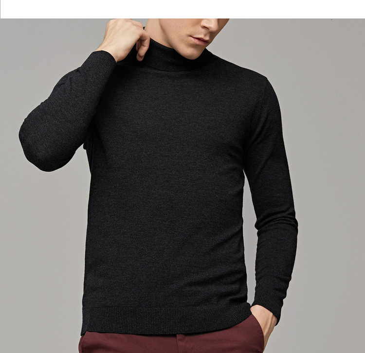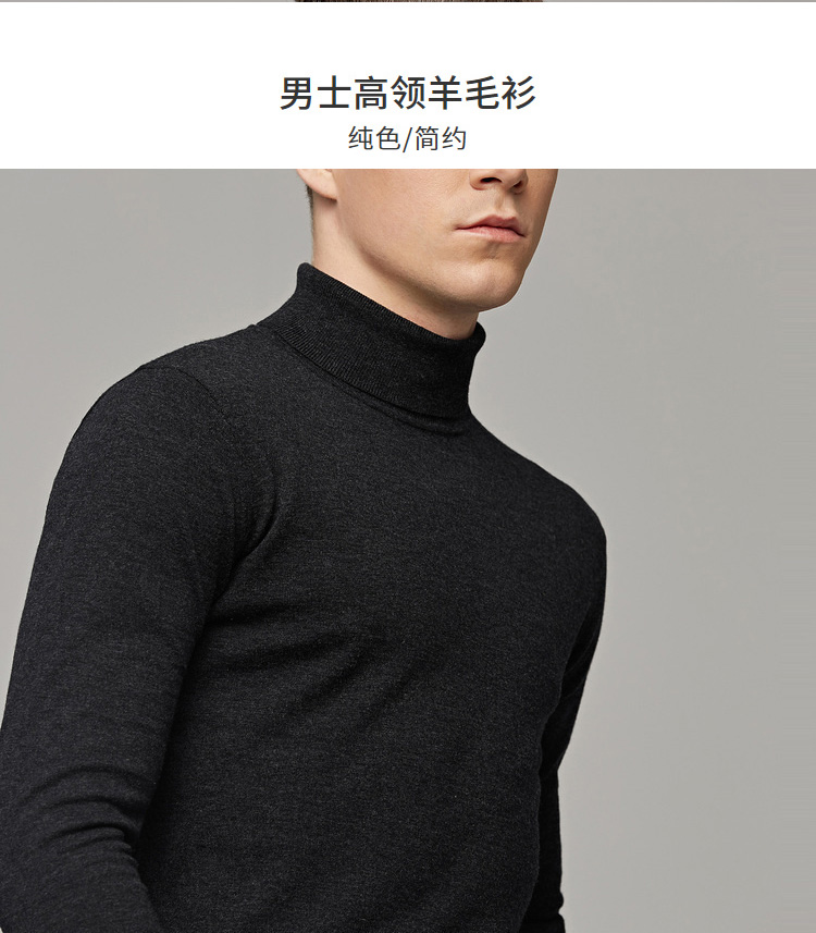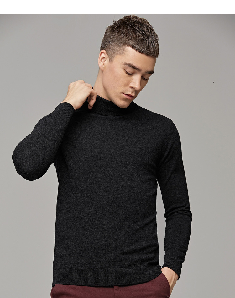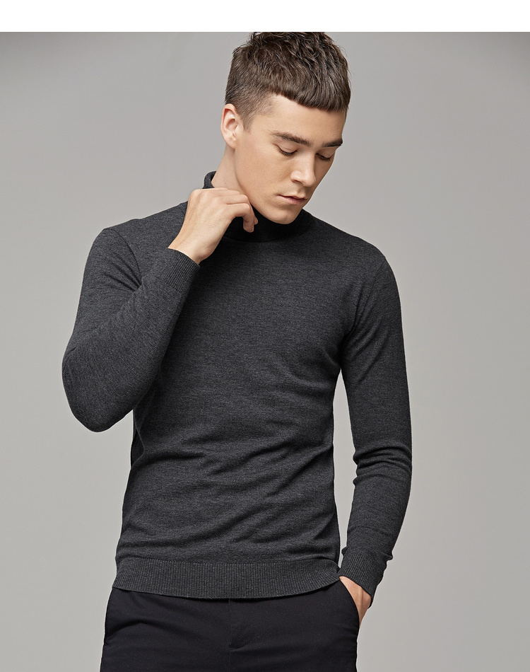 墨麦客男装秋季新款男士套头可翻高领毛衣男圆领长袖全羊毛衫
