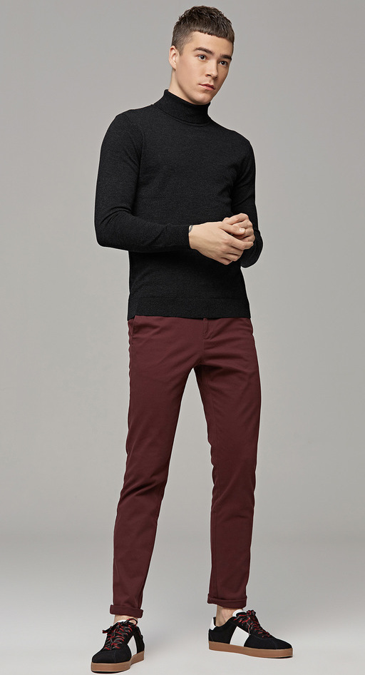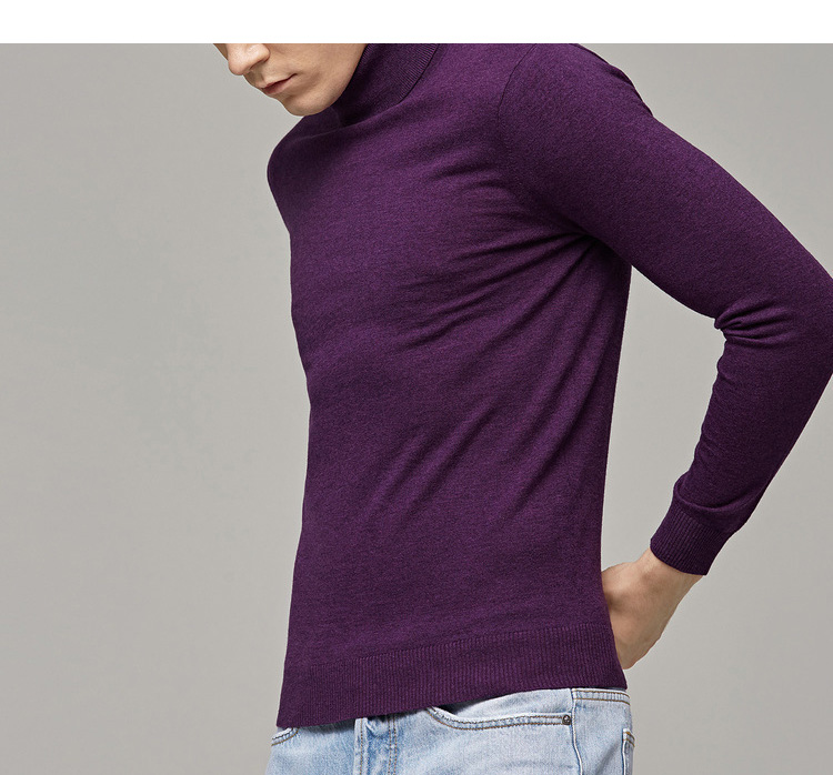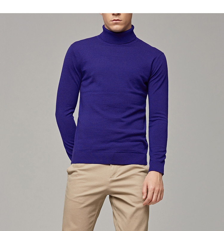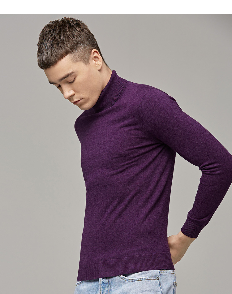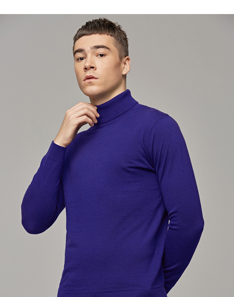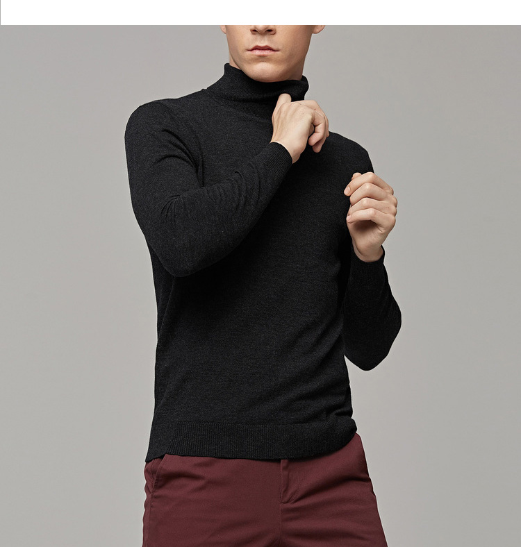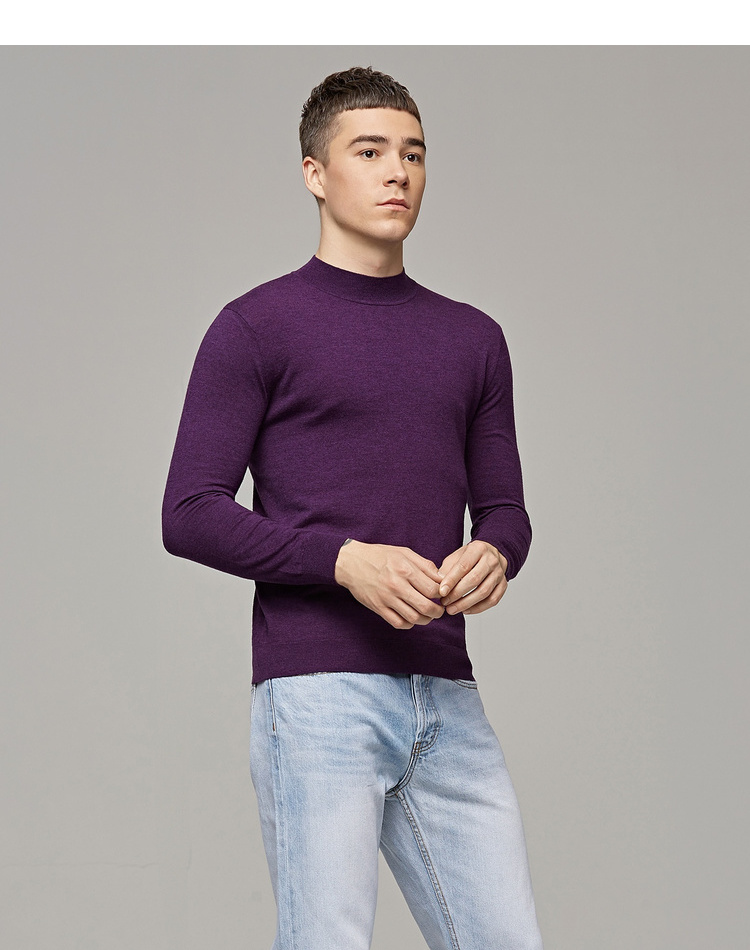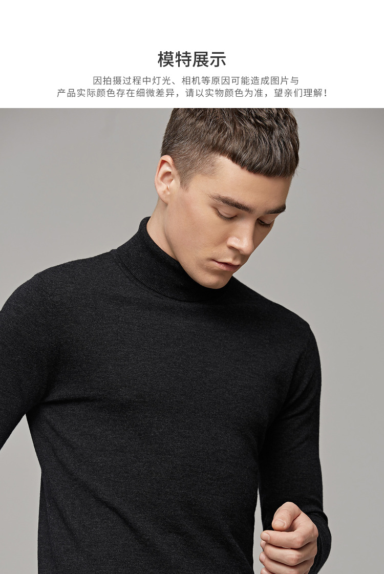 墨麦客男装秋季新款男士套头可翻高领毛衣男圆领长袖全羊毛衫