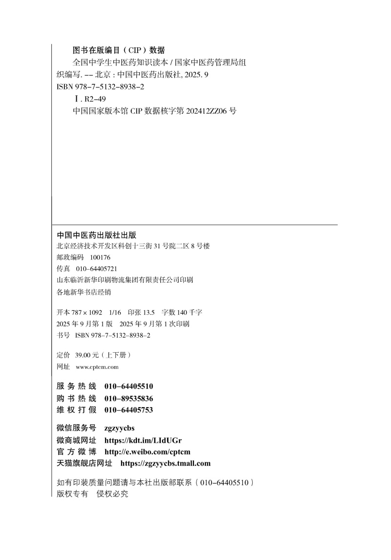 书名:【全2册】全国中学生中医药知识读本(上册+下册)