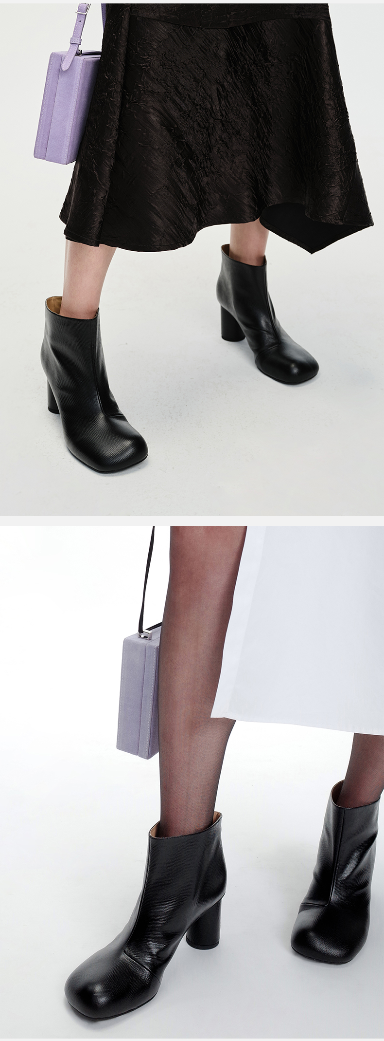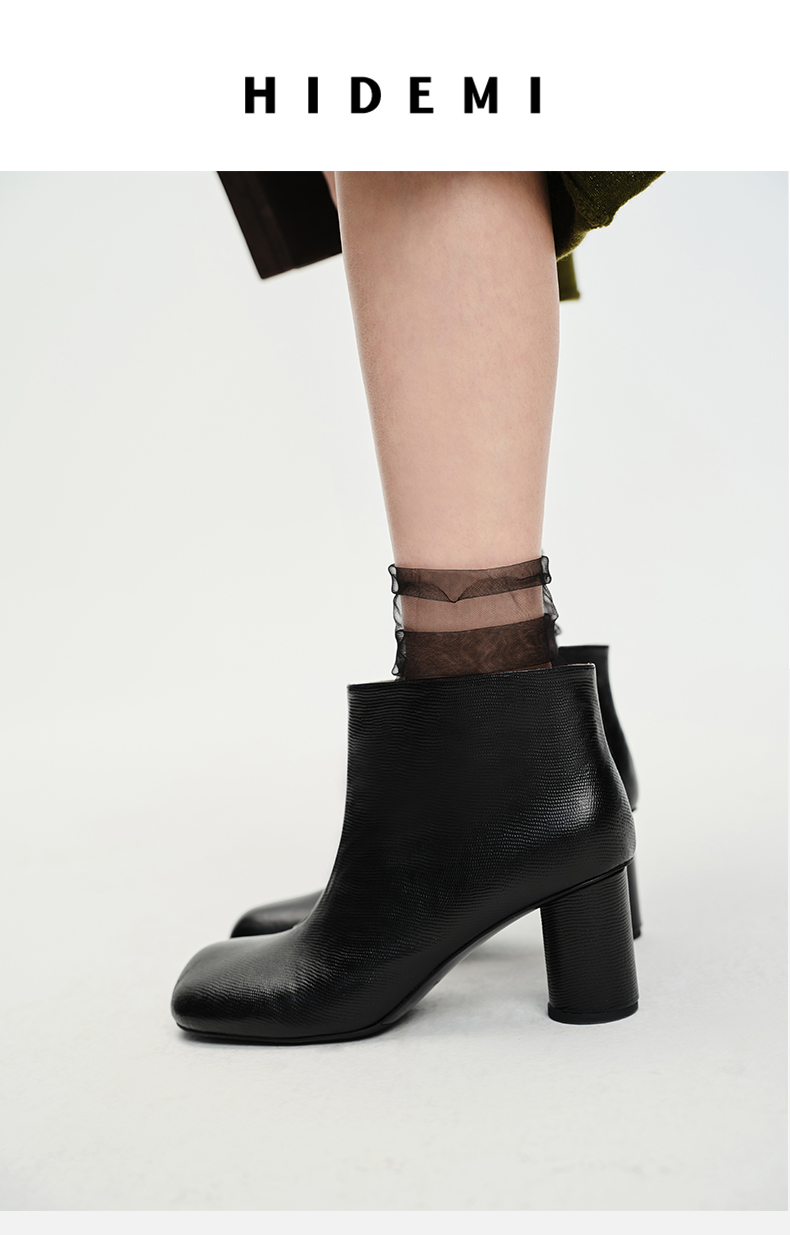 HIDEMI 蜥蜴纹圆头极简粗跟踝靴短靴