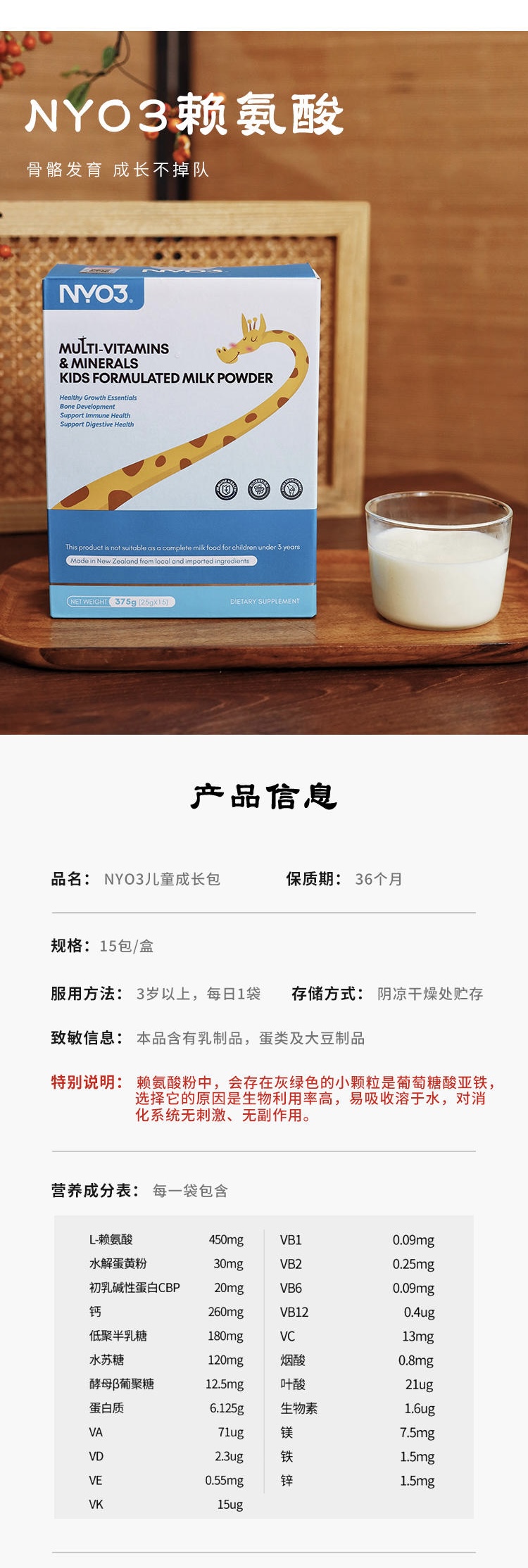 【青少年赖氨酸成长奶粉】奶香味【青春猛长期】维生素钙镁锌,生长素矿物质儿童调制乳粉,助力孩子长高~【跨境商品不支持七天无理由退货,退货退款需要扣除税运,税费以实际税费为准】
