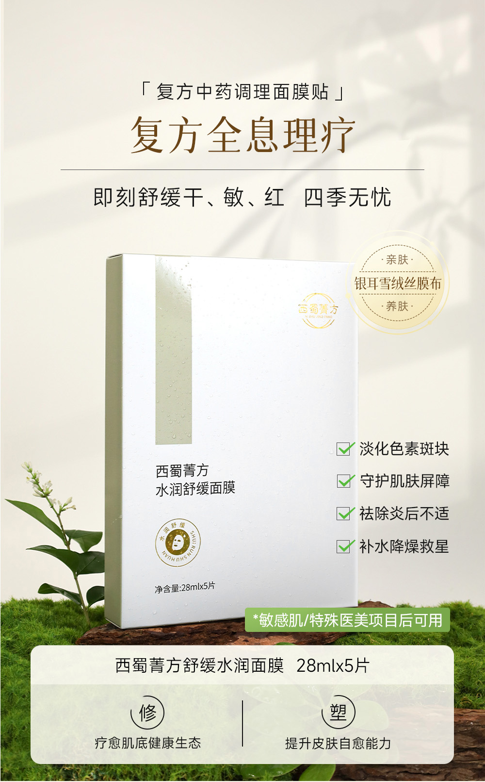 西蜀菁方水润舒缓面膜 双抗提亮复方草本 生态温和舒缓保湿补水改善暗沉