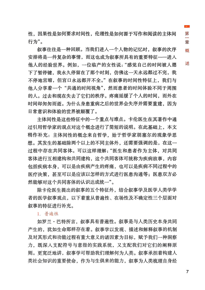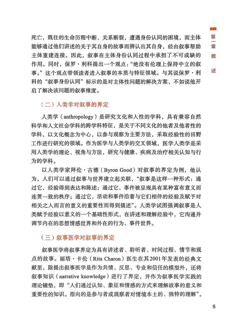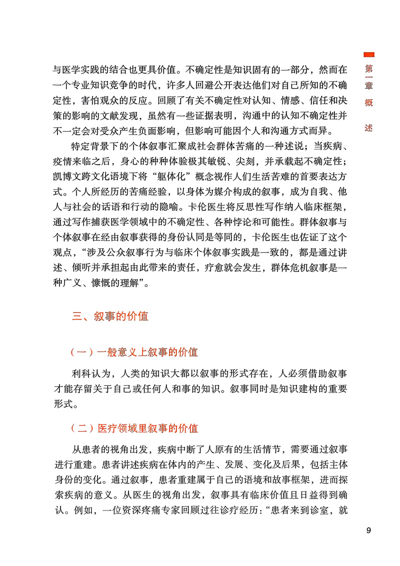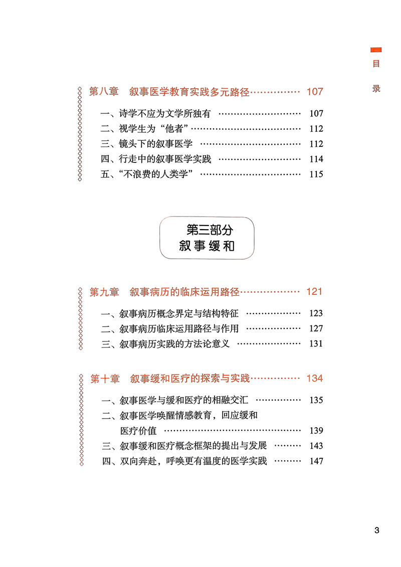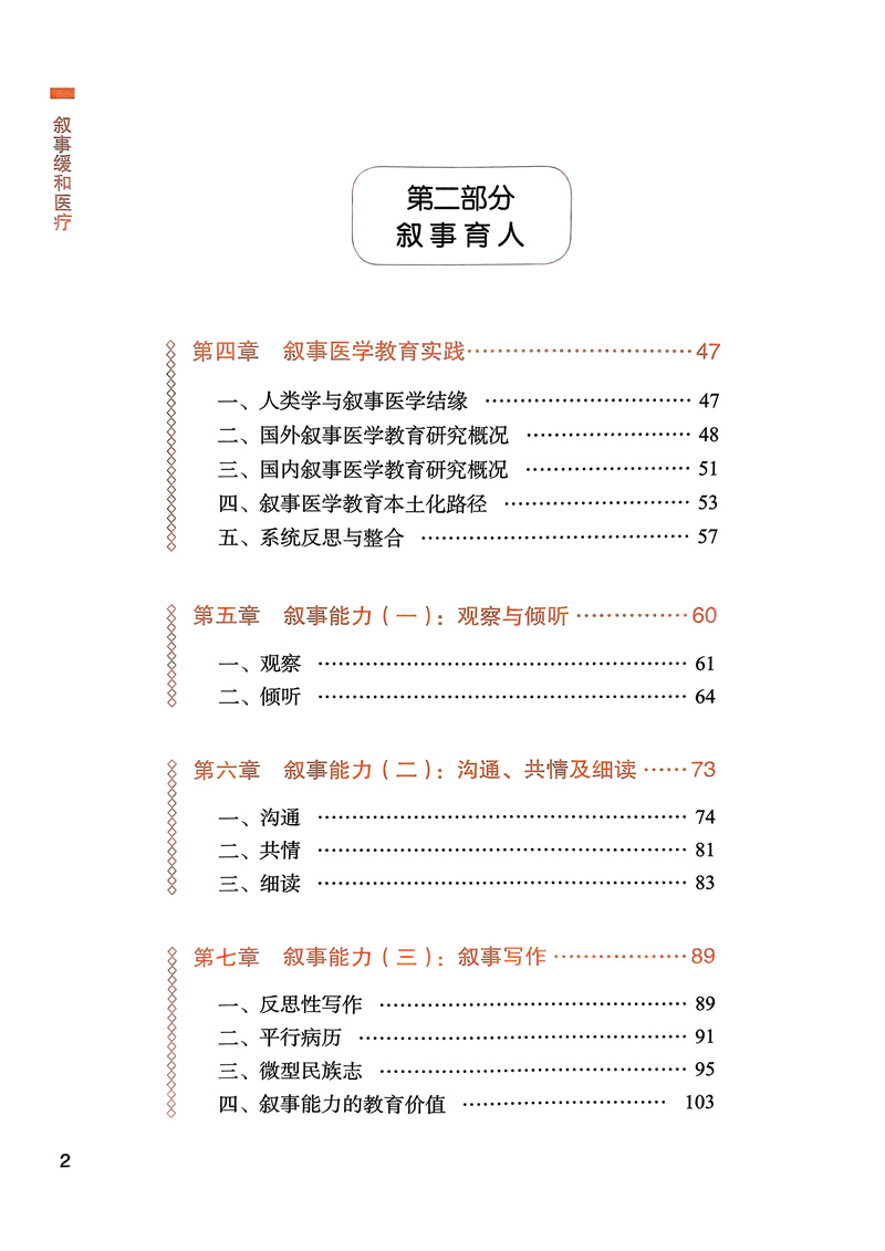 结合本书的谋篇布局,向读者展现“叙事缓和医疗”概念的产生和发展:起点为人类学家开启叙事医学教育教学的探索,根源在于与协和缓和医学中心团队的深度融合和互动,升华于文献学习与学术交流。全书共四部分、十二章。第一部分为叙事之道。本部分涵盖了叙事、叙事能力、叙事医学概念,叙事医学的源起、产生背景、哲学基础、文学与医学的融合理念等。其中,现象学作为叙事医学的哲学根基,提示我们对日常生活世界与客观科学世界进行区分,并关注体验和感受。在卡伦医生观点的基础上,补充并再行论述叙事的特征,同时强调了人类学对叙事医学发展的可能贡献。第二部分为叙事育人。以缓和医疗的临床实践案例为主体,本部分内容集中展现了叙事缓和医疗的实践性与教育性。作为叙事医学的核心概念,叙事能力的培育和提升成为叙事医学教育的主要目标。在探讨国内外叙事医学教育实践状况的基础上,将具象化的能力与路径(包括观察与倾听、沟通、共情与细读、叙事写作等)作为各章主题进行分述。结合丰富生动的案例,形成文本、绘画、微电影、诗词等多元路径的融汇,叙事能力的要素与训练路径得以呈现与诠释。这些丰富多元的路径源自“不浪费的人类学”理念,以多元形式的文化表征,拉近了人与人心灵之间的距离。第三部分为叙事缓和。笔者团队界定的叙事缓和医疗概念框架,集中表达了协和叙事医学教育实践与研究的核心主张、创新发现与理论贡献。该框架以叙事医学与缓和医疗实践的紧密融合为基础,以叙事病历为其中的核心概念,致力于以叙事思维进行病历书写,将叙事性内容融入现行病历,进而自缓和医疗领域的实践向医学界推广而形成方法论意义。作为概念化、系统化的阶段性呈现,叙事缓和医疗的探索与实践在持续完善、拓展、深化。这个相融交汇的过程和努力,旨在呼唤更有温度的医学实践。第四部分为叙事 反思。本部分旨在解析卡伦医生提出的“叙事伦理就是叙事医学”观点,同时也是对叙事医学视域下伦理问题的思考。“处处是叙事”的缓和医疗实践,既是伦理相关问题思考的动力,又是叙事伦理实践的可能解释。因为反思性叙事会以更有力度的方式带来行动,这就是叙事医学的伦理责任。笔者团队早期对平行病历工具临床适应性的质疑,构成了一段时期研究的重心,进而逐渐形成并明确了以叙事病历作为叙事缓和医疗框架中的核心概念,并预期医学界实践层面的可能变革。这些努力与阶段性的产出,都是源于思考、质疑和突破的伦理责任。