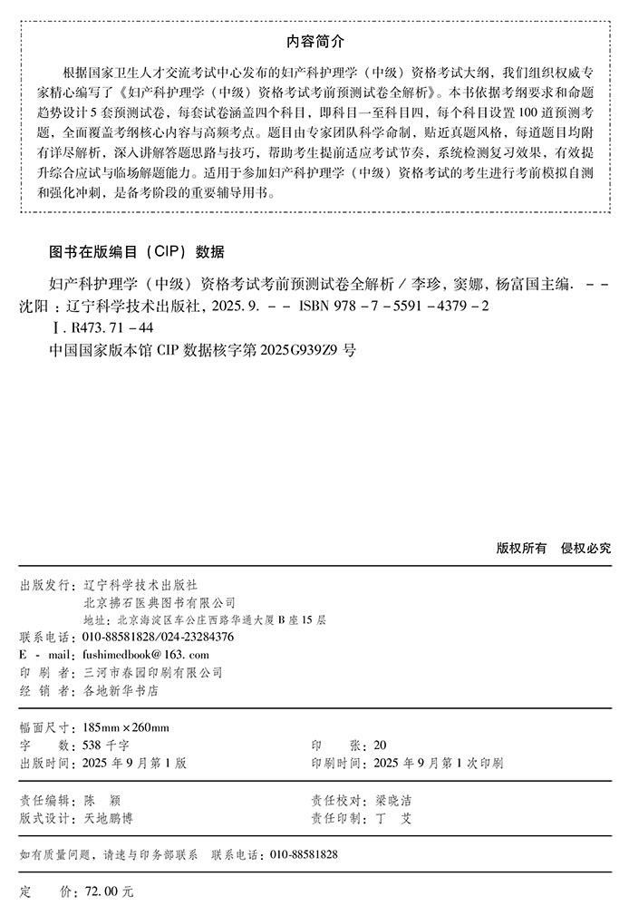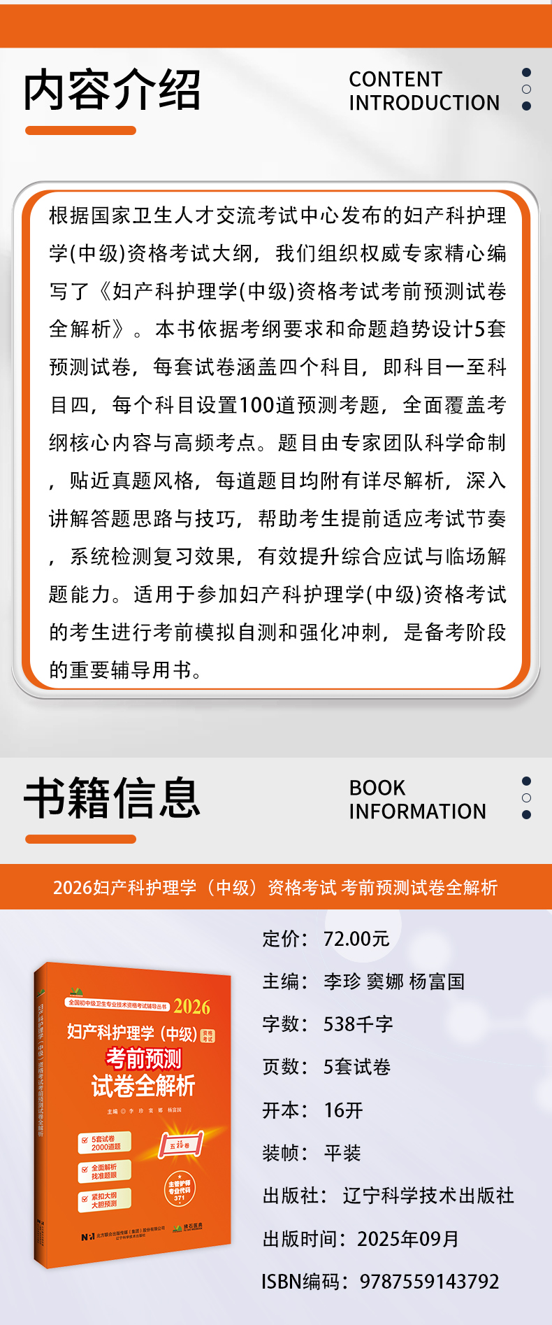 书名:2026妇产科护理学(中级)资格考试考前预测试卷全解析