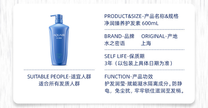 日本资生堂水之密语AQUAIR净润臻养洗发露(控油型)600ml