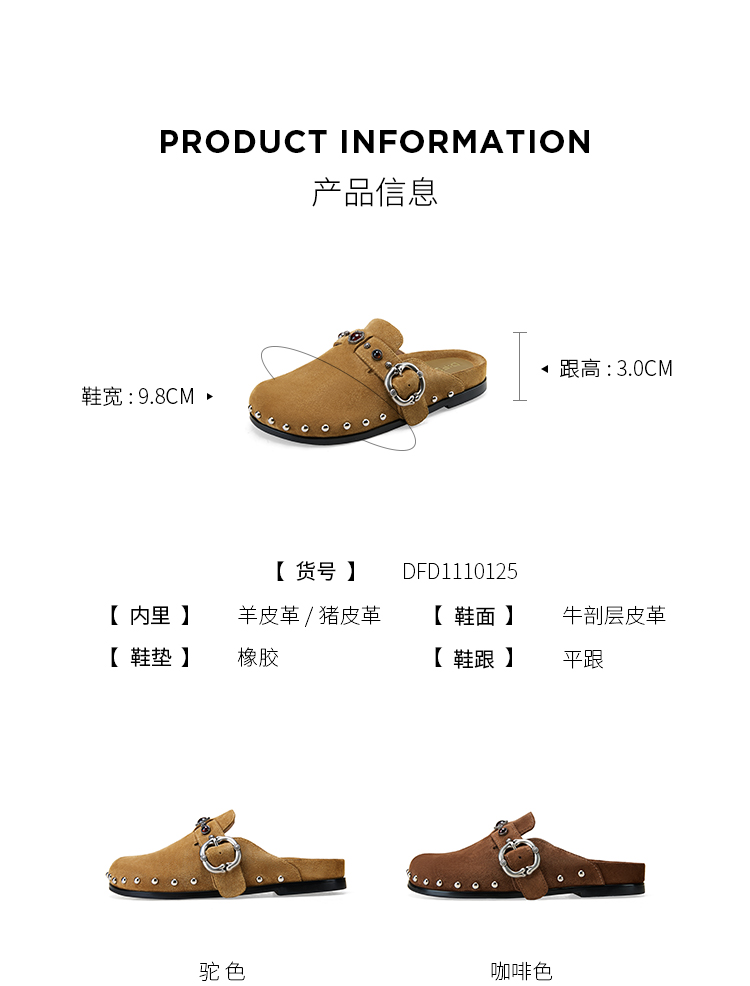 Dfuse迪芙斯2025春季新款游牧风户外半拖复古包头勃肯鞋轻便一脚蹬懒人鞋DFD1110125