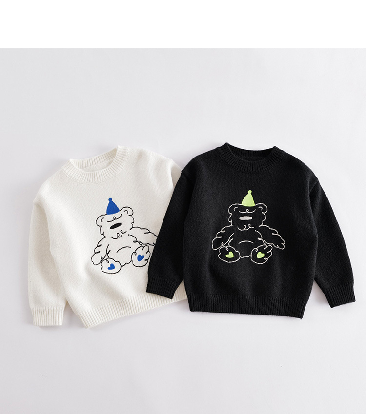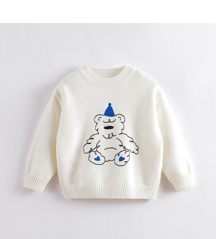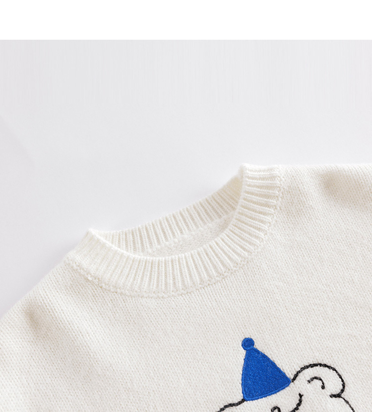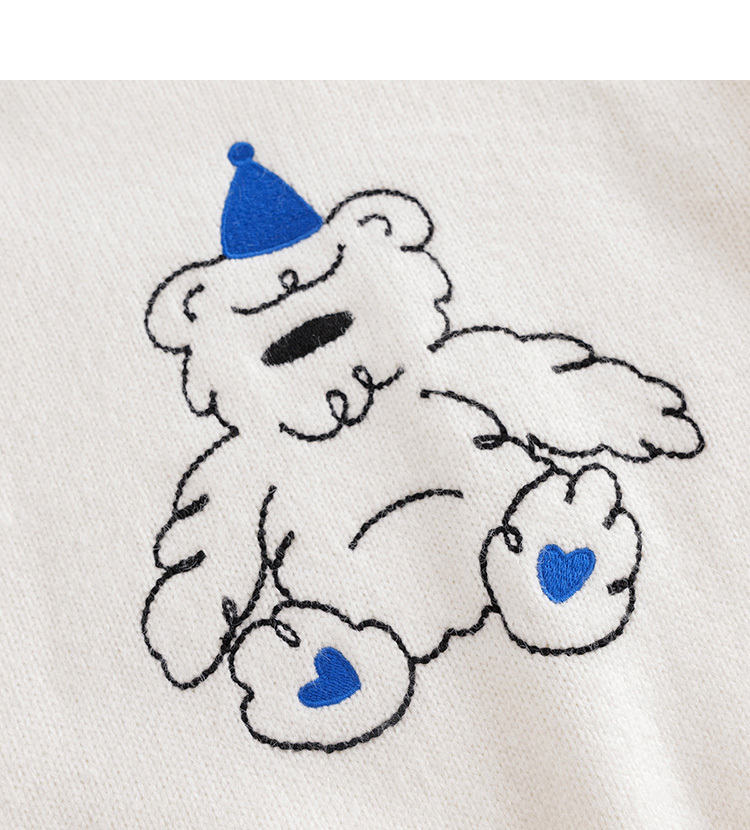 【柔蓝绒】马克珍妮秋冬新款 男童绣花小熊圆领毛衣221520