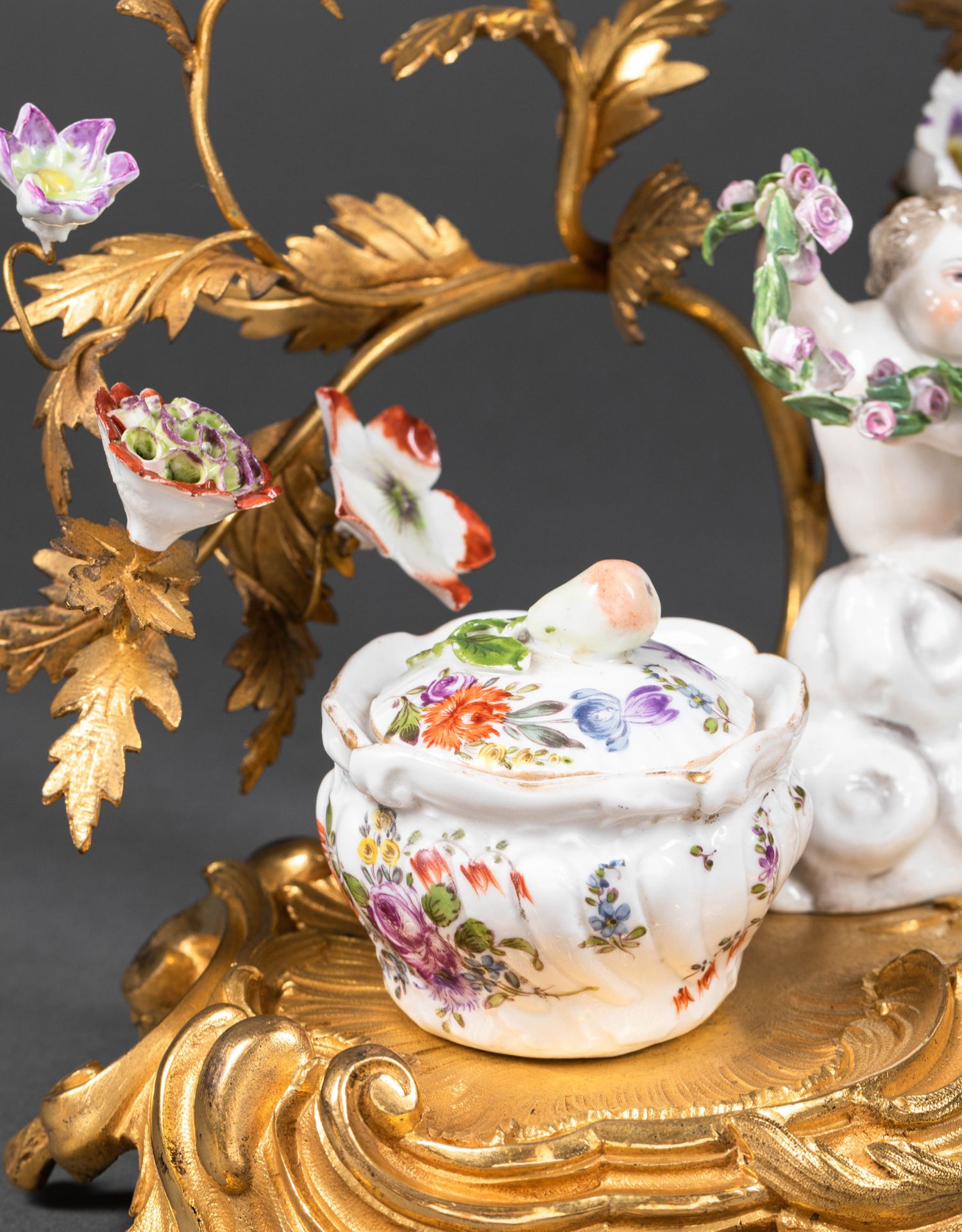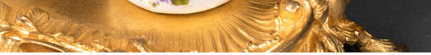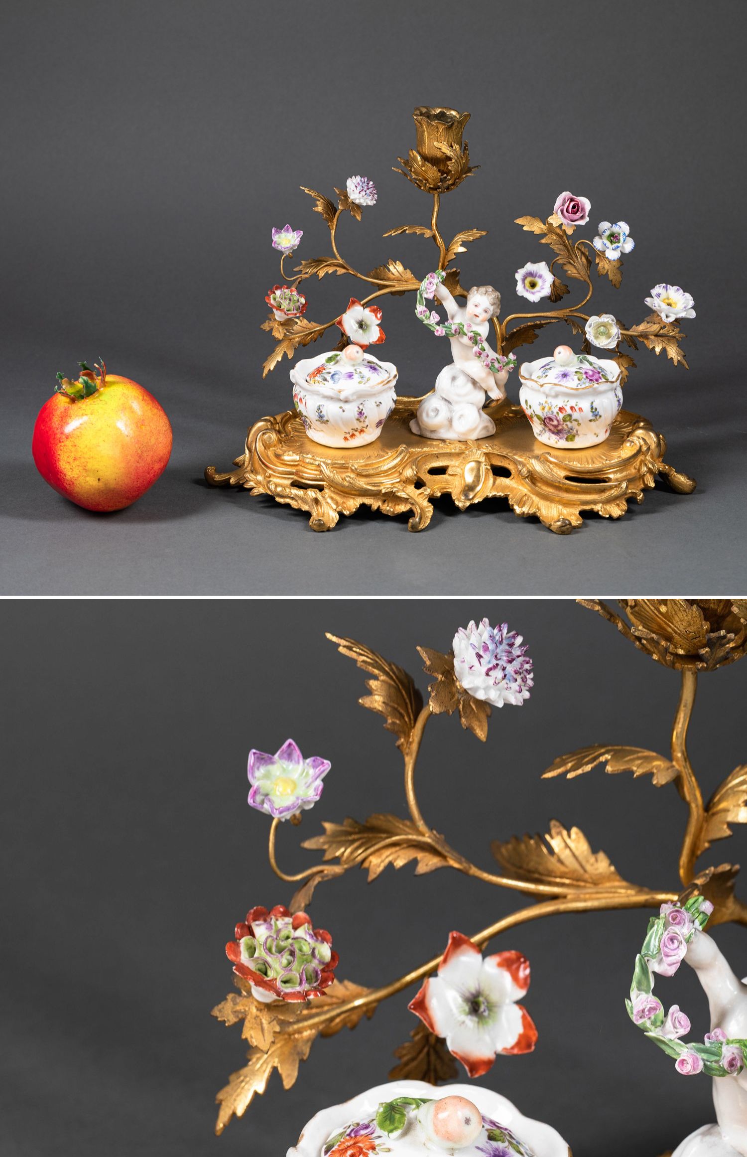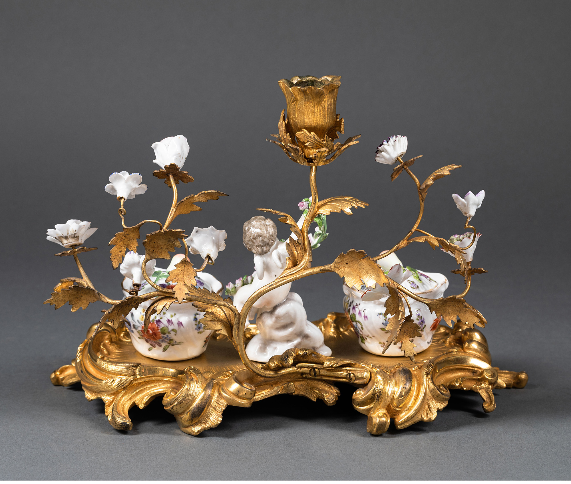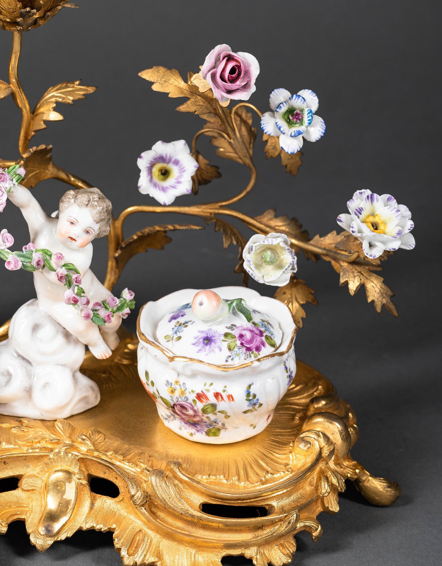 独角鹿西洋古董小天使花卉彩绘陶瓷洛可可风铜鎏金烛台式墨水台