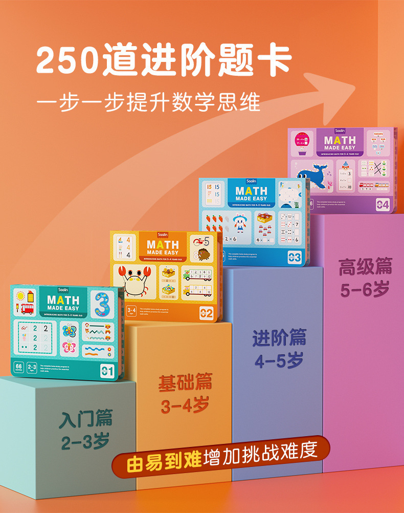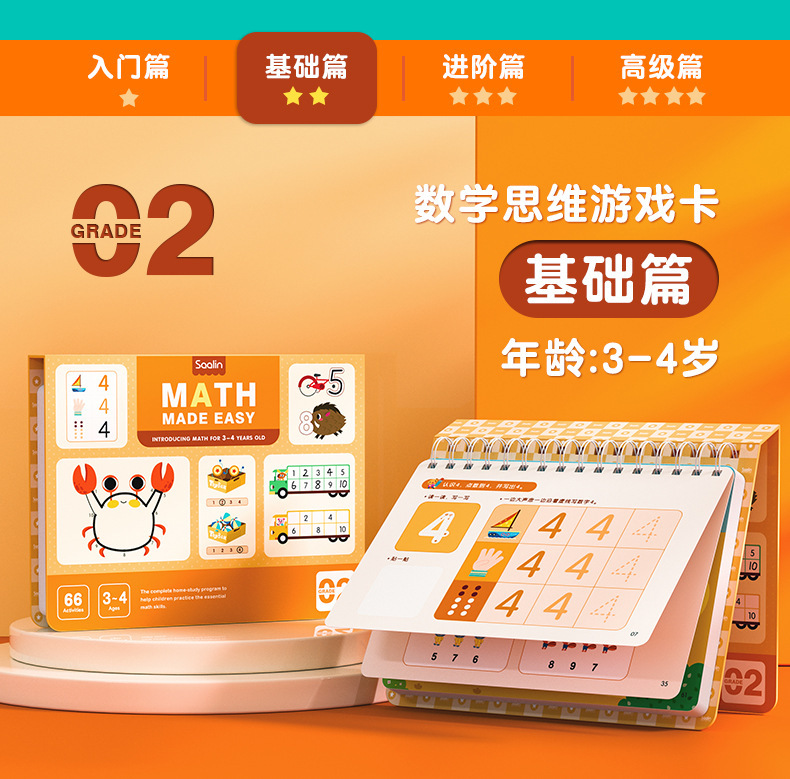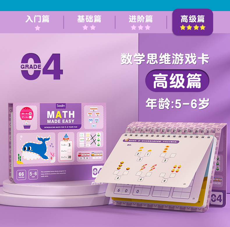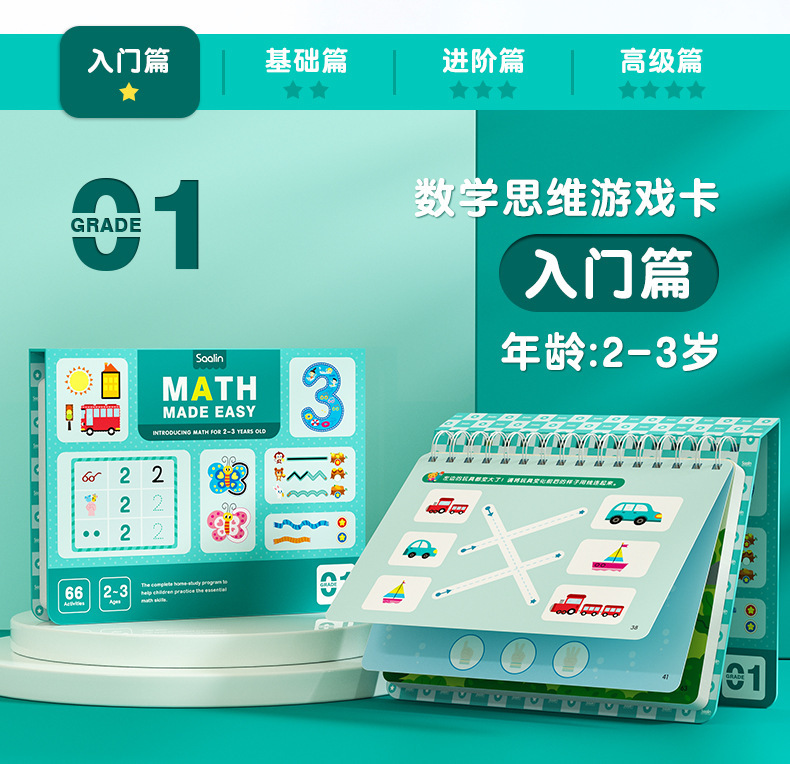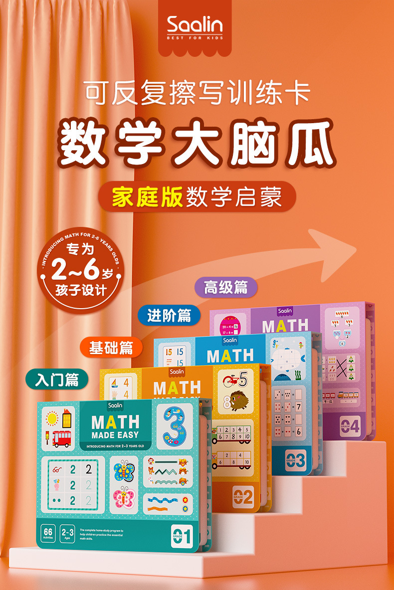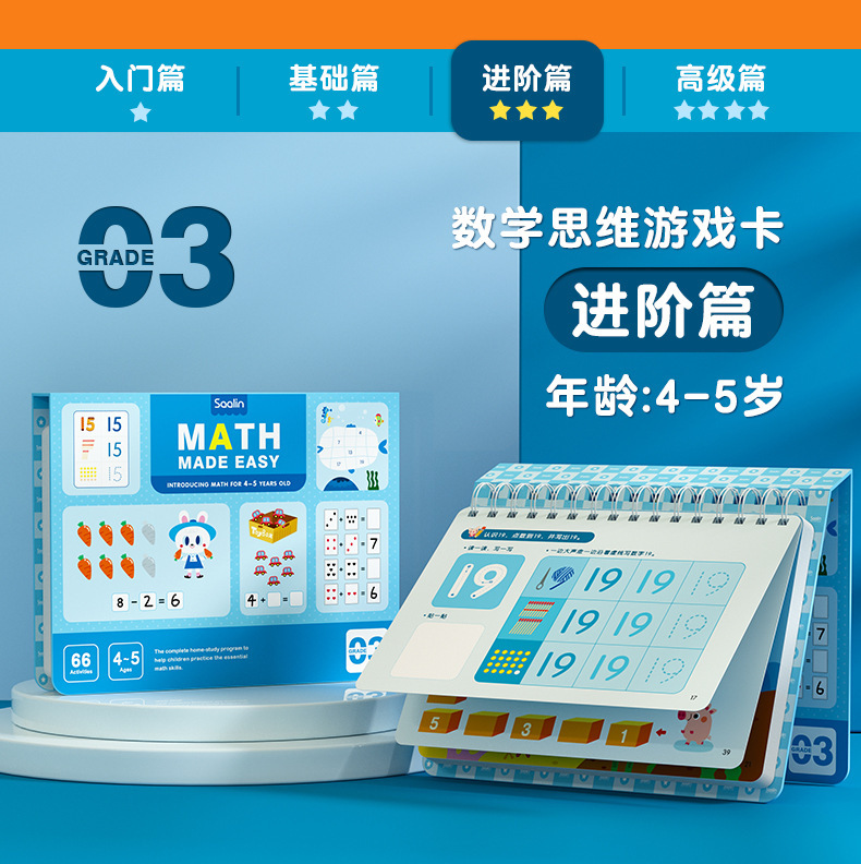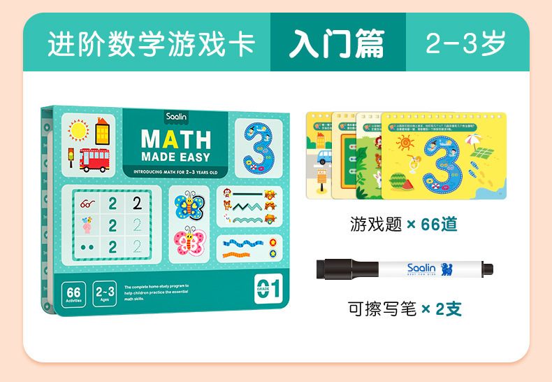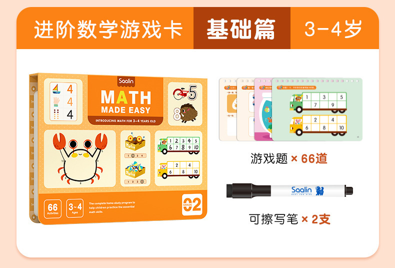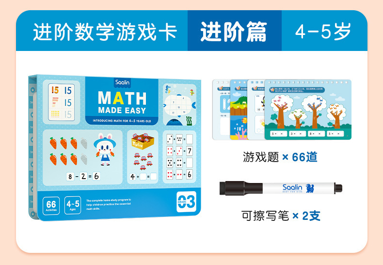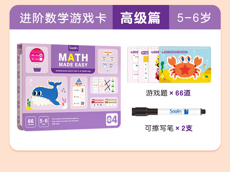 Saalin莎林进阶数学思维可擦写训练卡片家庭版幼小衔接益智玩具