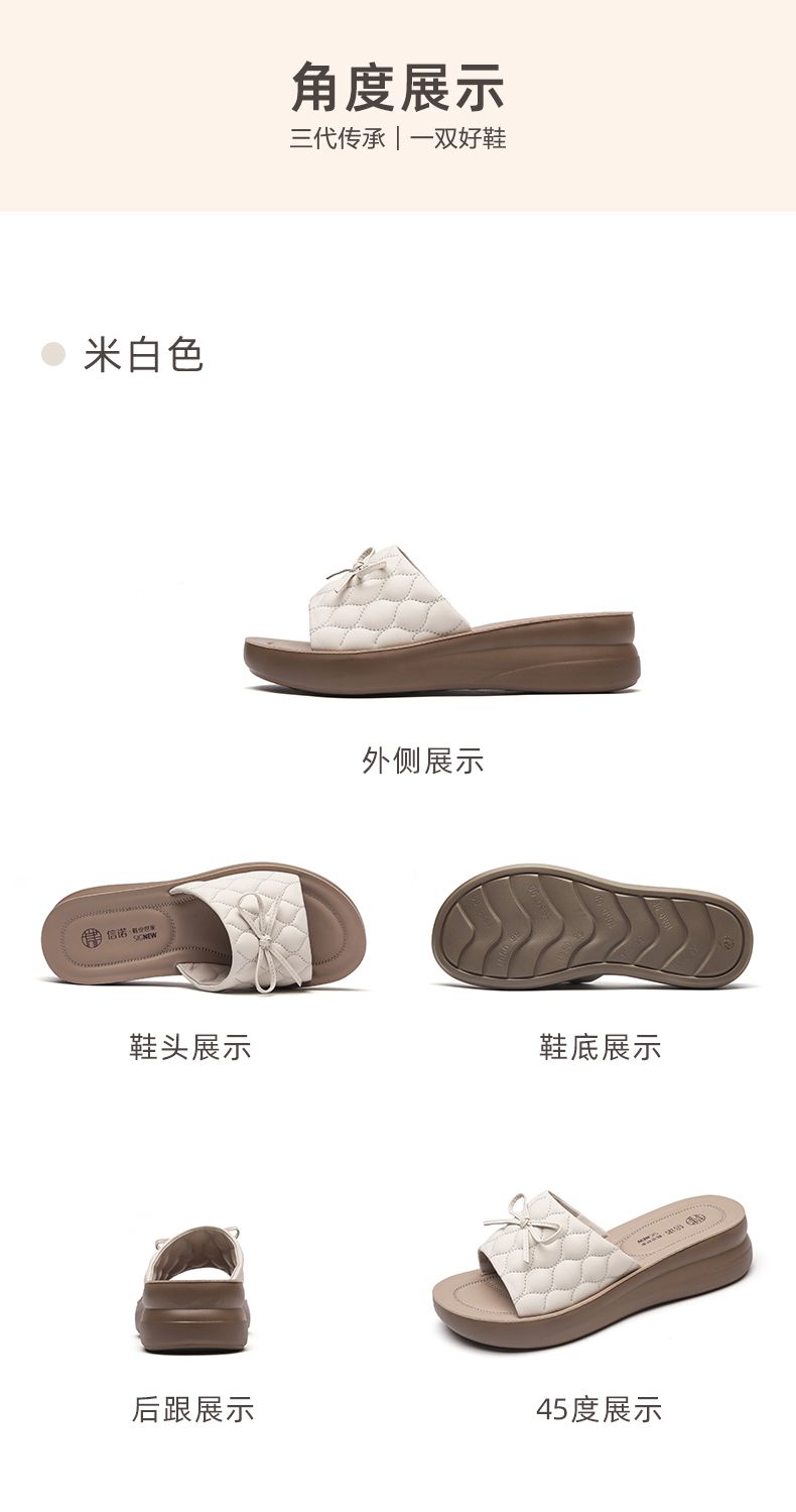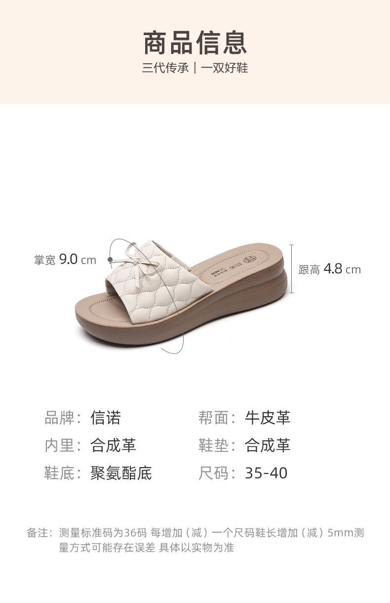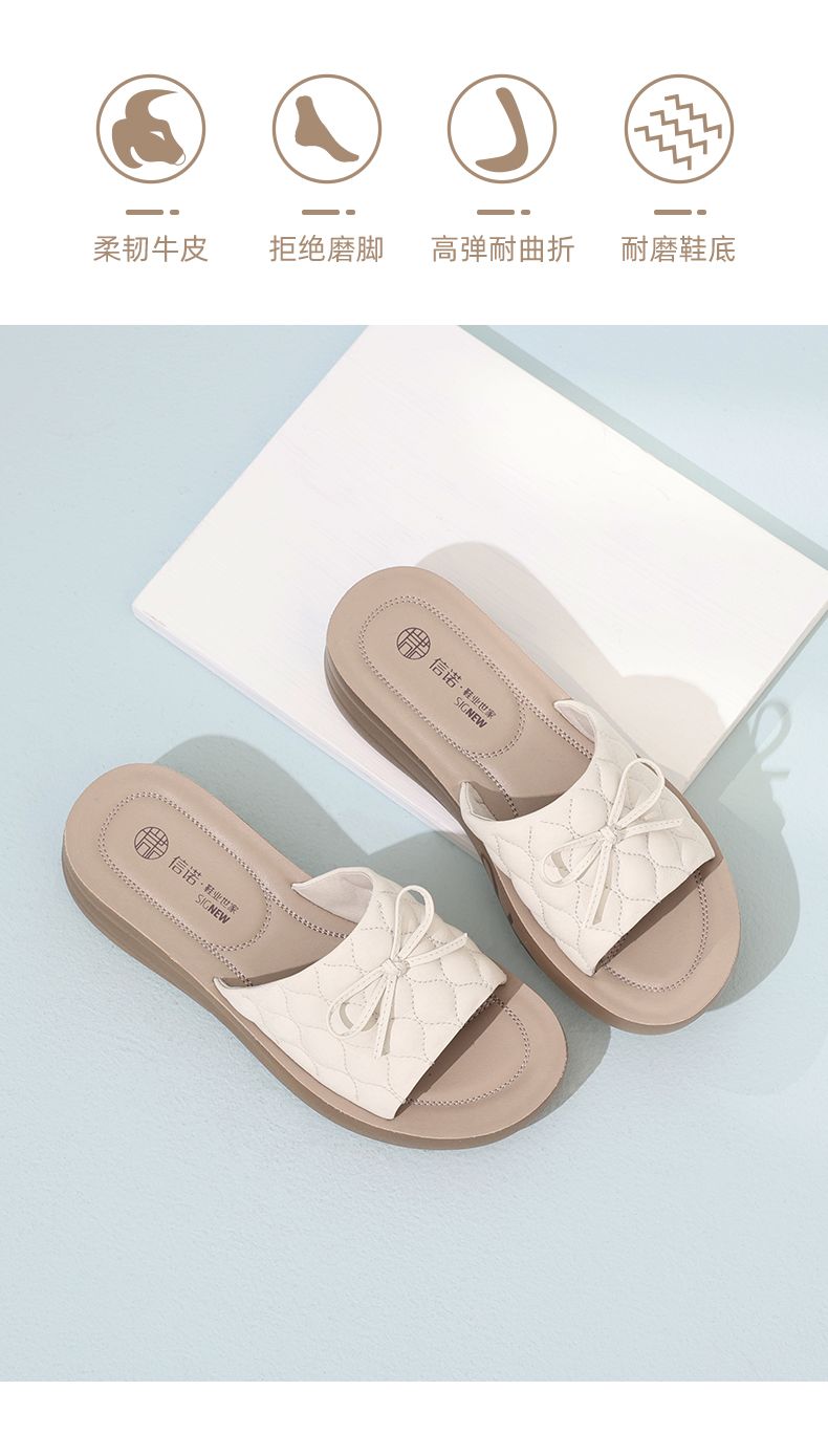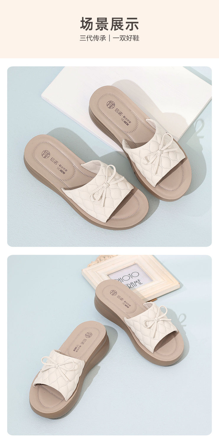 信诺 厚底舒适女鞋 2024夏季新款真皮外穿增高软底中年妈妈凉拖鞋L950-9