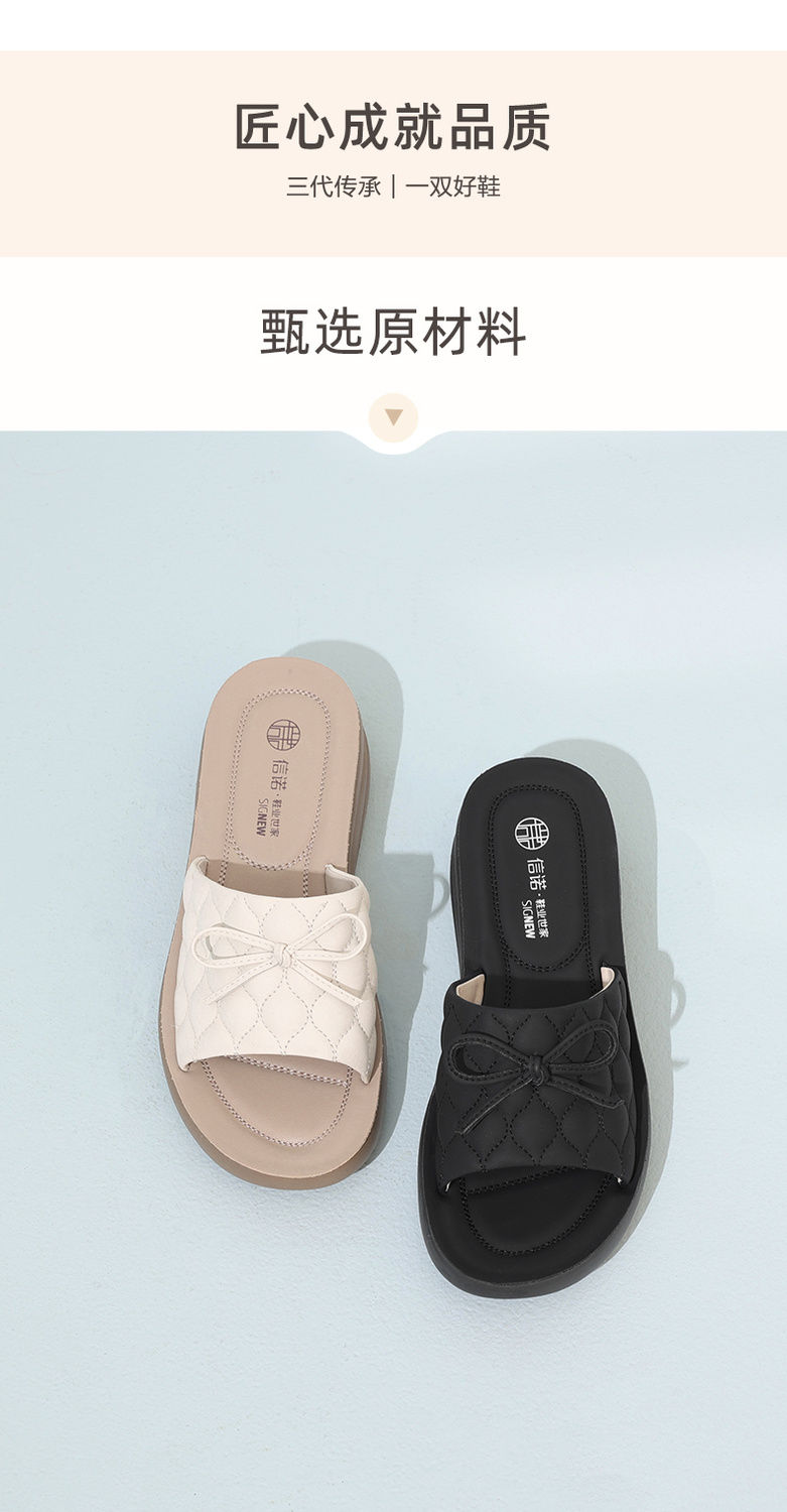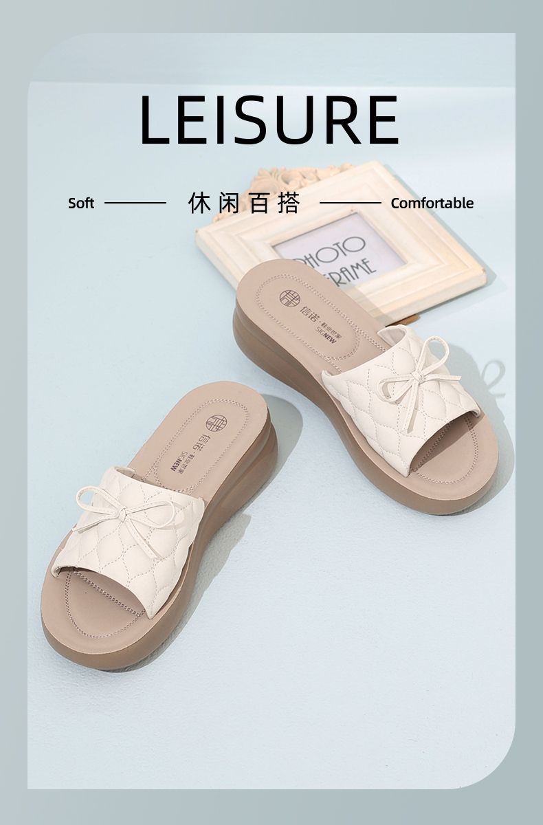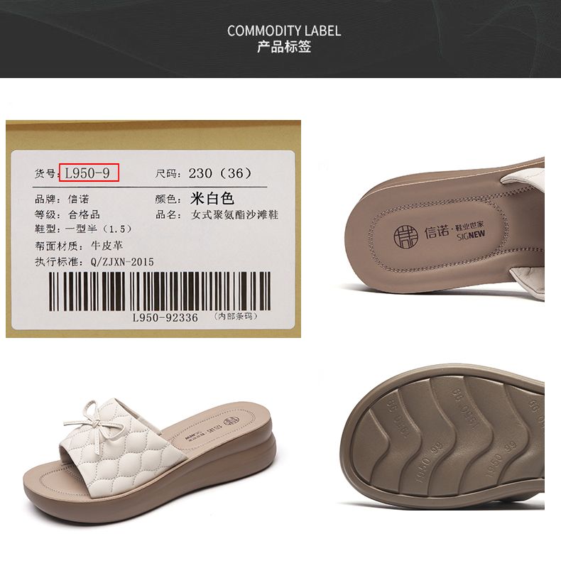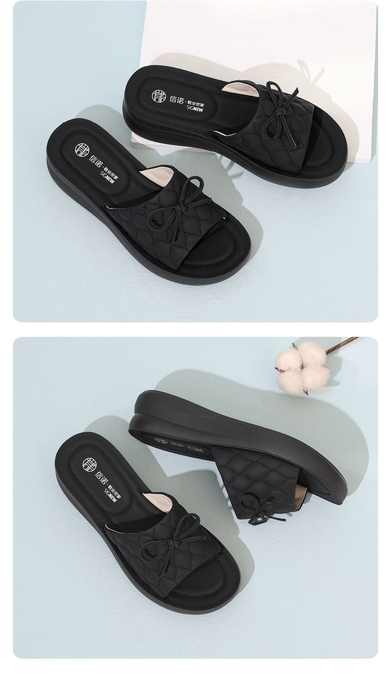 信诺 厚底舒适女鞋 2024夏季新款真皮外穿增高软底中年妈妈凉拖鞋L950-9