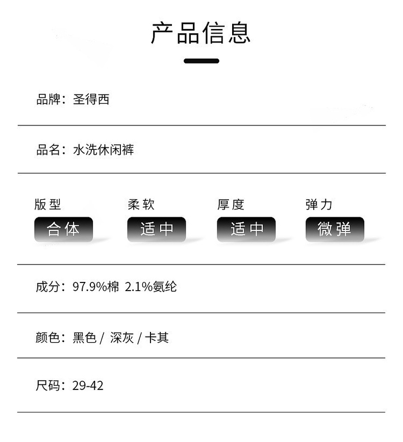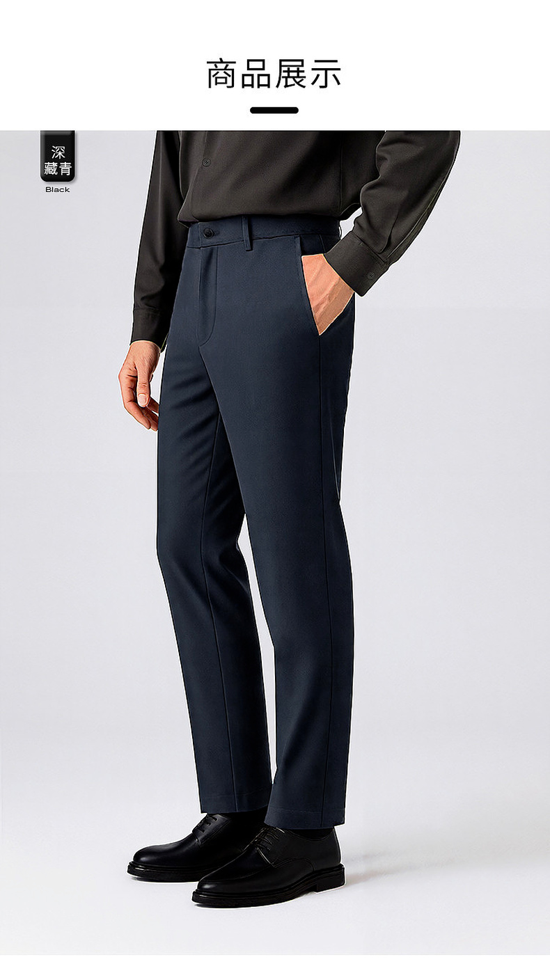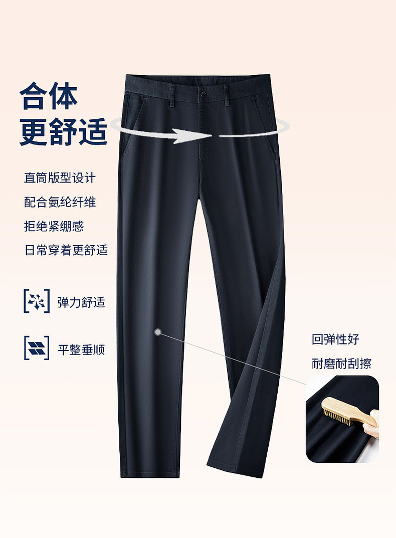 圣得西25年冬季棉感水洗休闲裤弹力修身舒适男士直筒商务休闲长裤