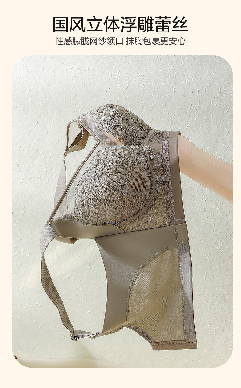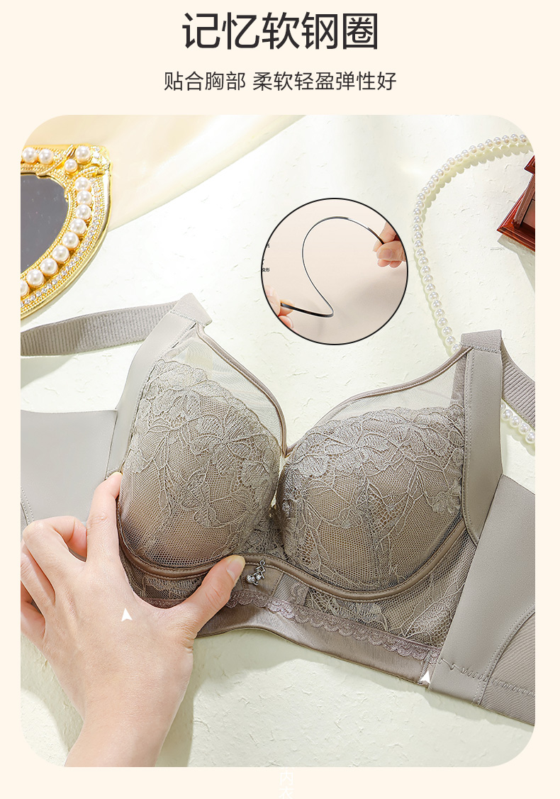 浮雕蕾丝云感棉文胸 软钢圈小胸显大AB杯上薄下厚 聚拢升级 抹胸全罩杯小胸不空杯