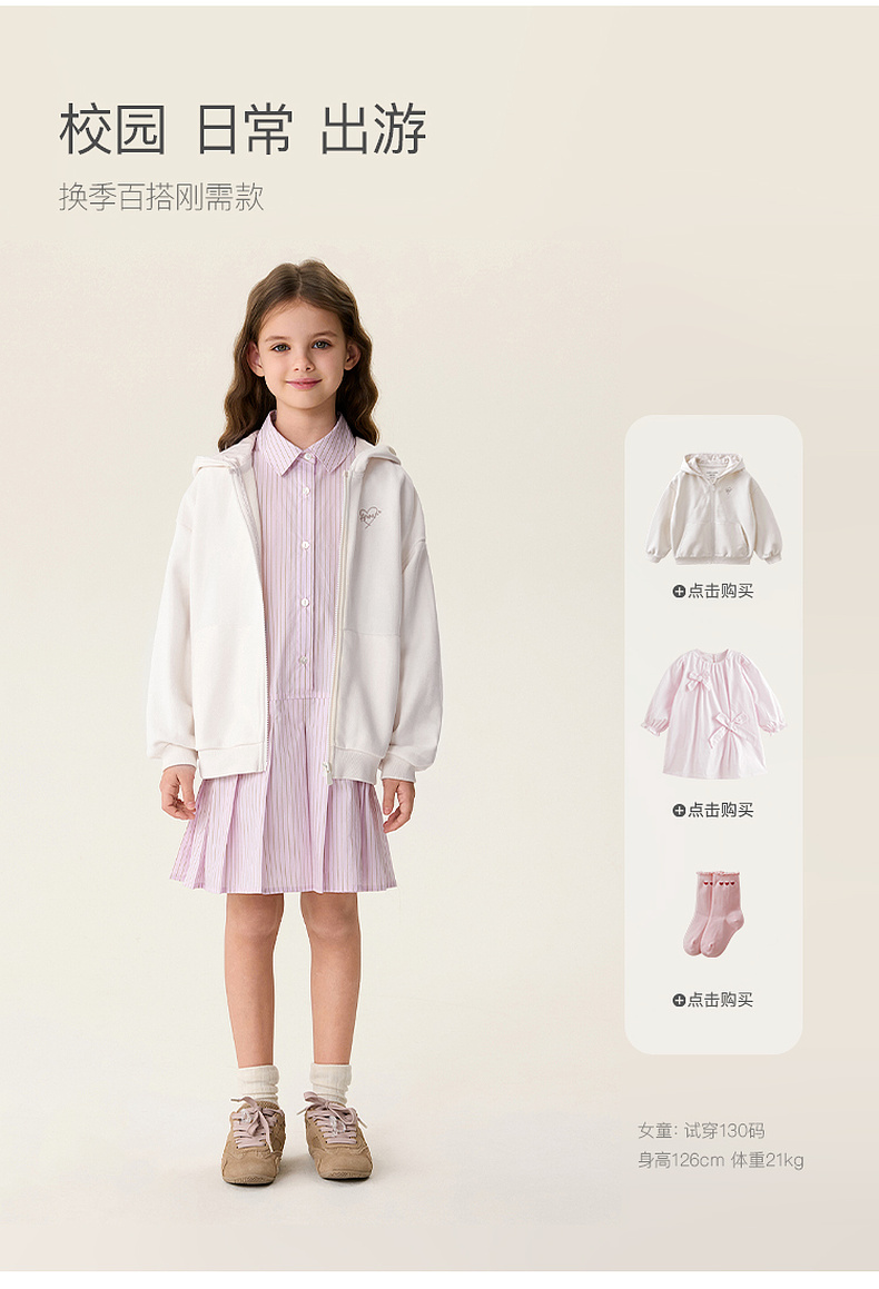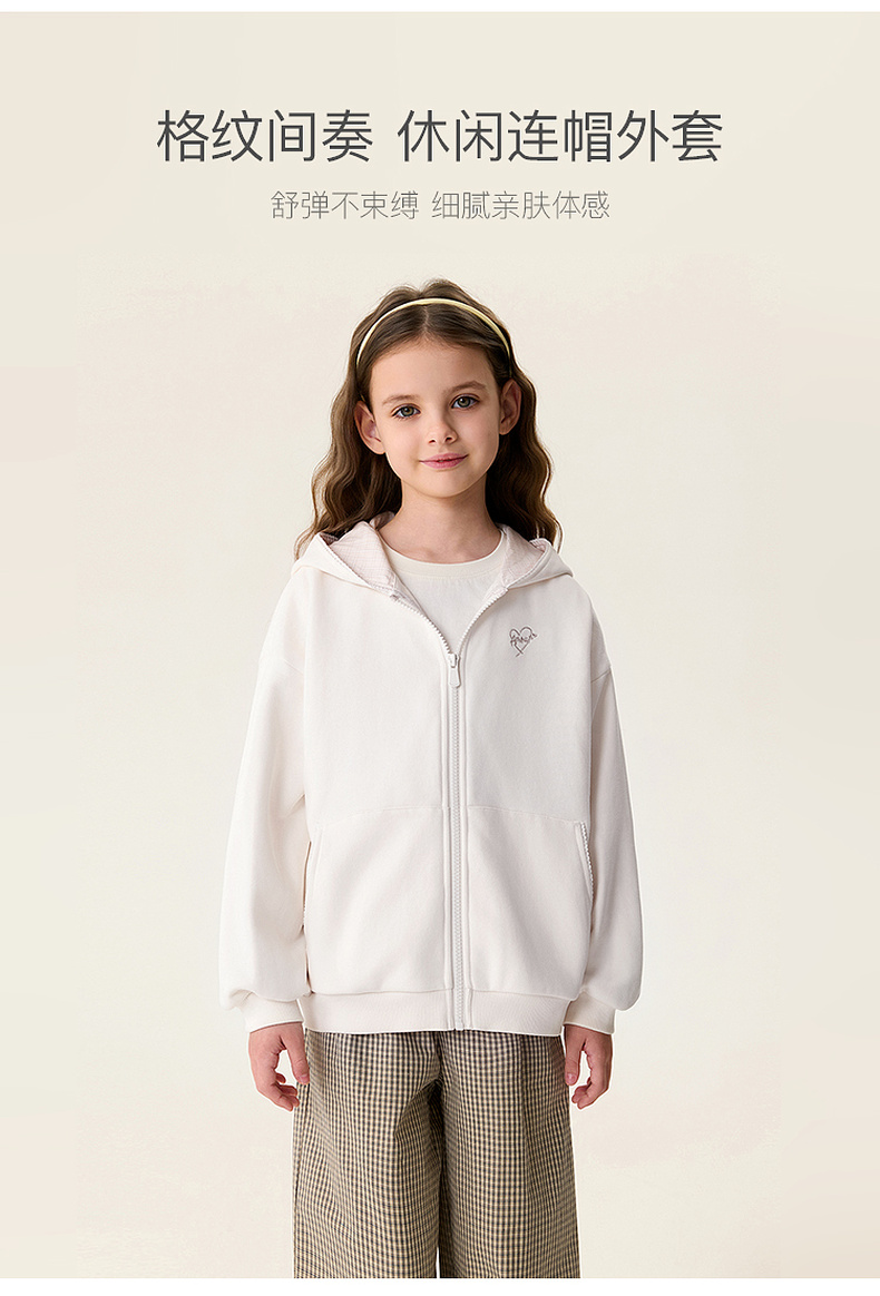 马克珍妮格纹间奏女童休闲连帽外套2026年春装新款560280