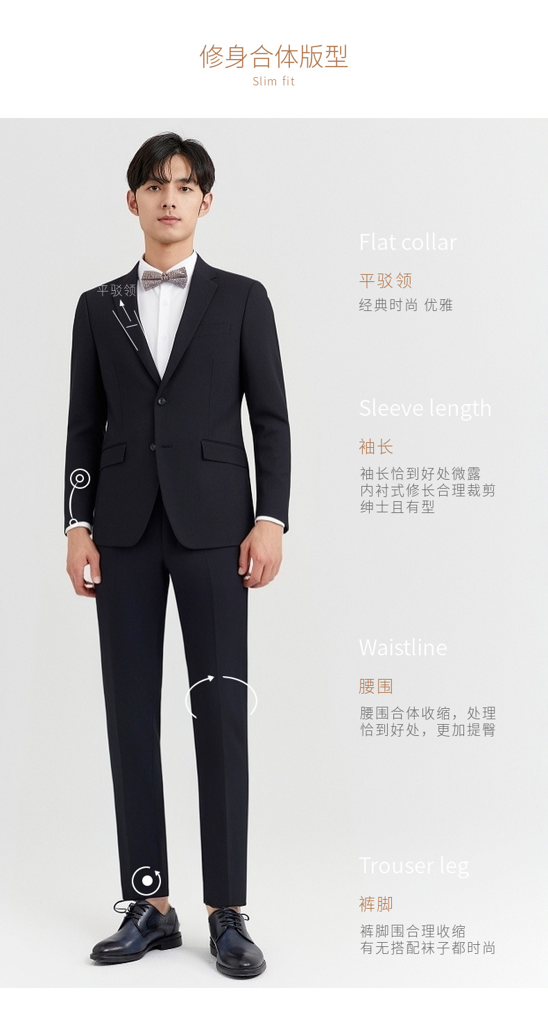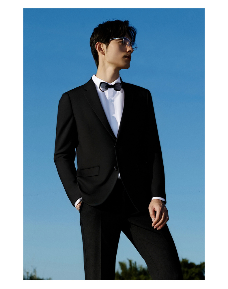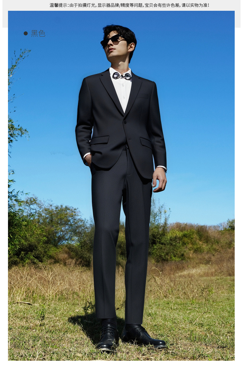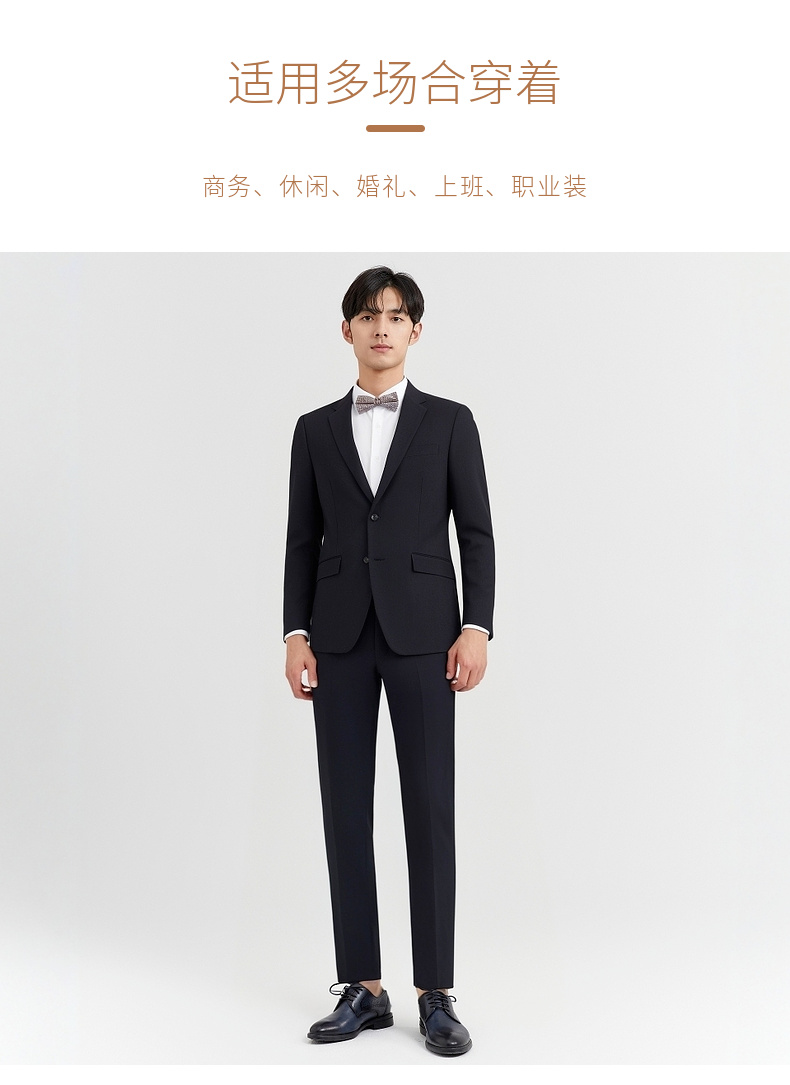 圣得西男士西服套装结婚礼服职业装正装易打理高端商务黑色西装男2512928009A