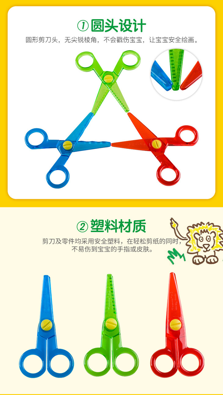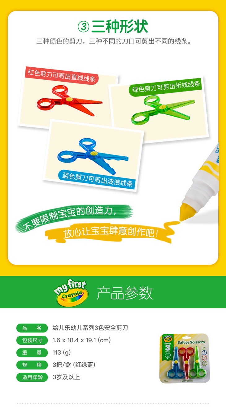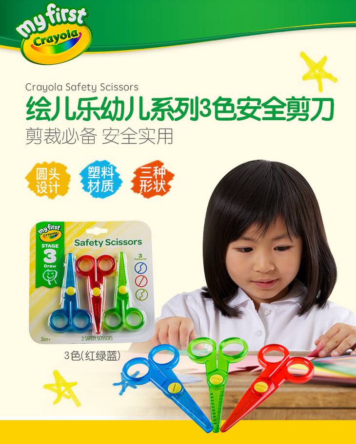 绘儿乐 Crayola 幼儿系列圆头安全剪刀3件装 CYLC81-1458 适用年龄3Y-6Y
