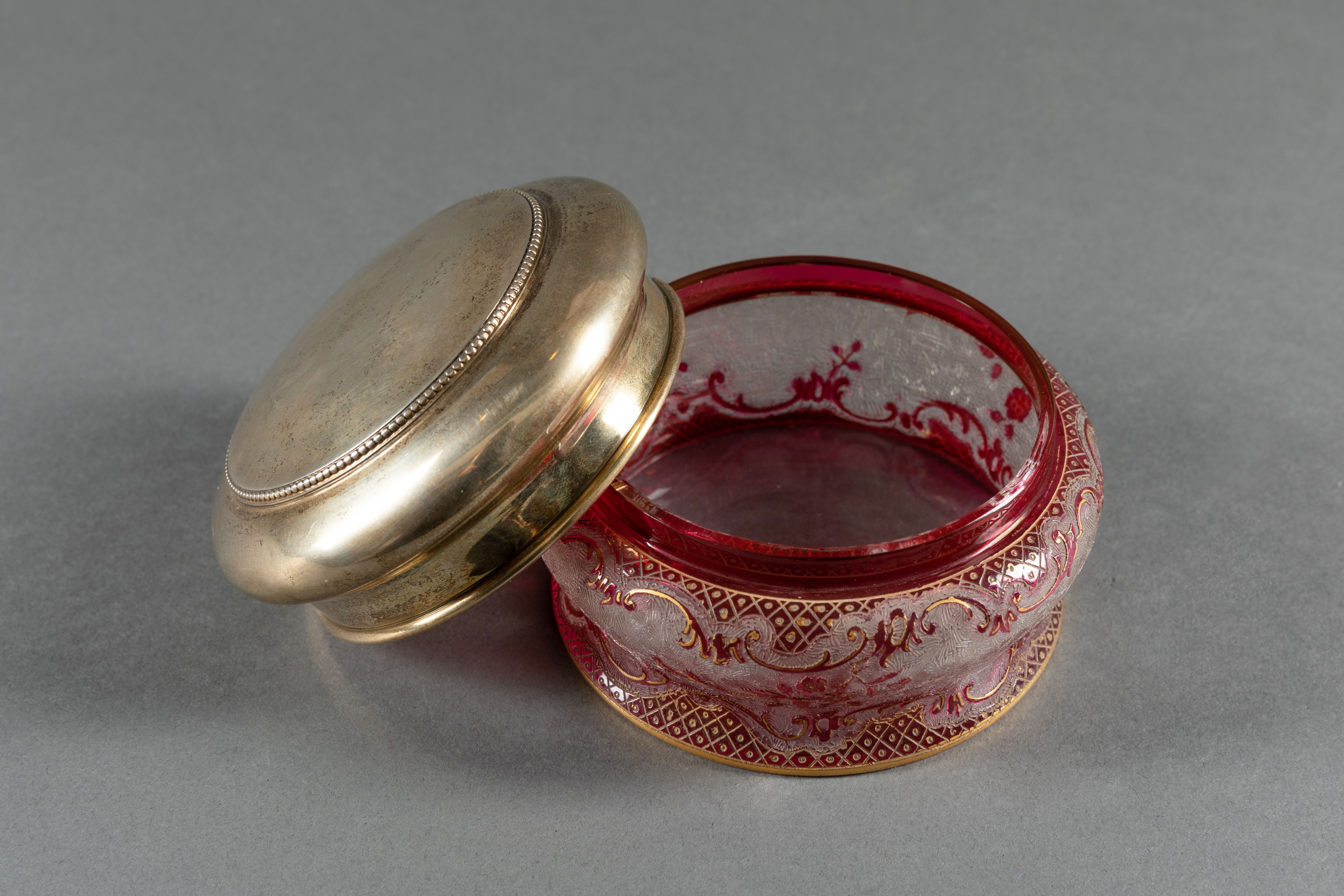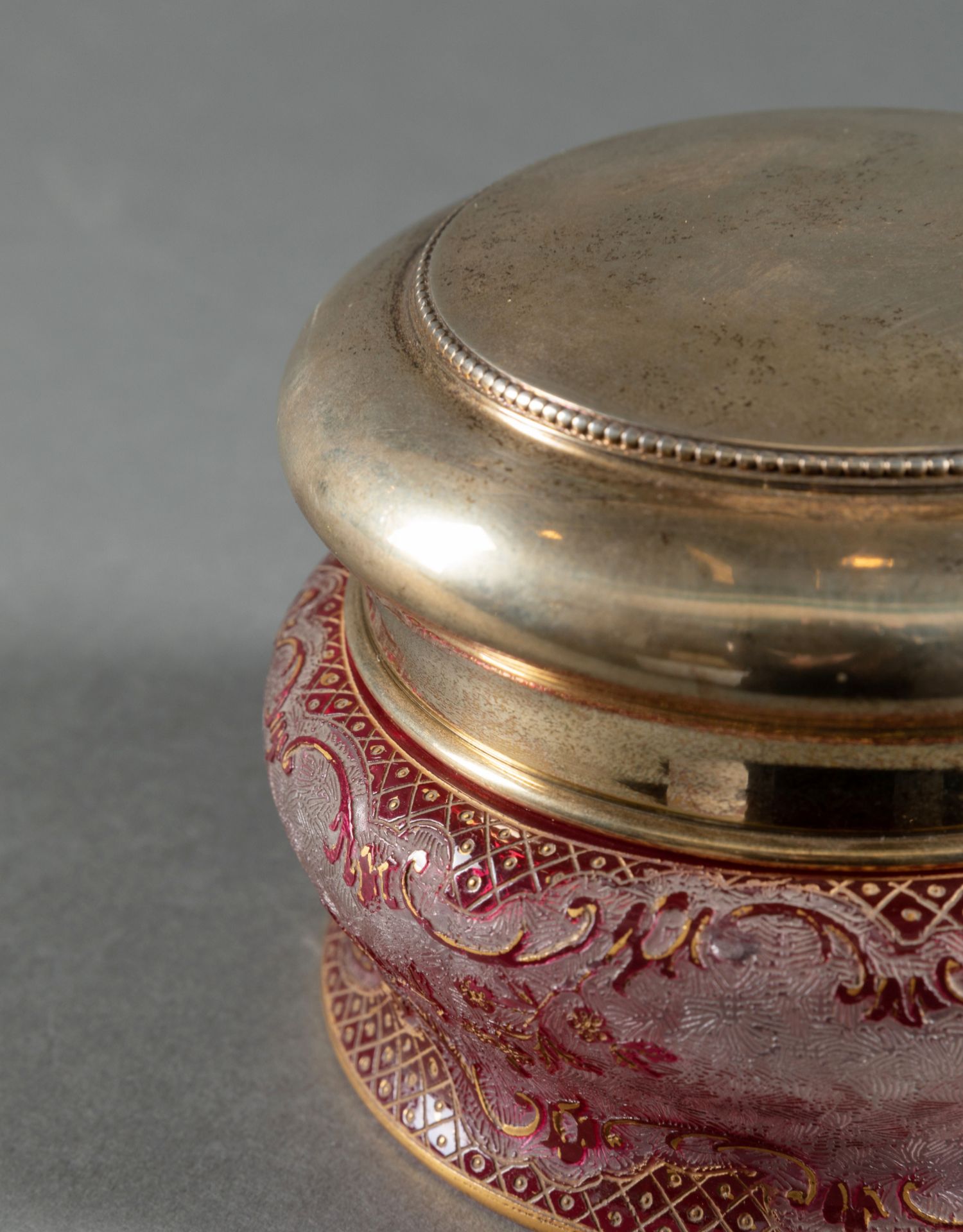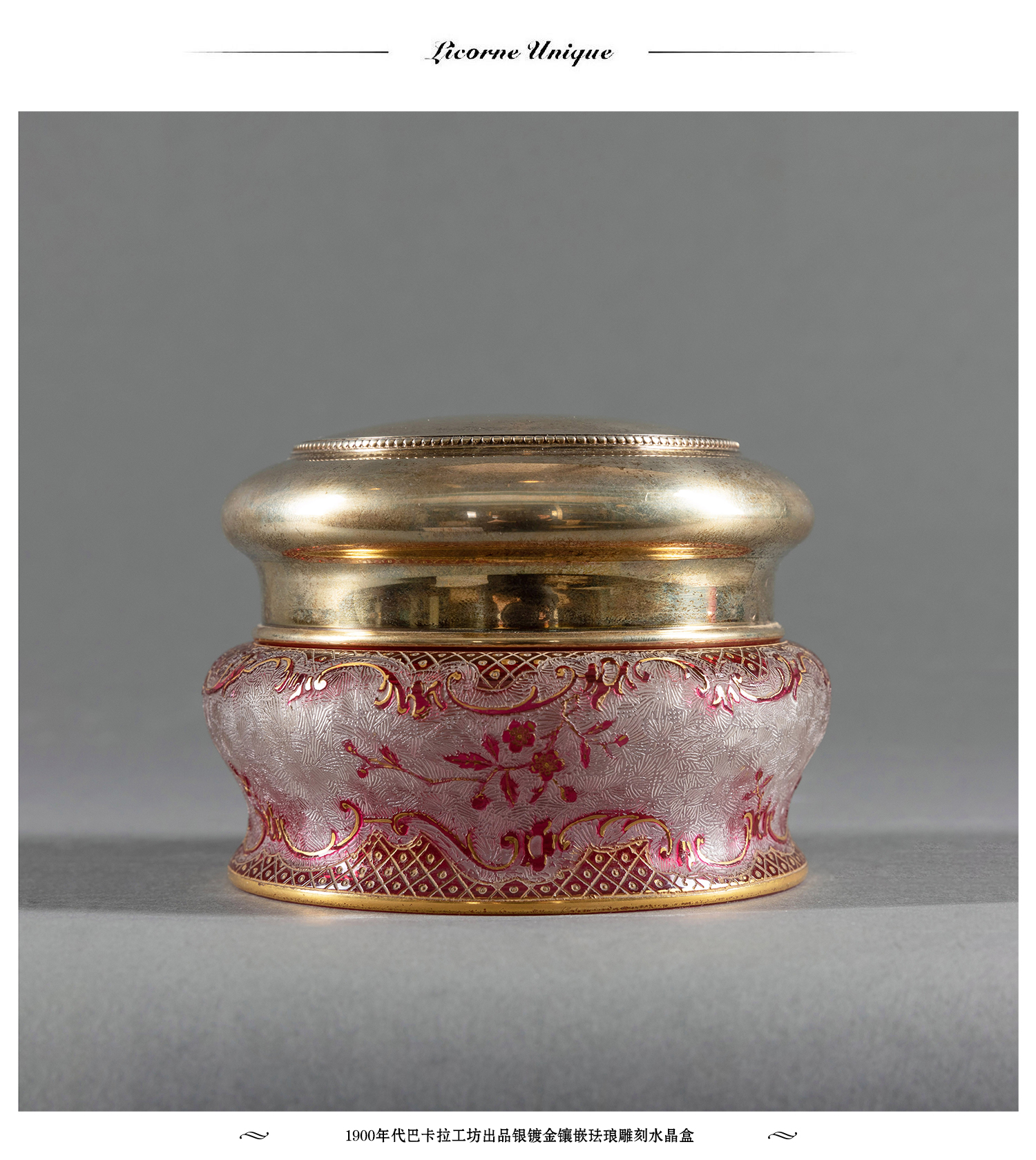 独角鹿西洋古董1900年代巴卡拉工坊出品银镀金镶嵌珐琅雕刻水晶盒