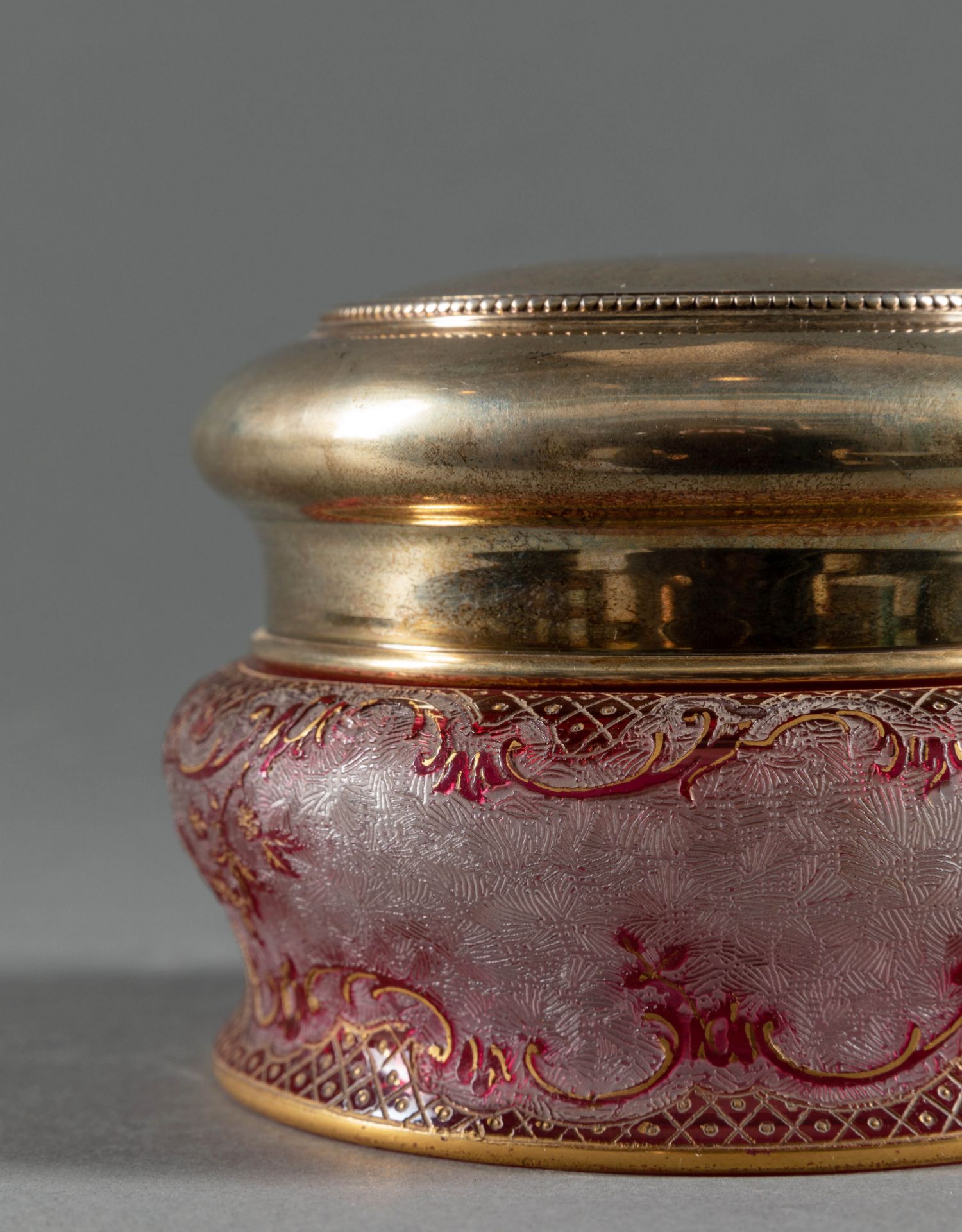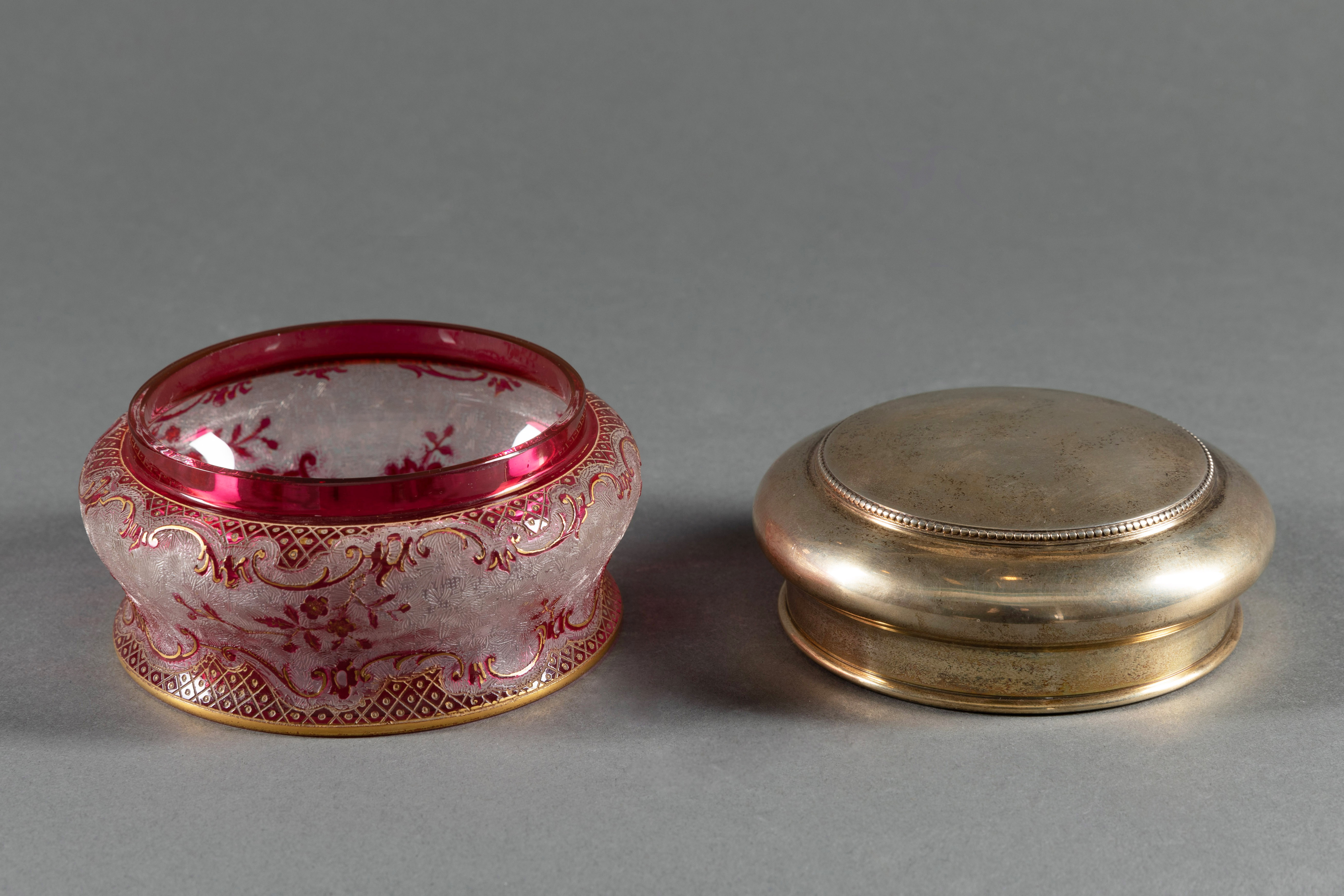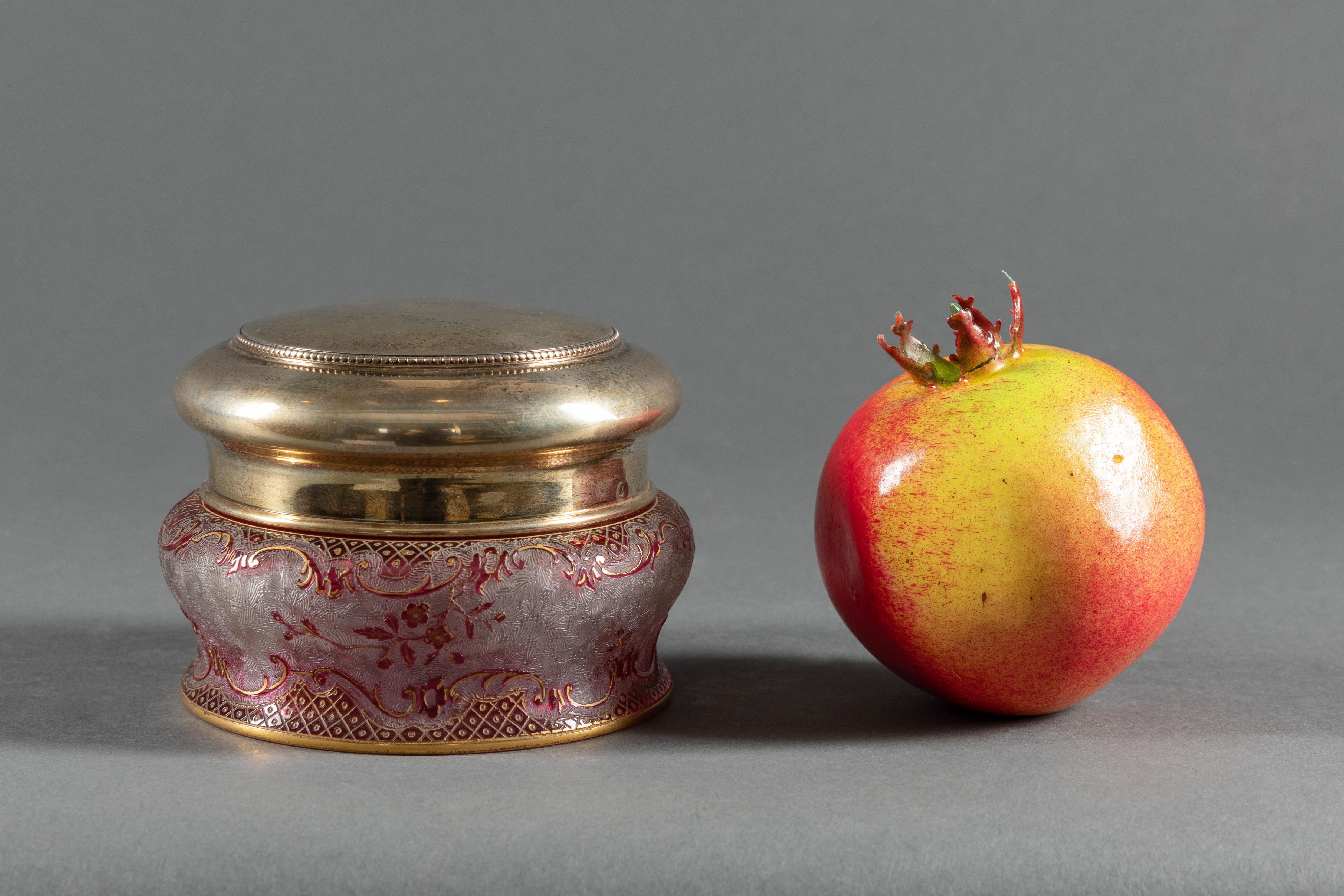 独角鹿西洋古董1900年代巴卡拉工坊出品银镀金镶嵌珐琅雕刻水晶盒