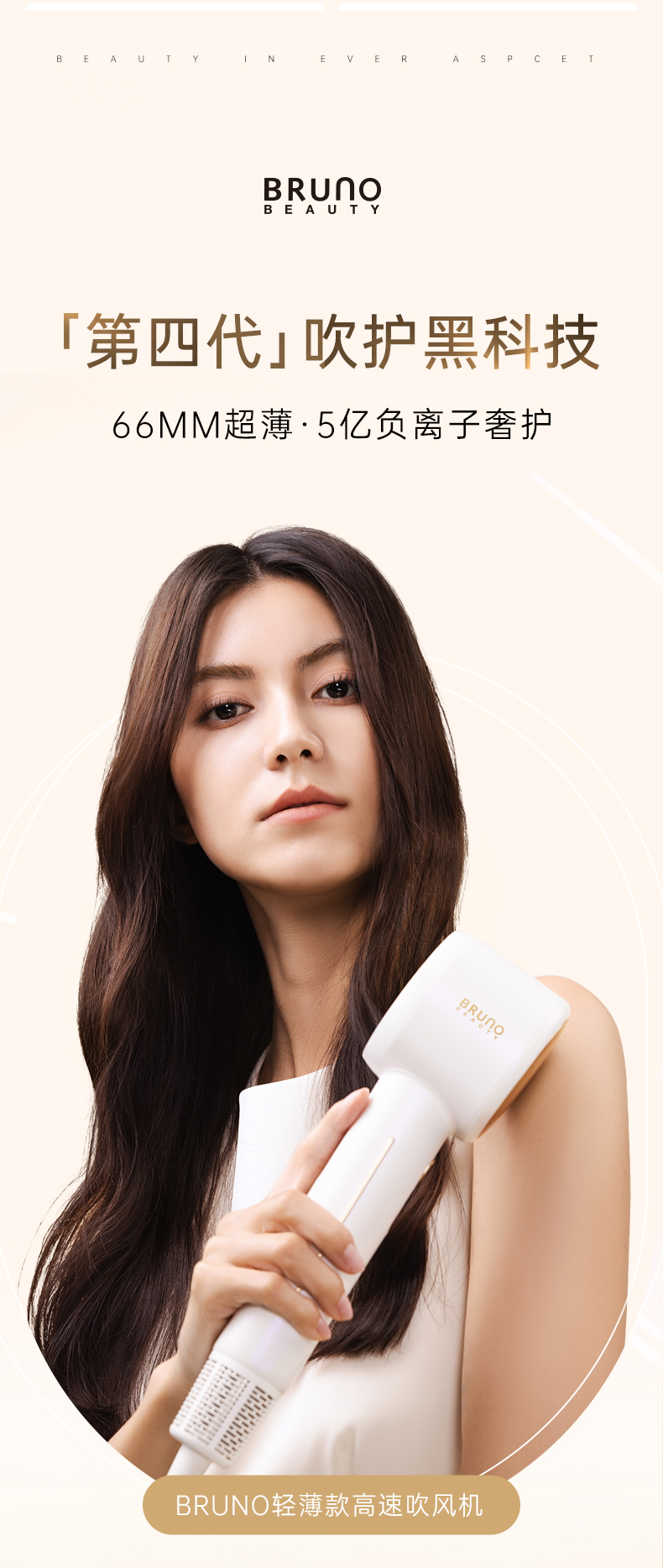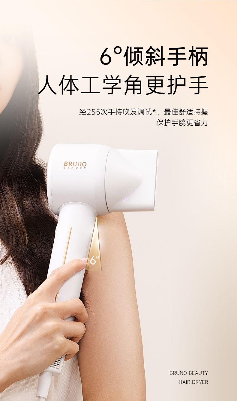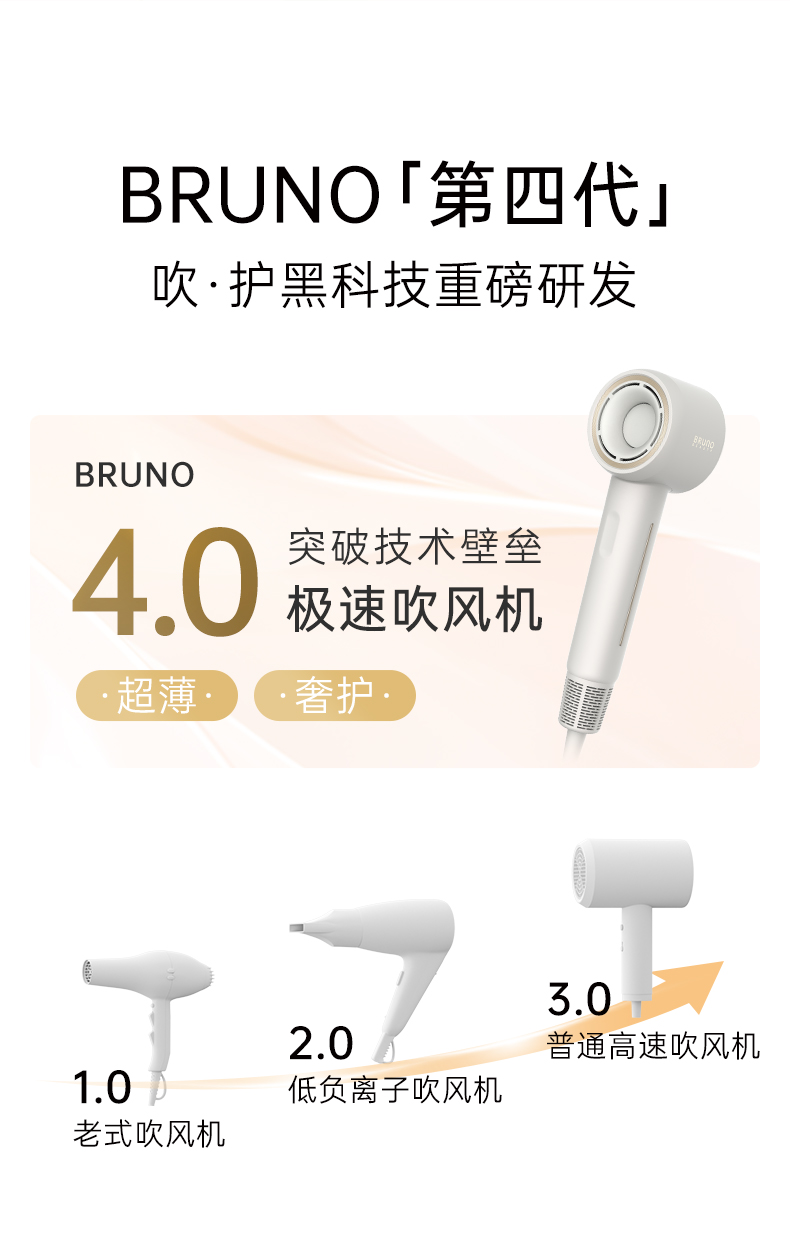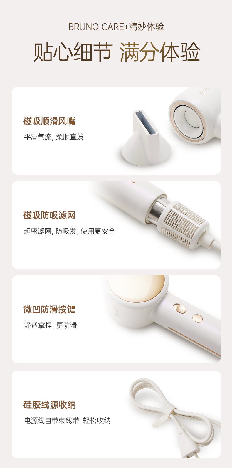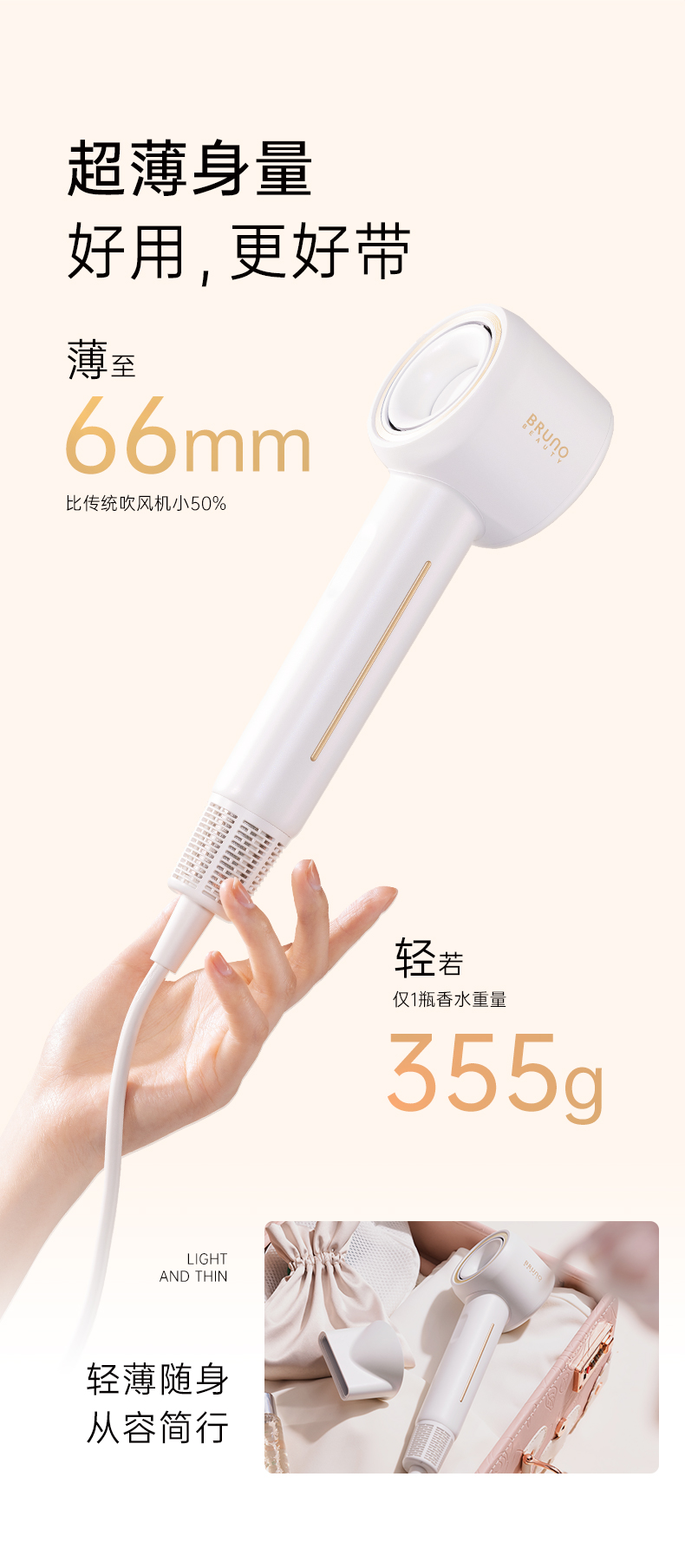 【第四代吹风机】 BRUNO轻薄高速吹风机BY-CFJ01-WH 超薄至66mm 5亿级负离子 仅355g 快速干发 轻声不扰人 冷风/温风/热风/冷热循环风 含磁吸顺滑风嘴