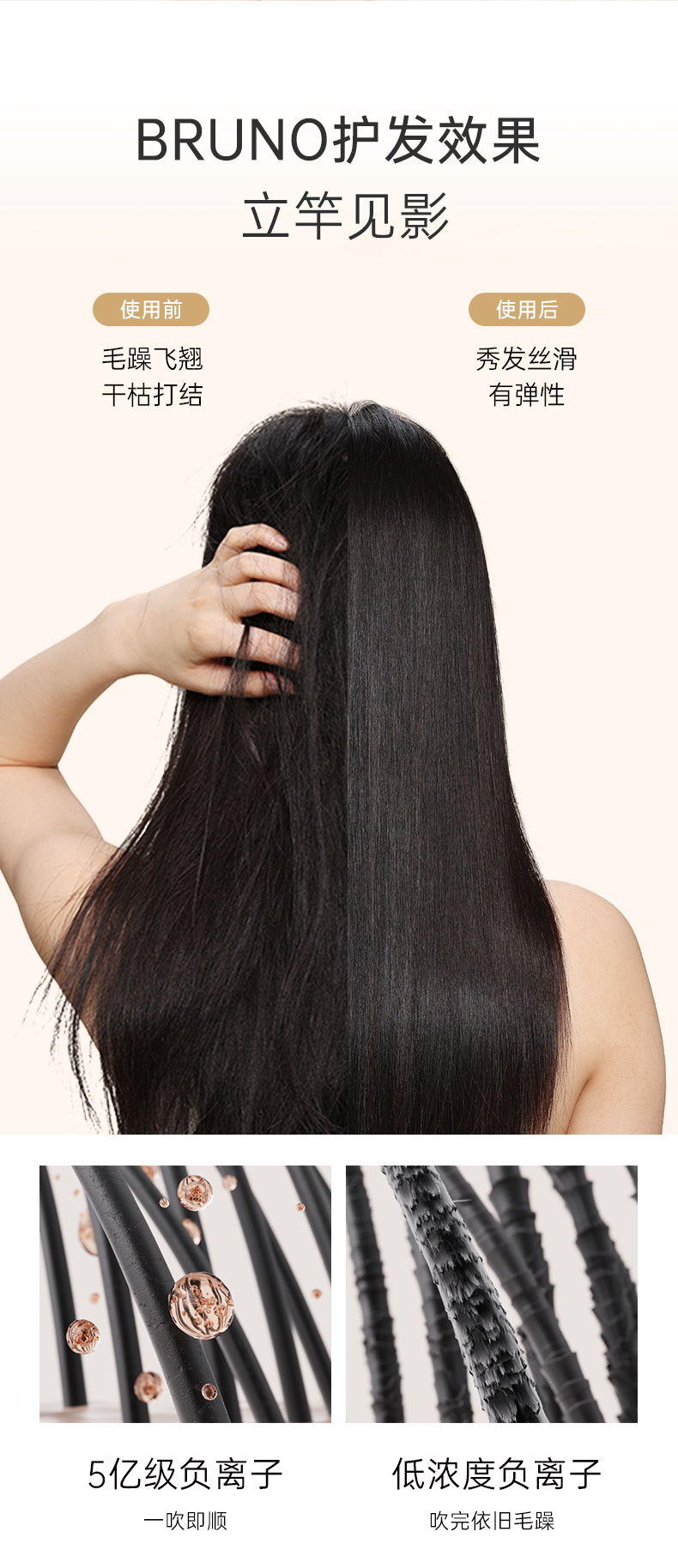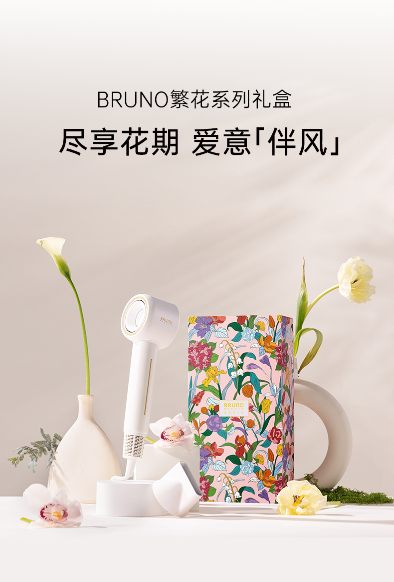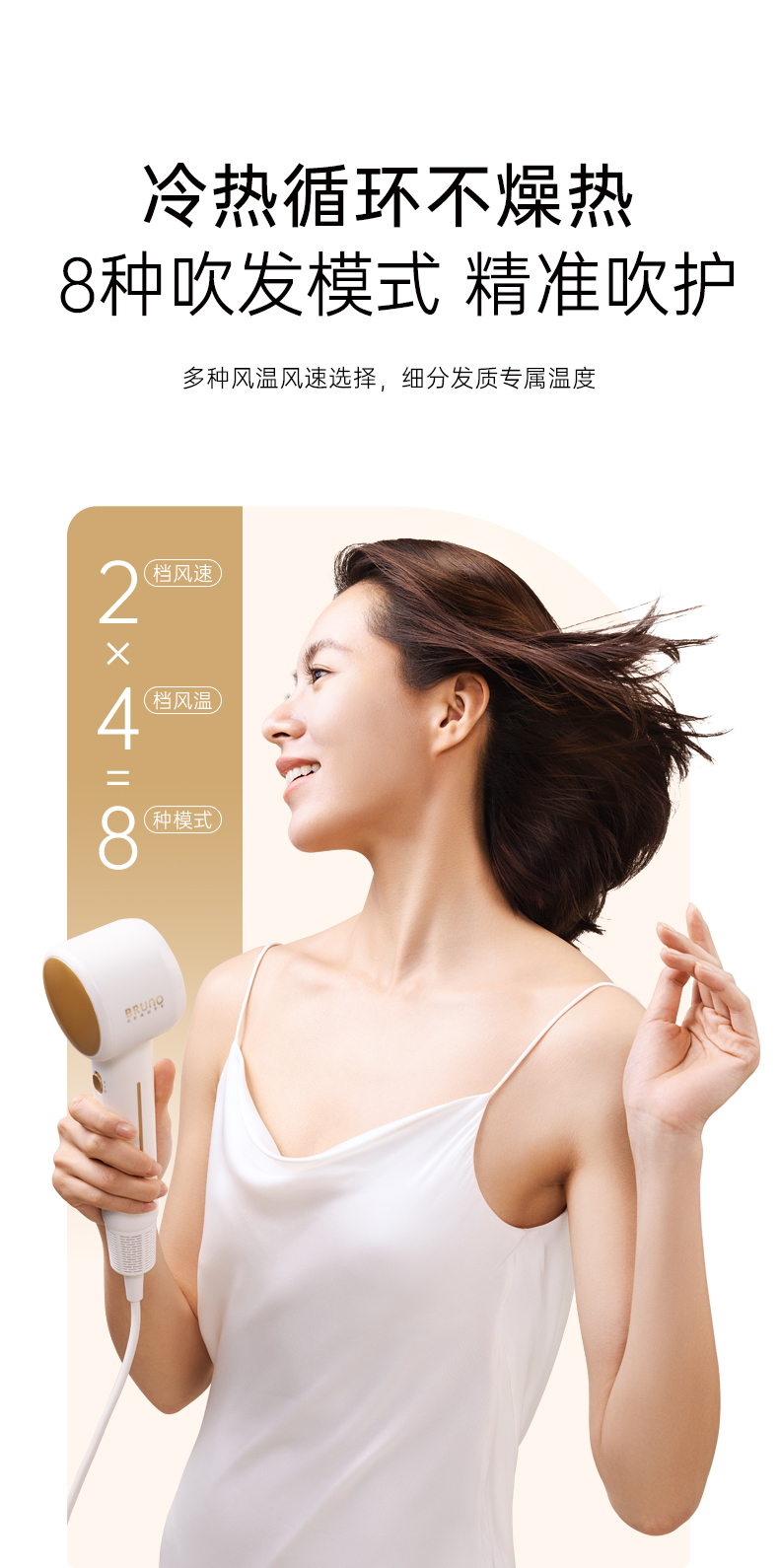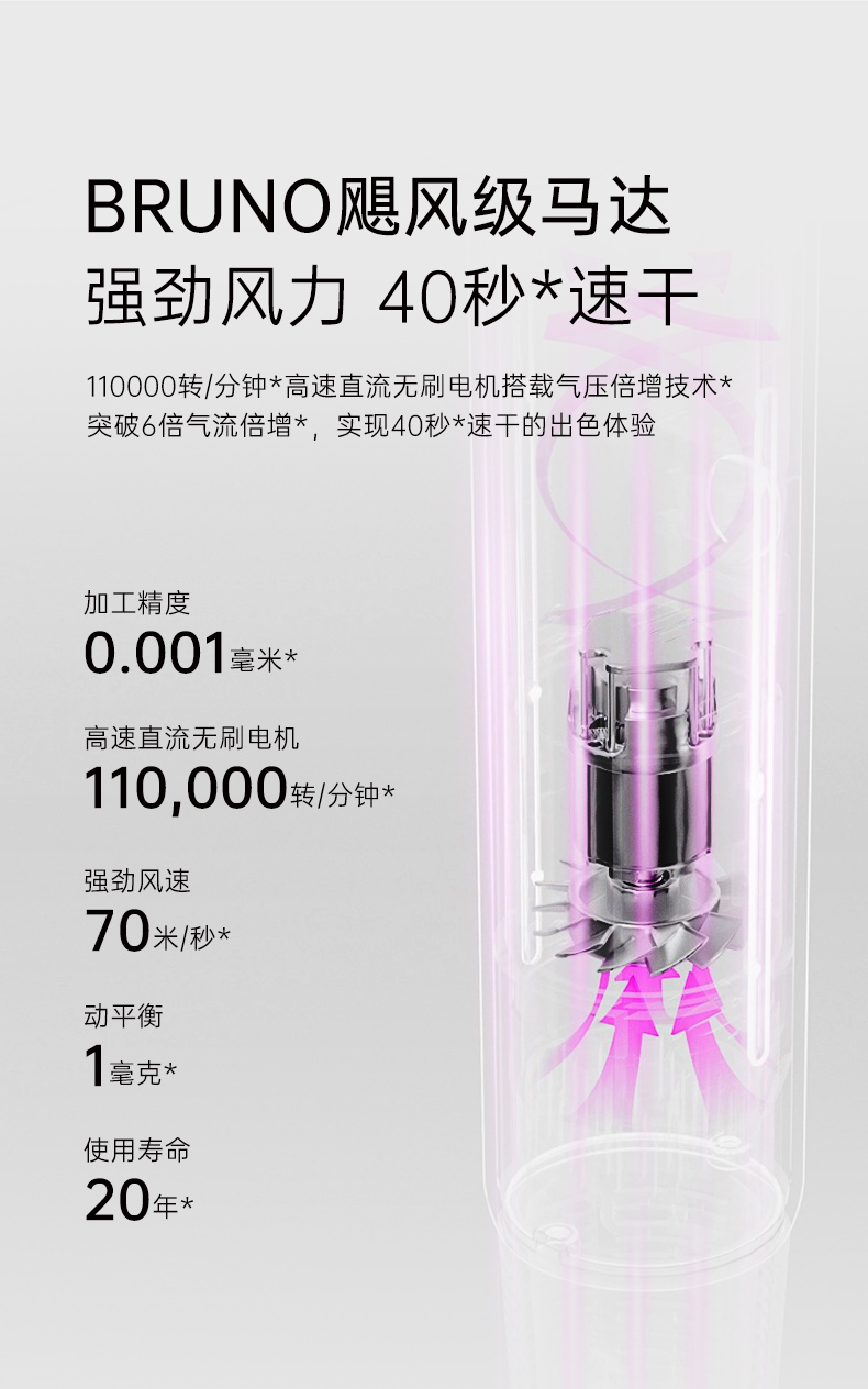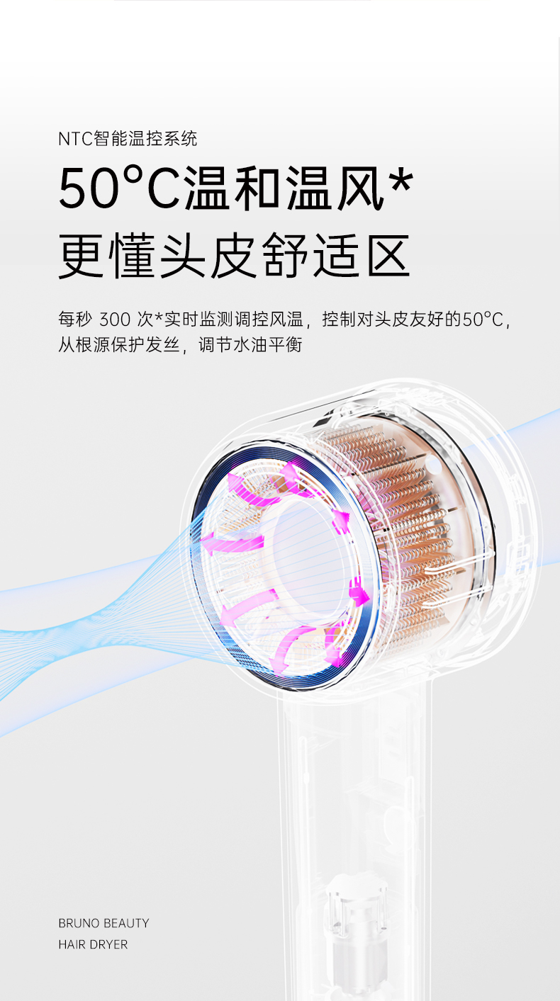 【第四代吹风机】 BRUNO轻薄高速吹风机BY-CFJ01-WH 超薄至66mm 5亿级负离子 仅355g 快速干发 轻声不扰人 冷风/温风/热风/冷热循环风 含磁吸顺滑风嘴