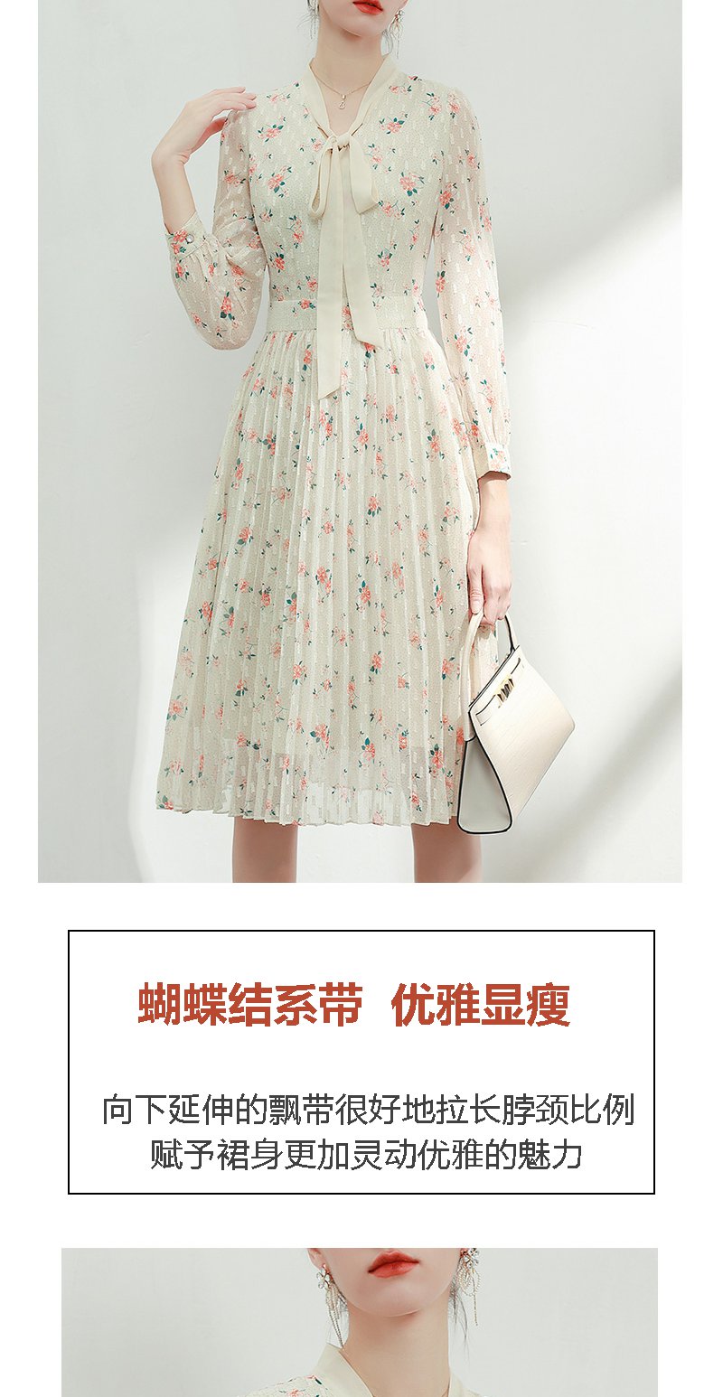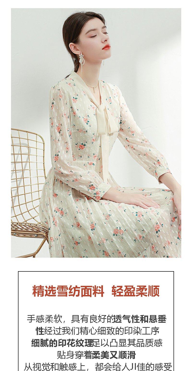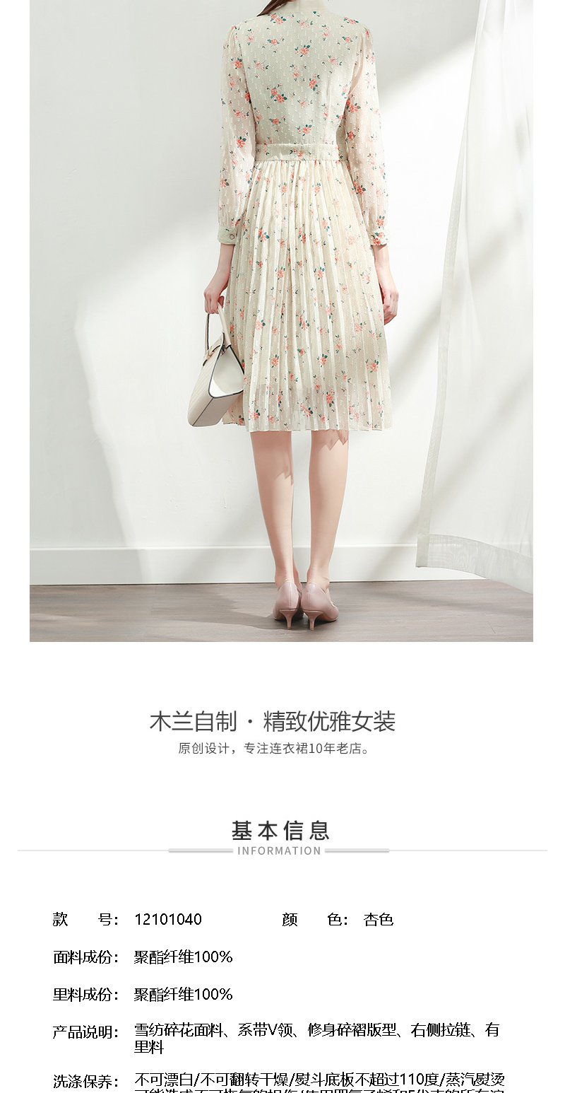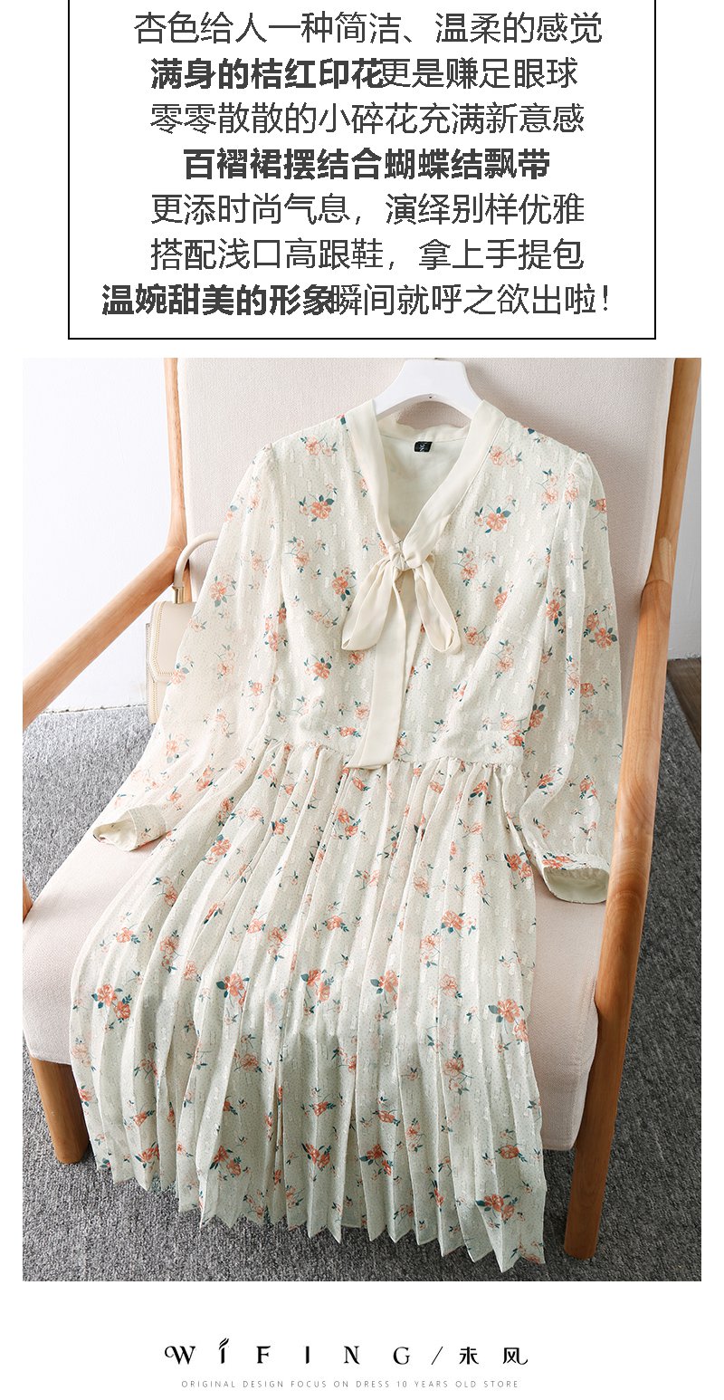 未风杏色雪纺碎花连衣裙女初春2024春季新款气质淑女减龄长袖裙子