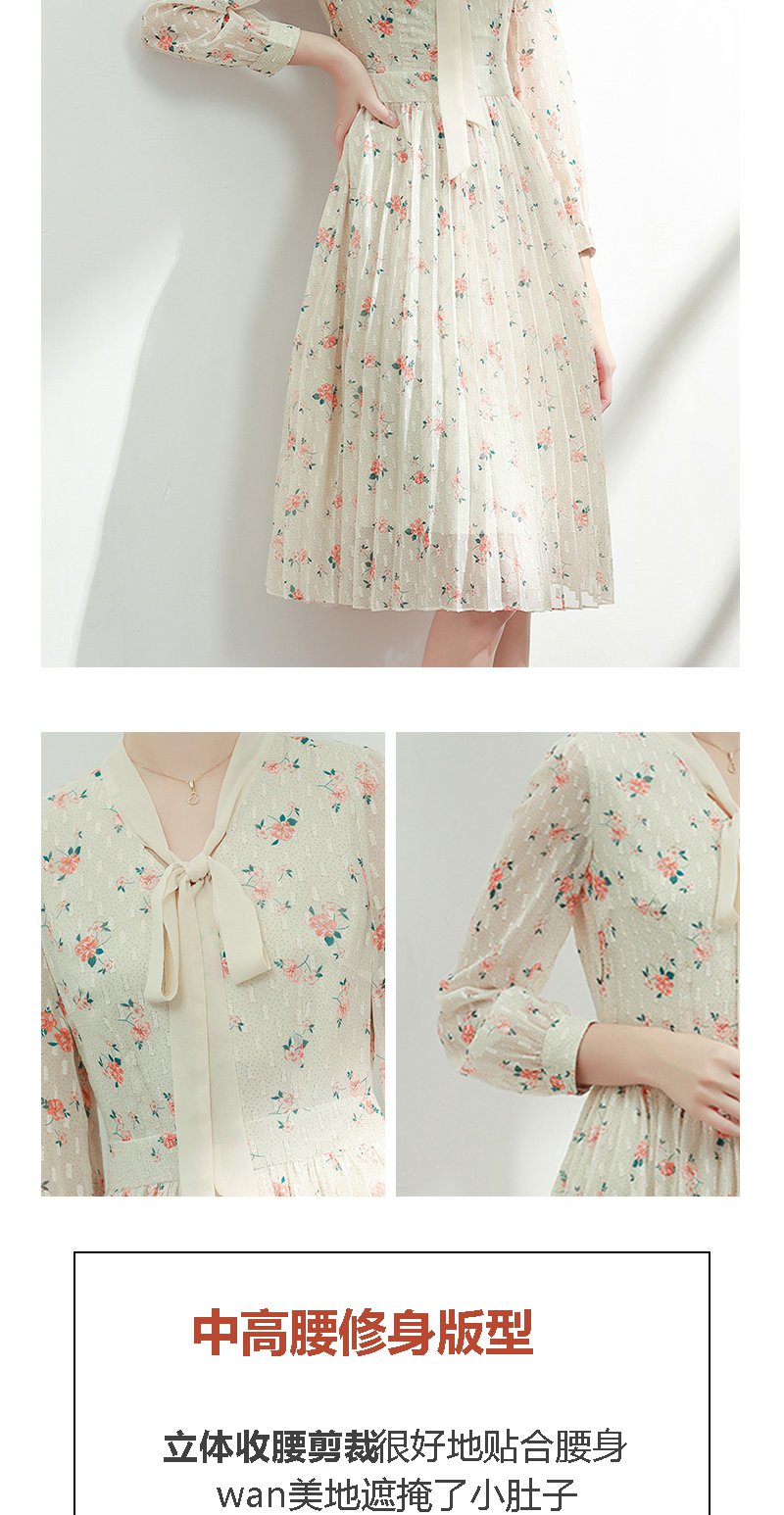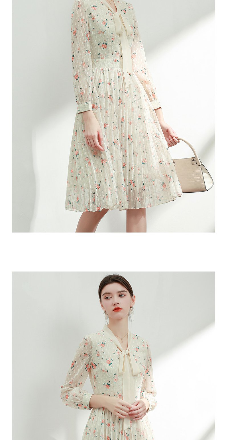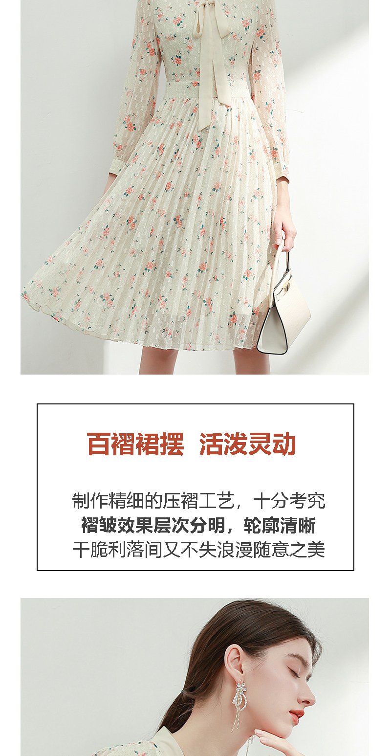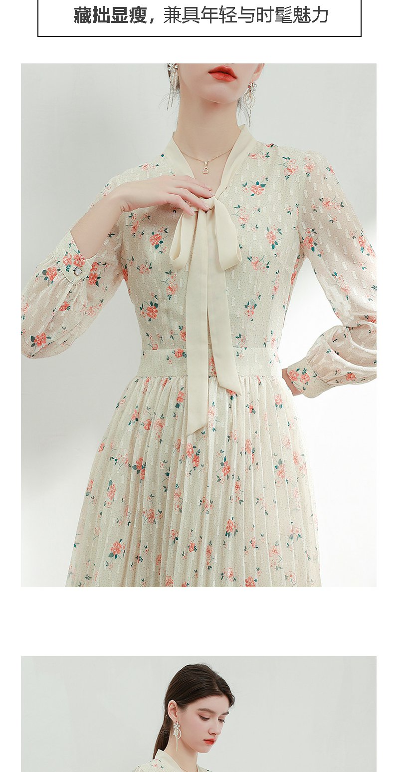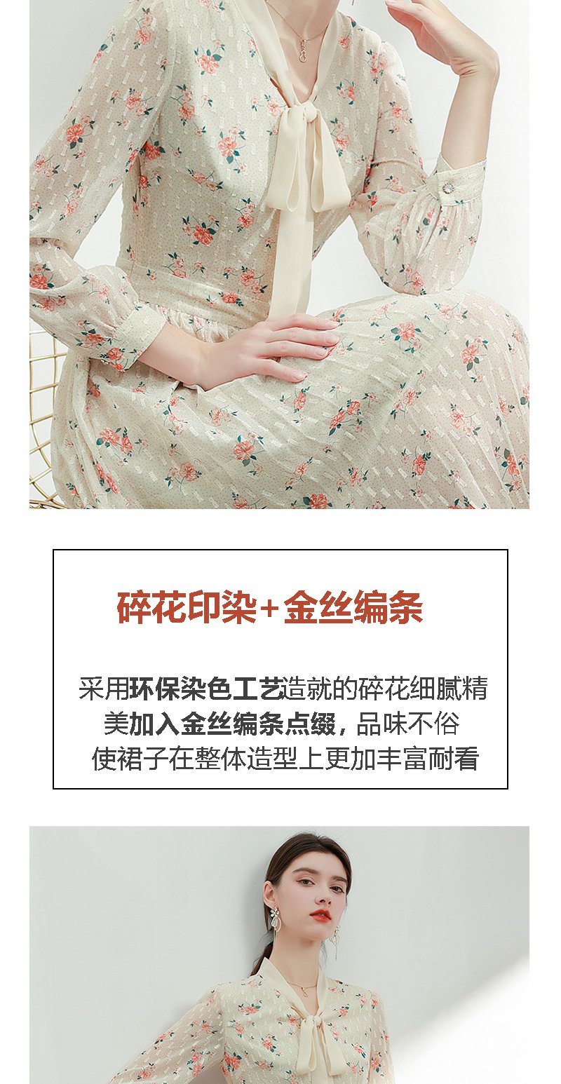 未风杏色雪纺碎花连衣裙女初春2024春季新款气质淑女减龄长袖裙子