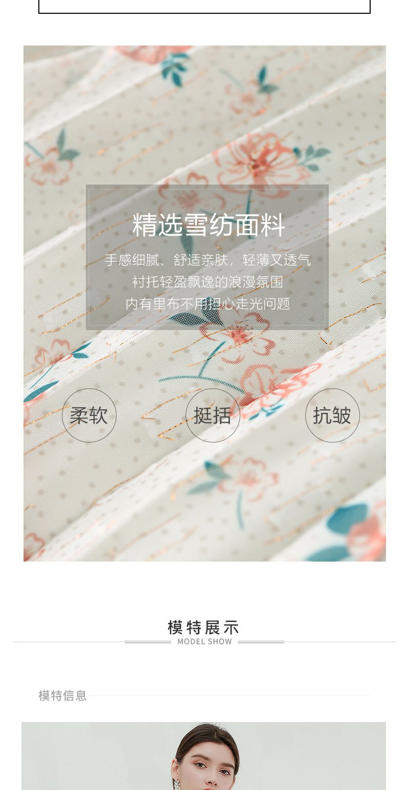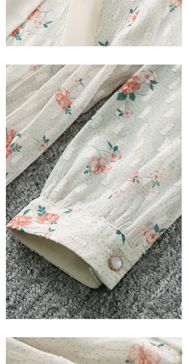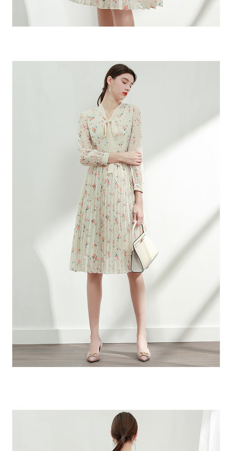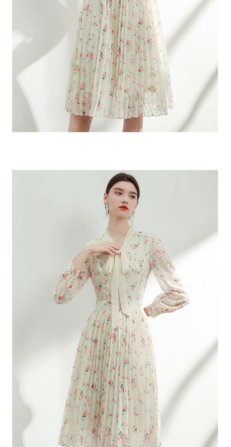 未风杏色雪纺碎花连衣裙女初春2024春季新款气质淑女减龄长袖裙子