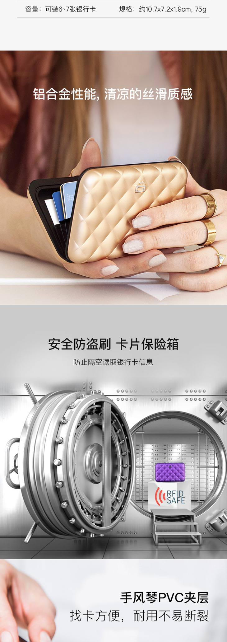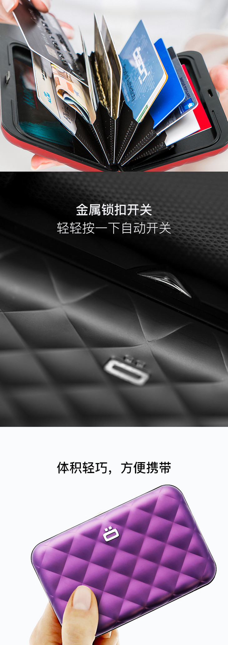 OGON菱格卡盒卡包RFID防盗防扫描法国时尚金属钱包