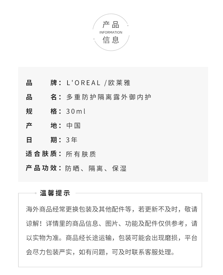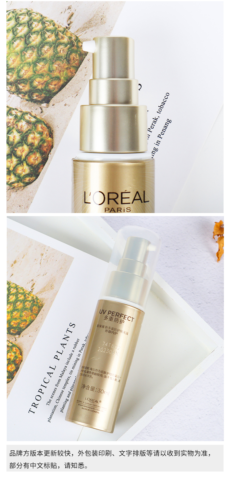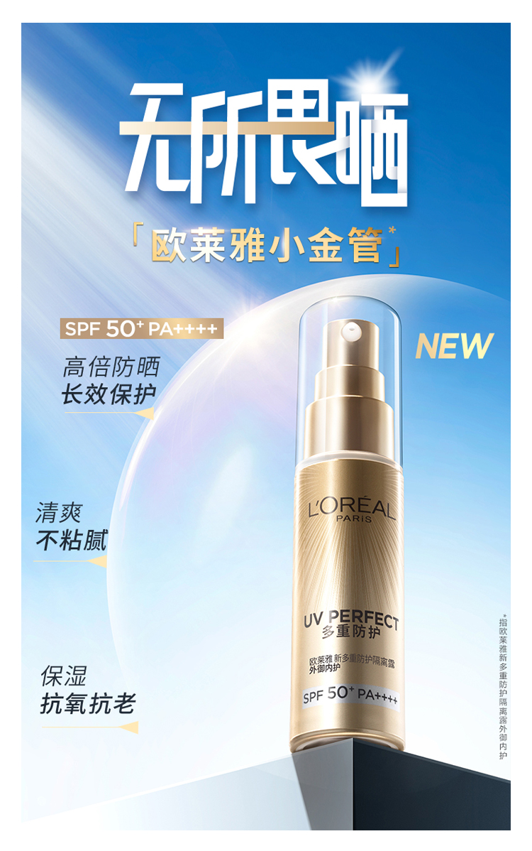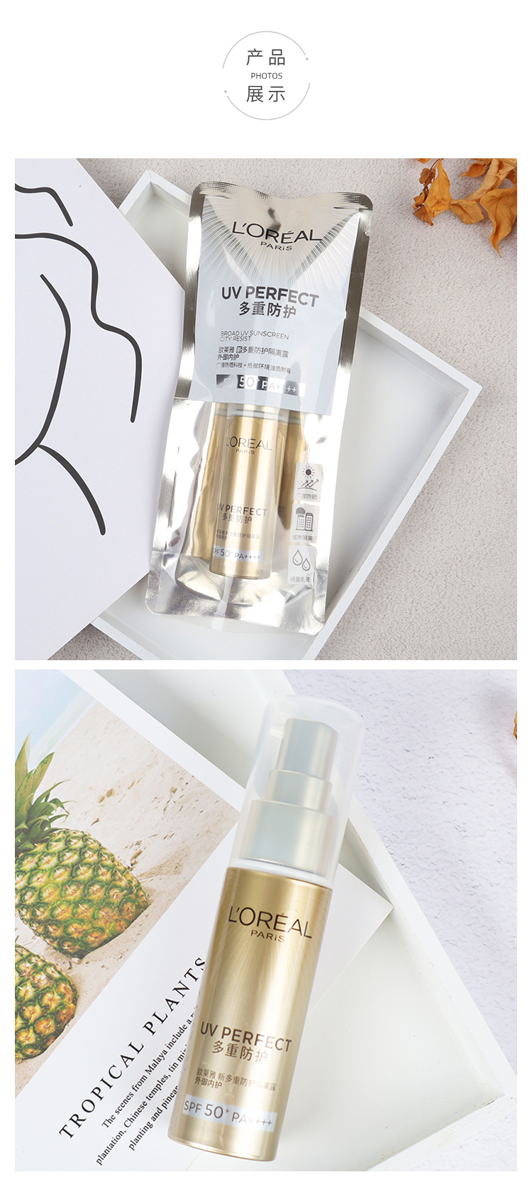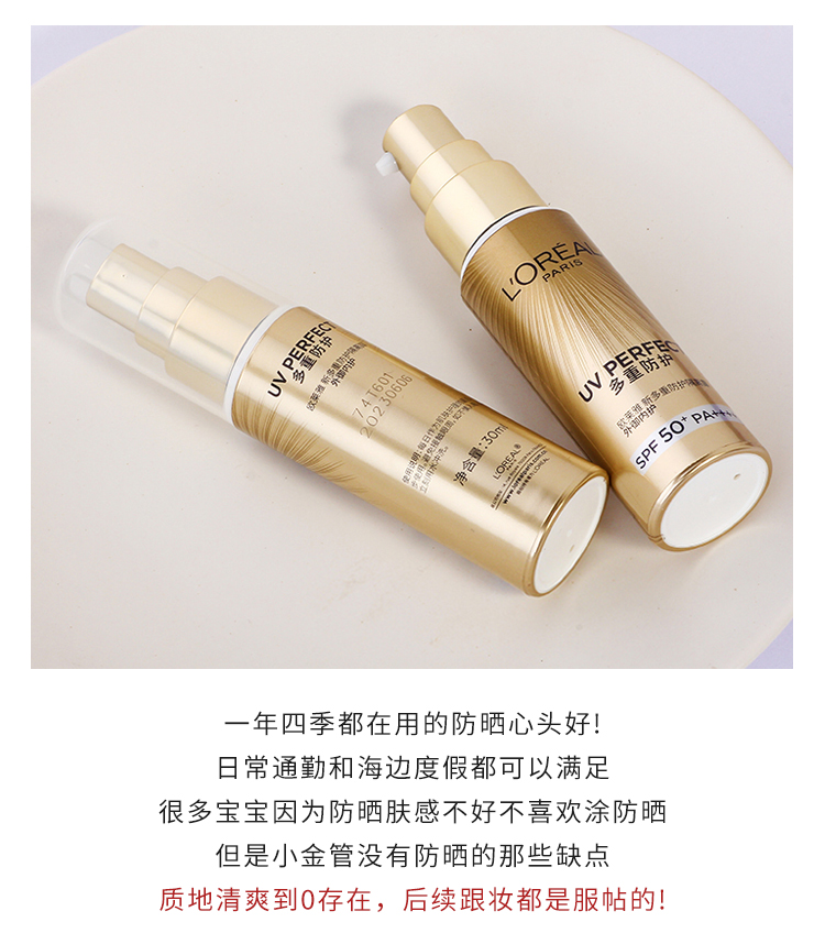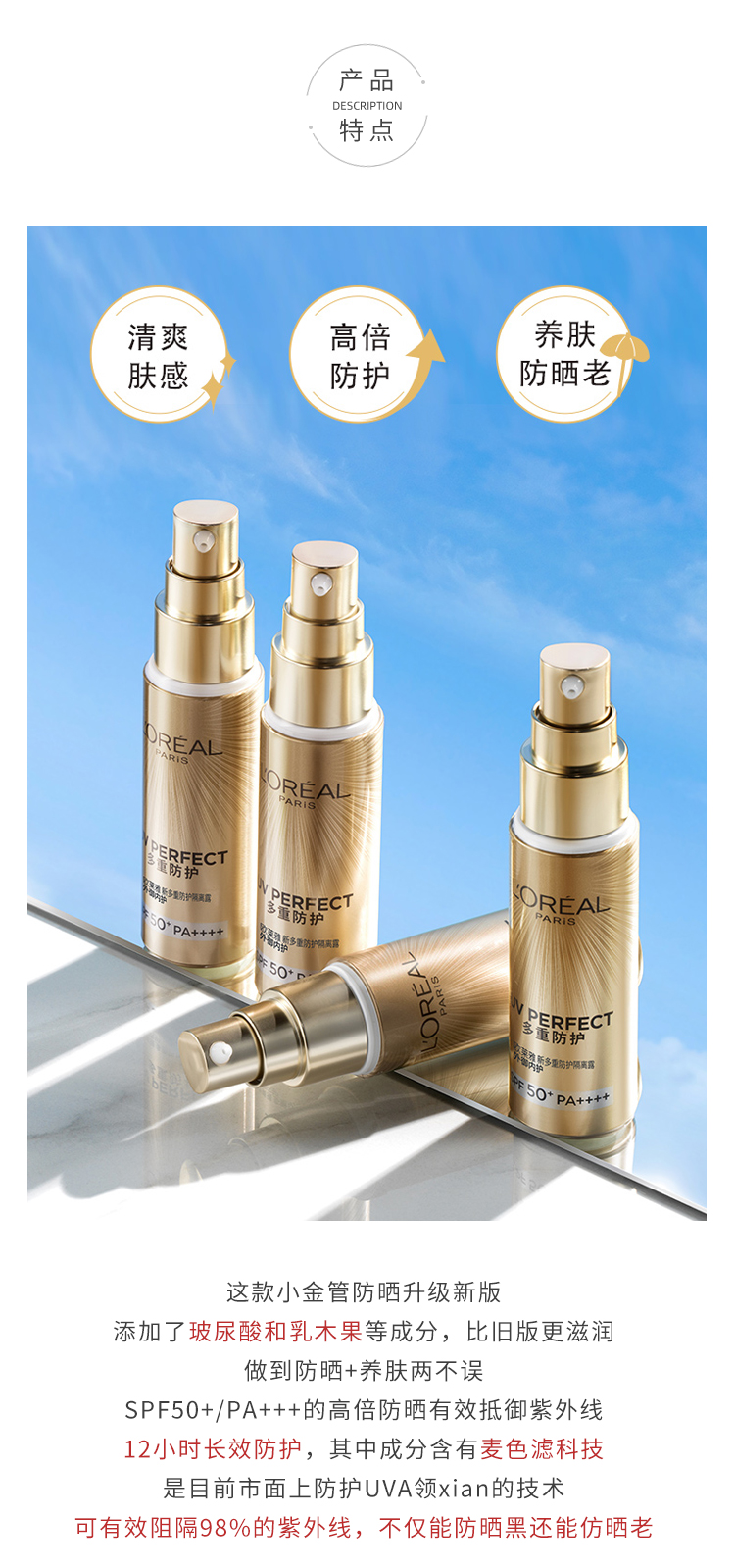 欧莱雅小金管清爽面部防晒霜轻薄隔离防晒霜SPF50+30ml