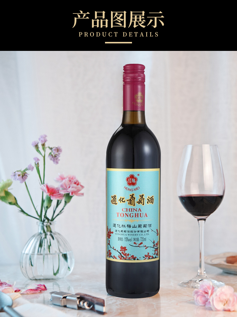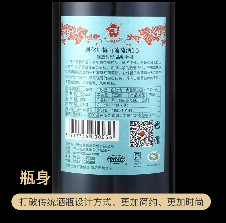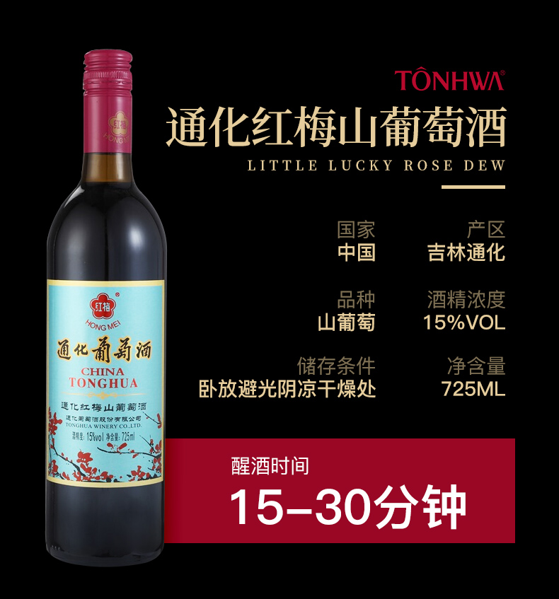 通化 红梅 山葡萄甜红葡萄酒 725ml单瓶装 甜酒 红酒 长白山山葡萄酒 吉林通化产区