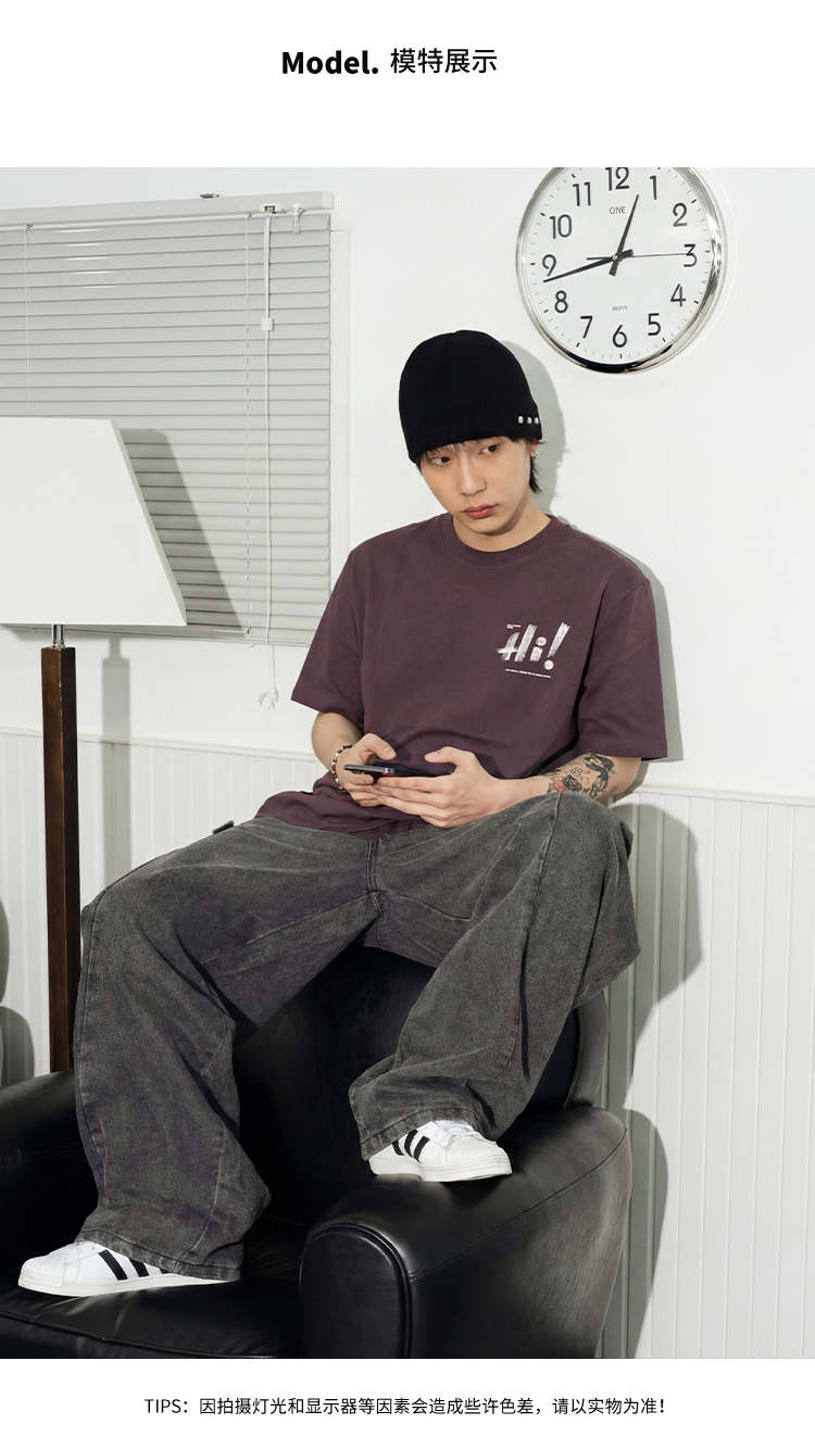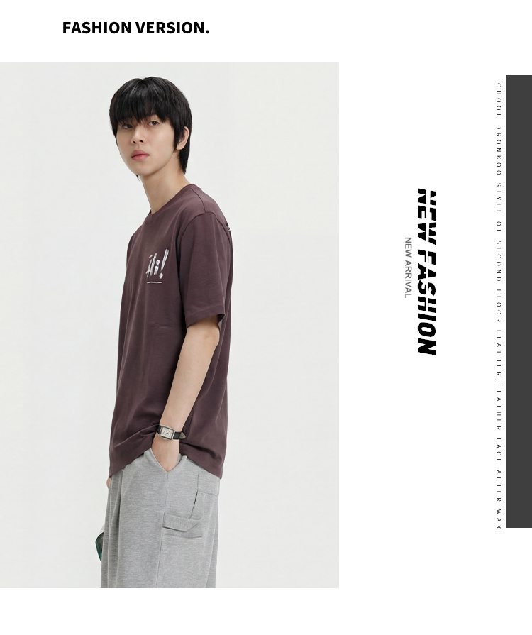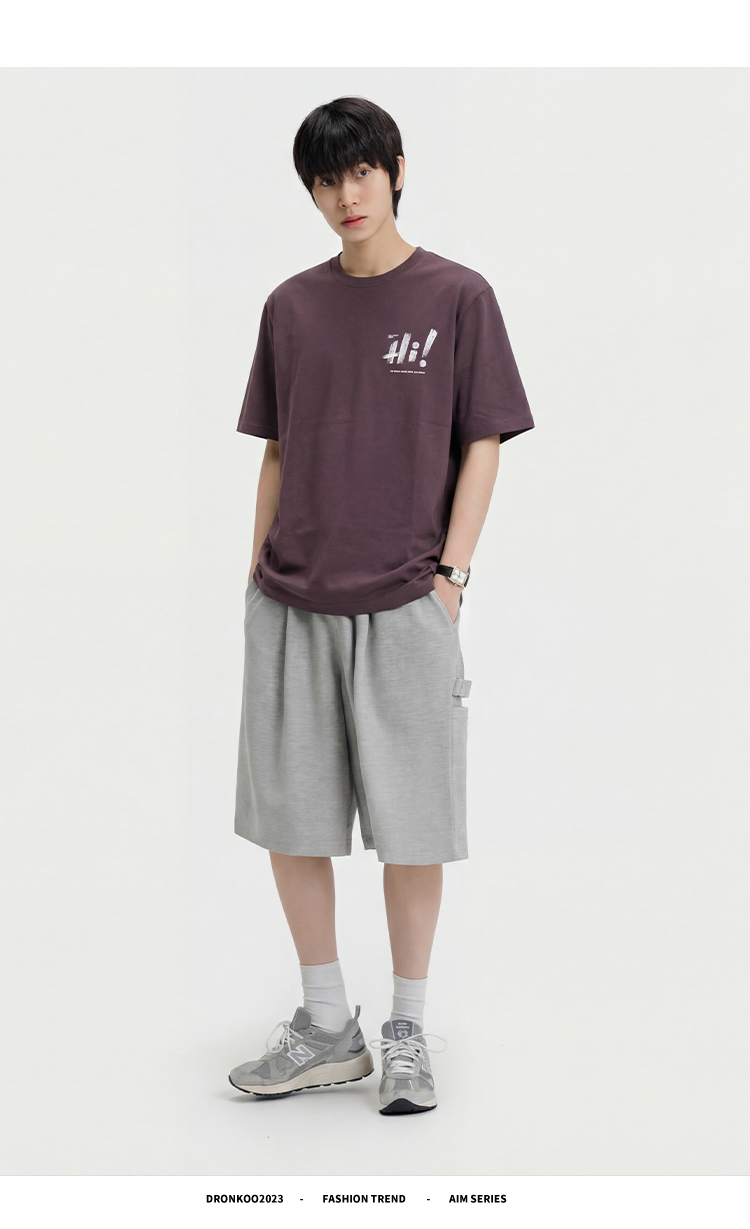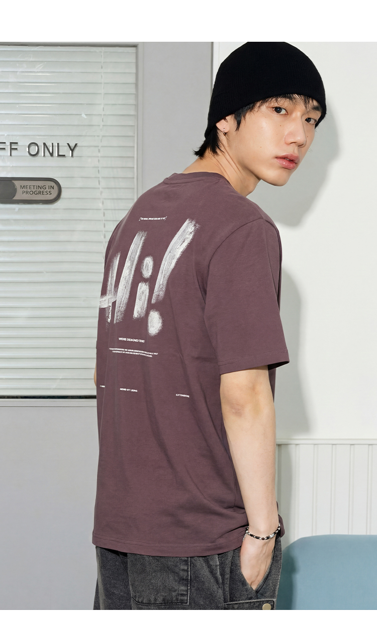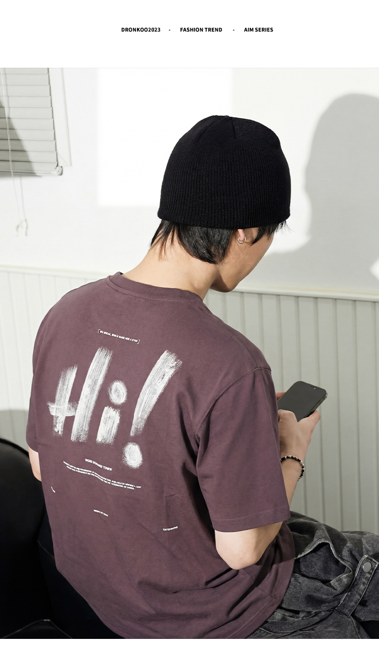 DRONKOO 2026 圆领左胸后幅Hi叹号印花修身短袖T恤