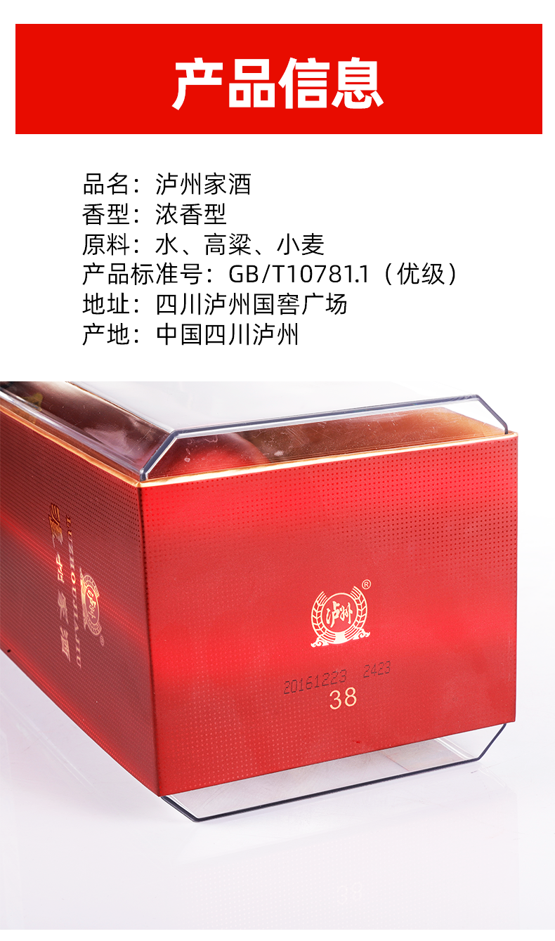 [泸州家酒A9]38度-2016年产浓香型白酒整箱6瓶年份酒