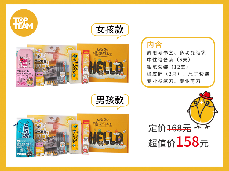 Topteam千千圈魔法文具礼盒 书皮/套尺/卷笔刀/剪刀/铅笔/橡皮/中性笔套装/笔袋 开学季