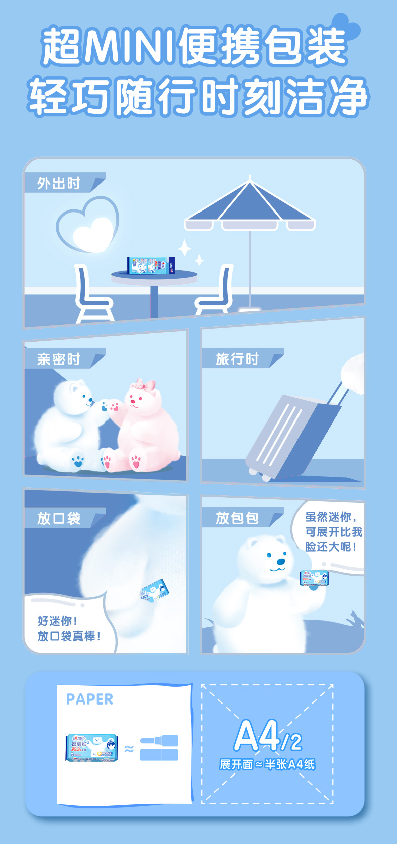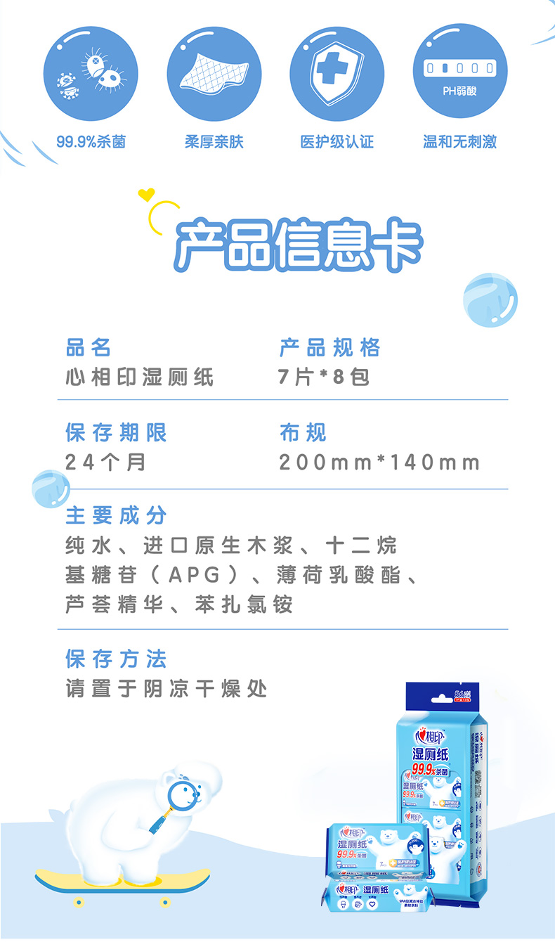 【秒杀】心相印超迷你湿厕纸7片*8包*3提 3XCY007+P1
