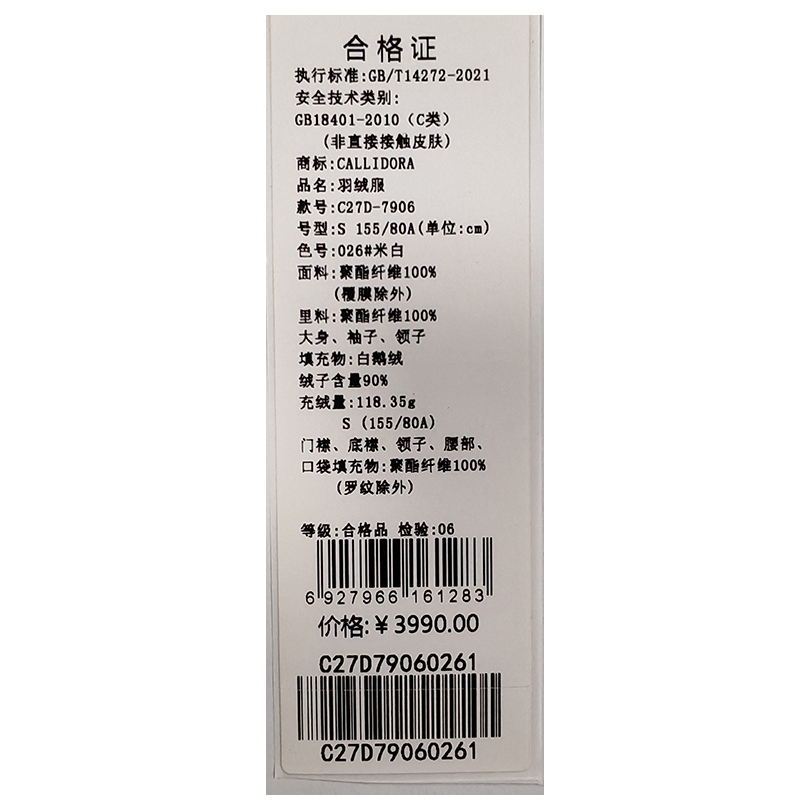 卡莉朵拉羽绒服C27D7906