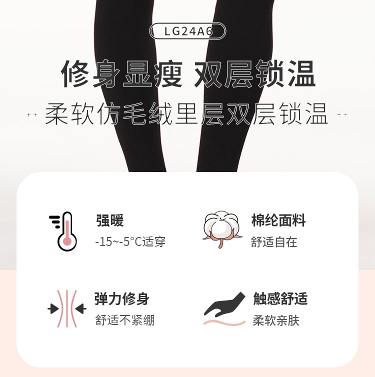都市丽人基础系列强暖负15至负5度厚踩脚裤锦纶厚一体裤打底裤LG24A6